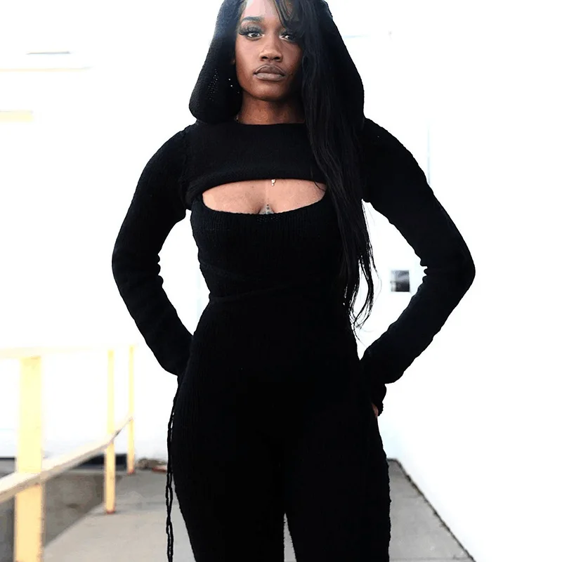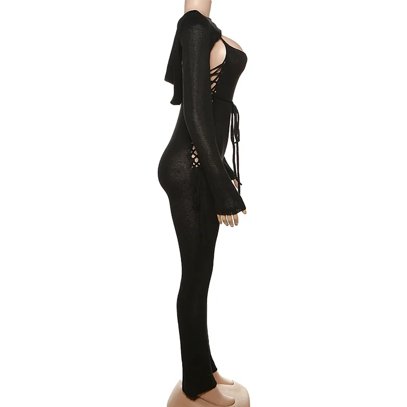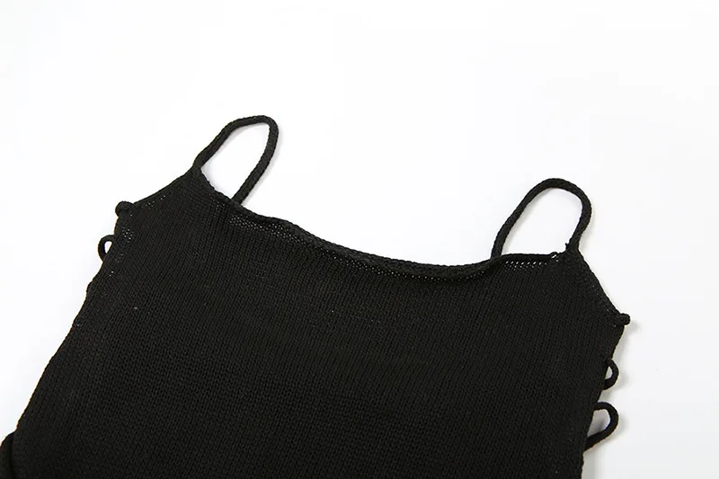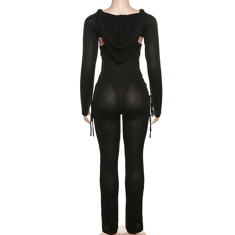 OUDINA New Fashionable Knitted Suit Blouse Suspender Low Collar Bodysuit Hollow Set For Women