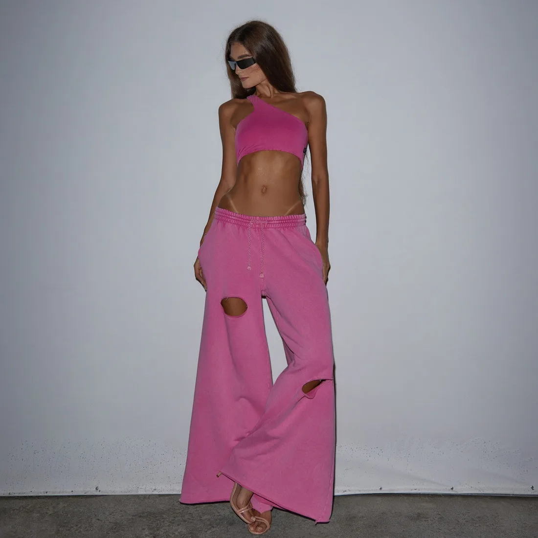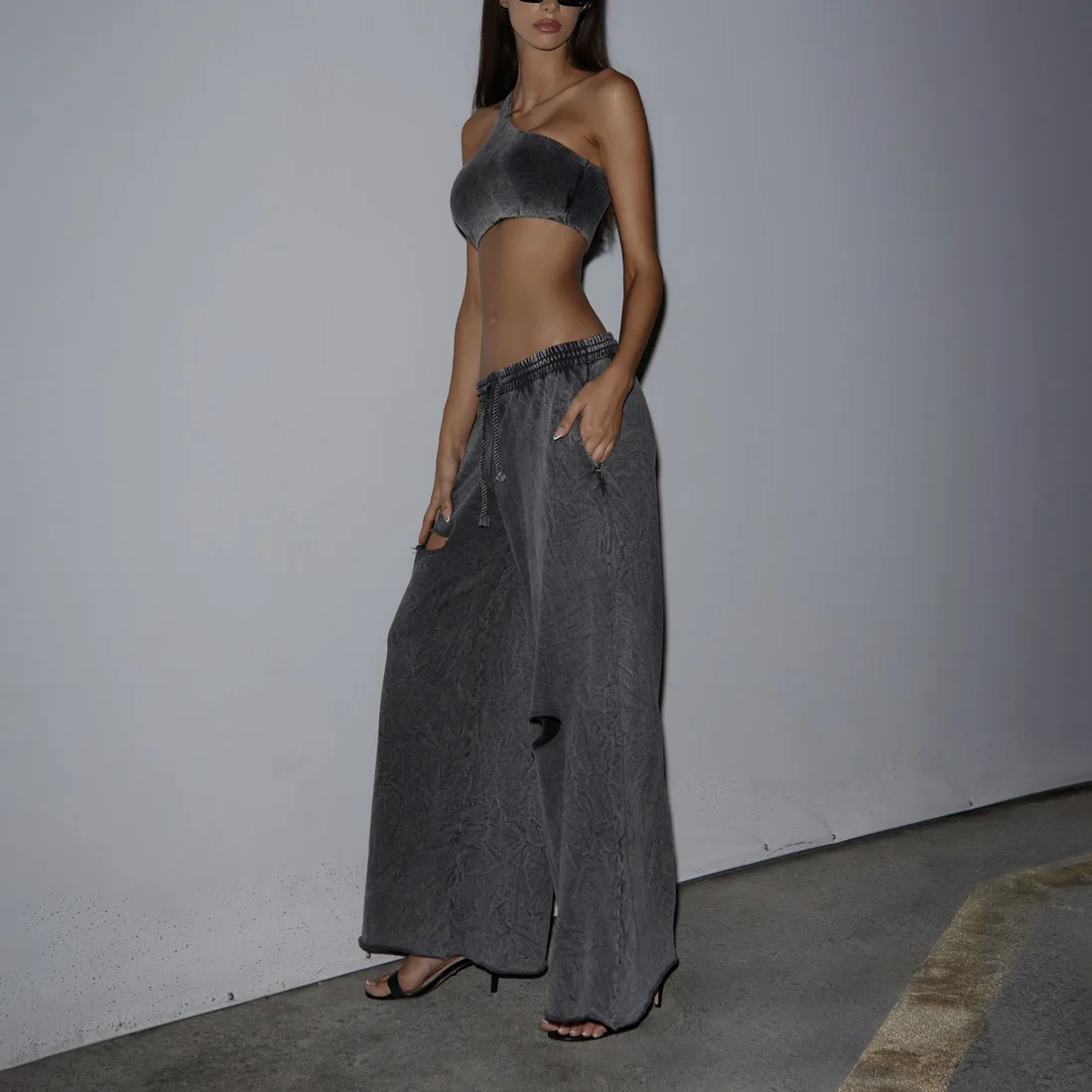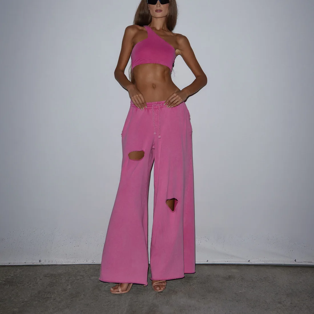 OUDINA New High-waisted Ladies Sweatpants Drawstring Wide Leg Loose Lazy Ripped Design Women's Casual Pants