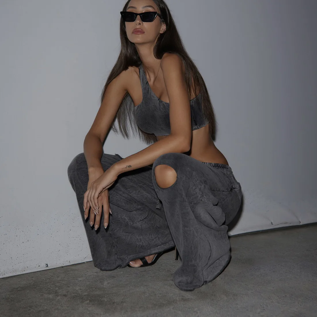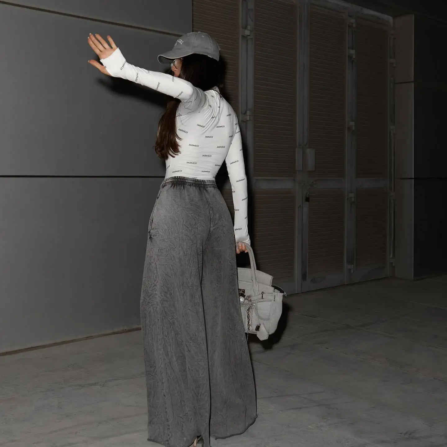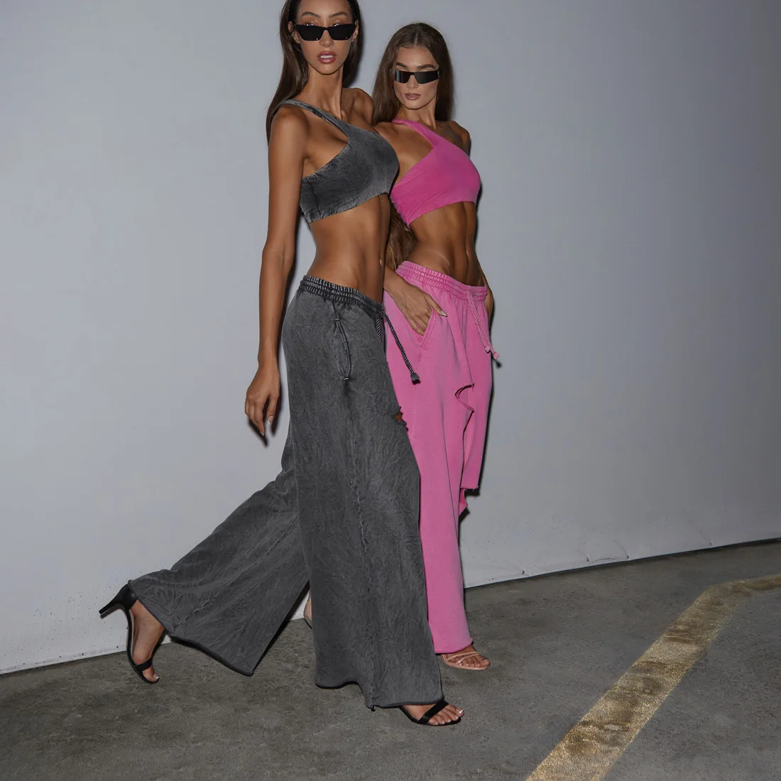 OUDINA New High-waisted Ladies Sweatpants Drawstring Wide Leg Loose Lazy Ripped Design Women's Casual Pants