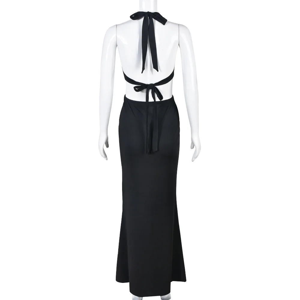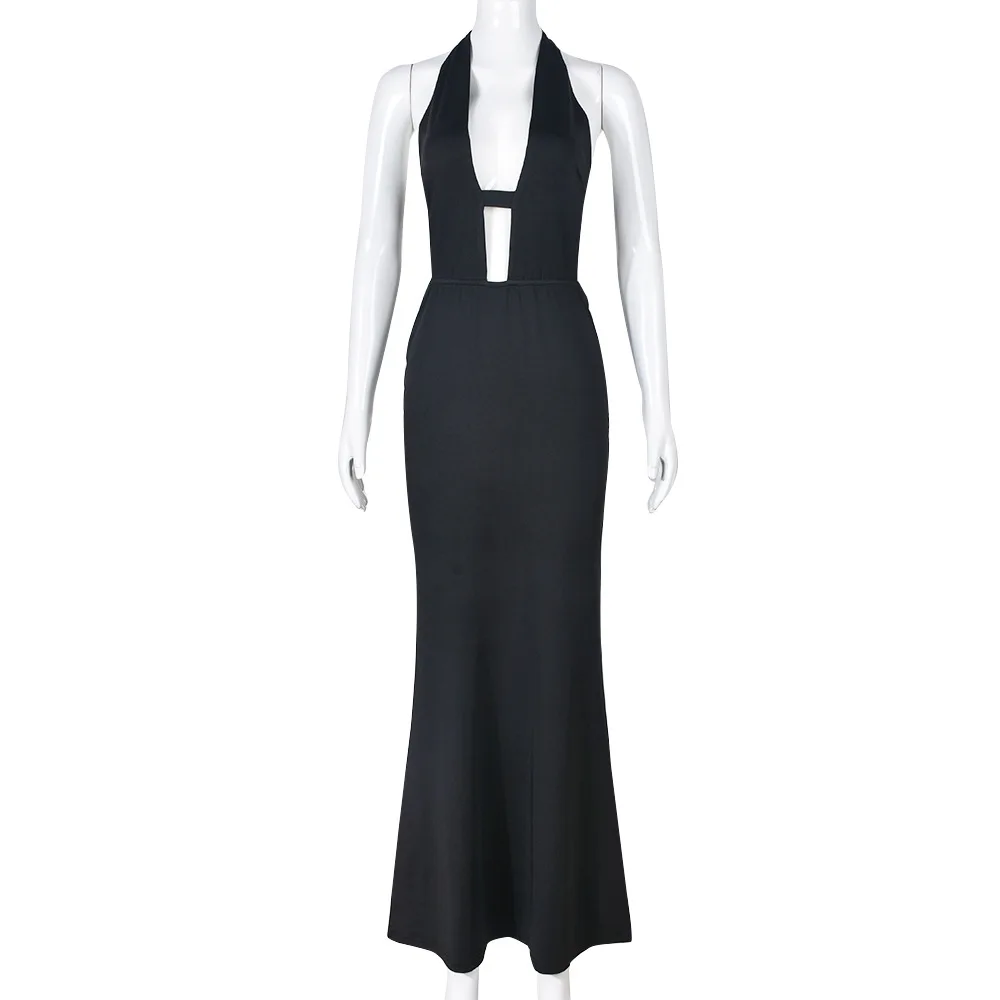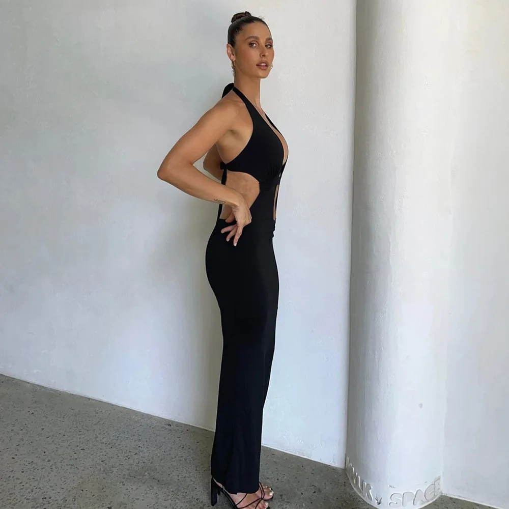 OUDINA New Product Beach Hanging Neck Halter Back Hollow Commuter Dress Summer Dresses Women Bodycon