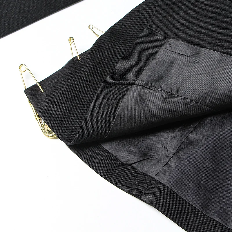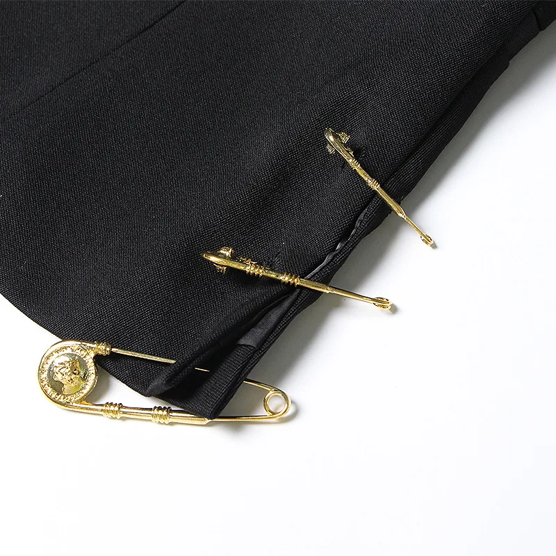 OUDINA New Style Black Blazers Damas Mujeres 2024 Shoulder Mesh Patchwork Pin Decoration Blazer For Woman