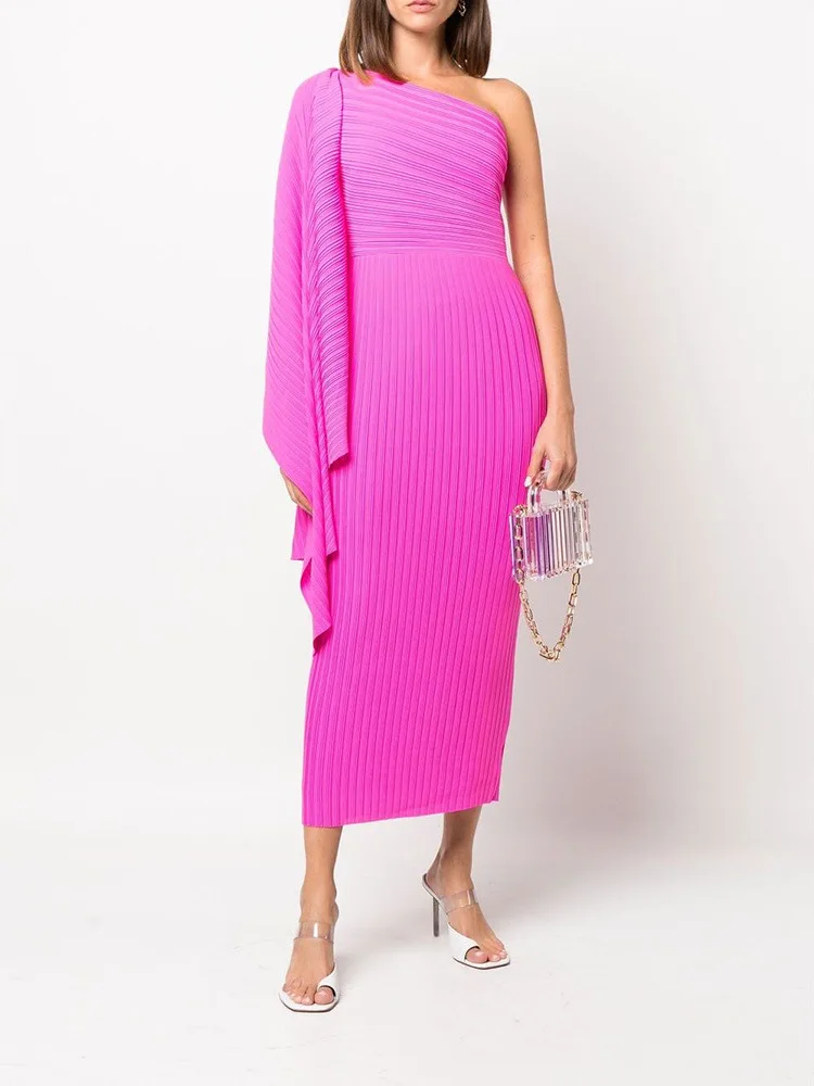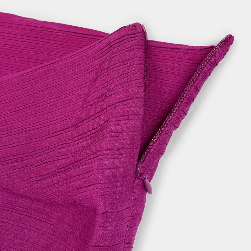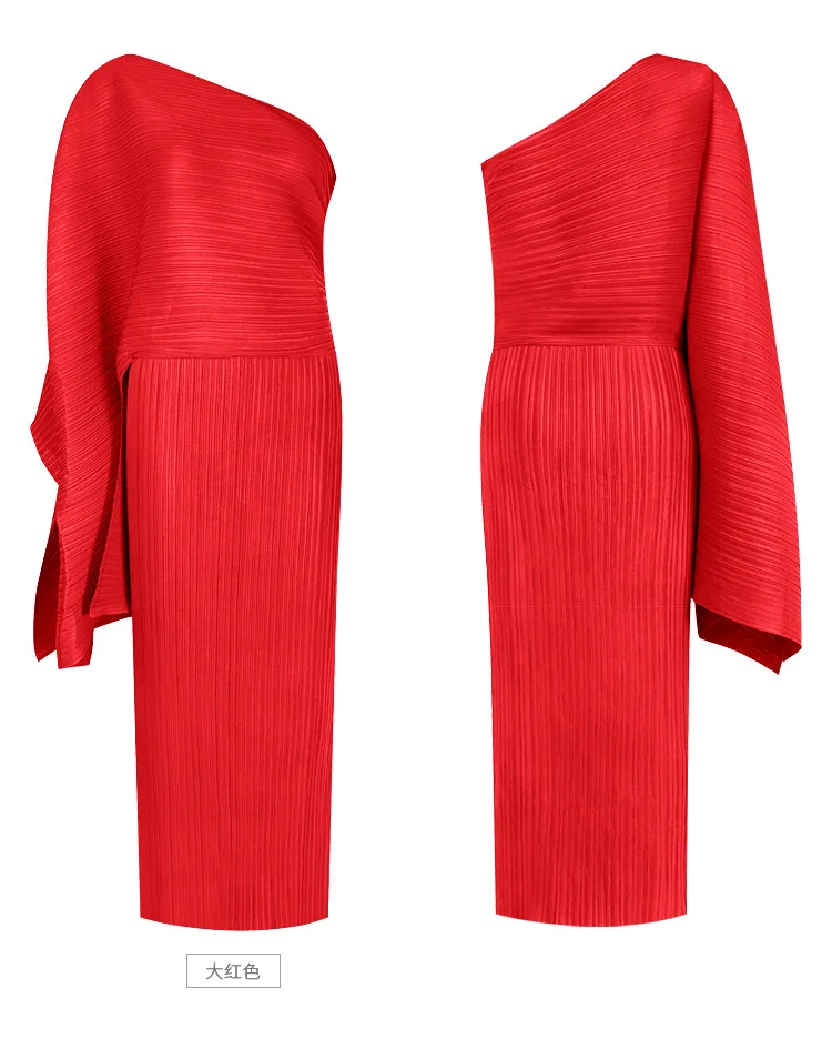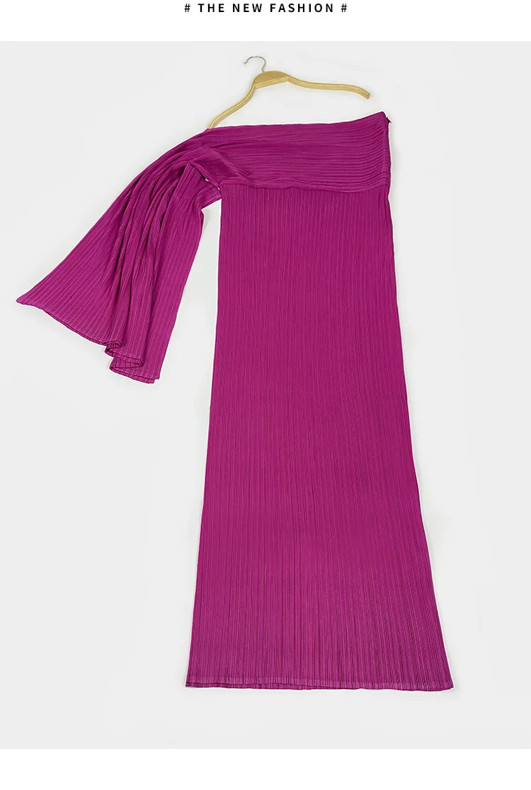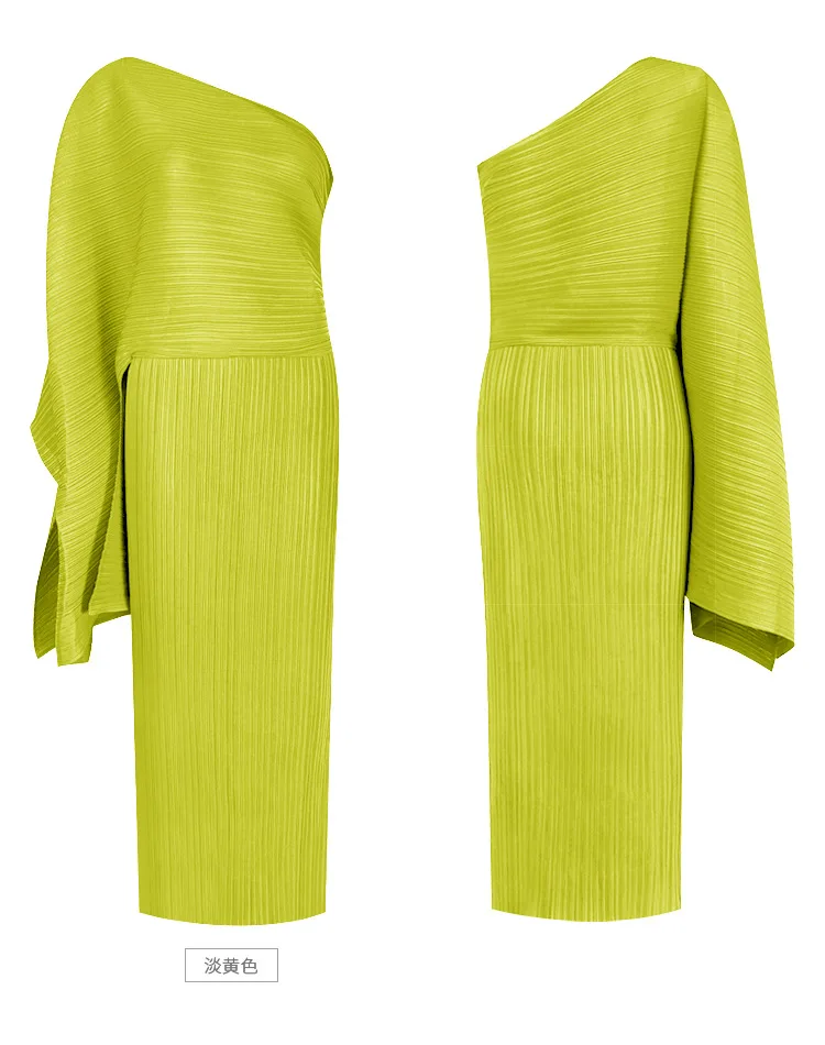OUDINA New Summer Women's Temperament Irregular Beveled High Waist Long Chiffon Pleats Casual Dresses Woman