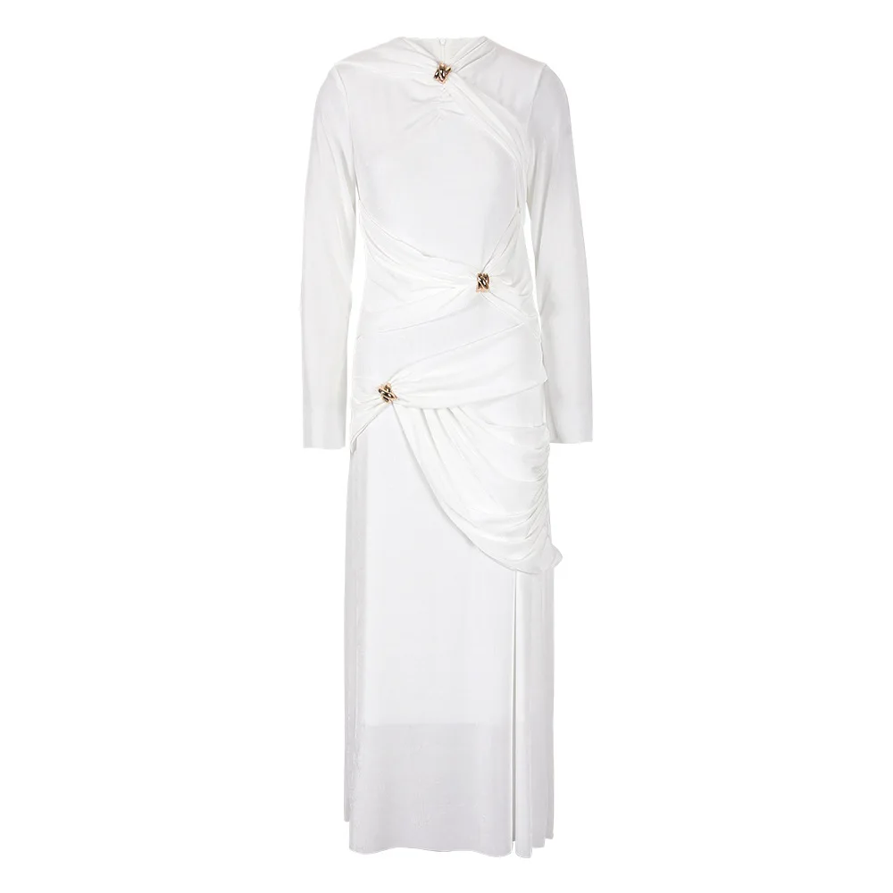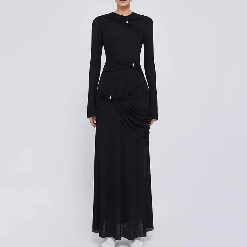 OUDINA Niche Design Asymmetrical Knitted Long Dresses For Women New Twist Elegant Alim Maxi Dress Ladies