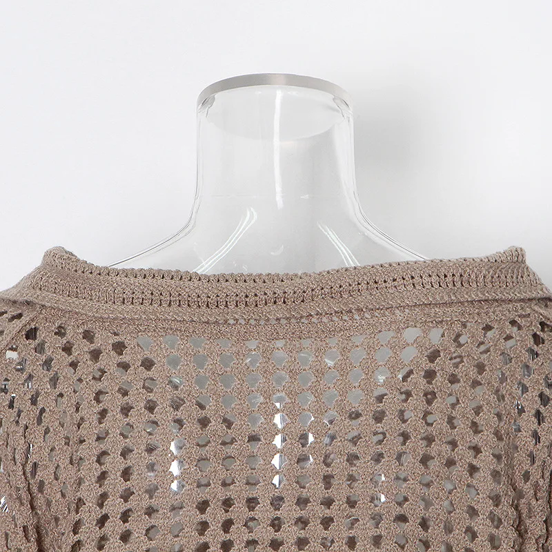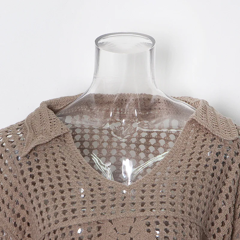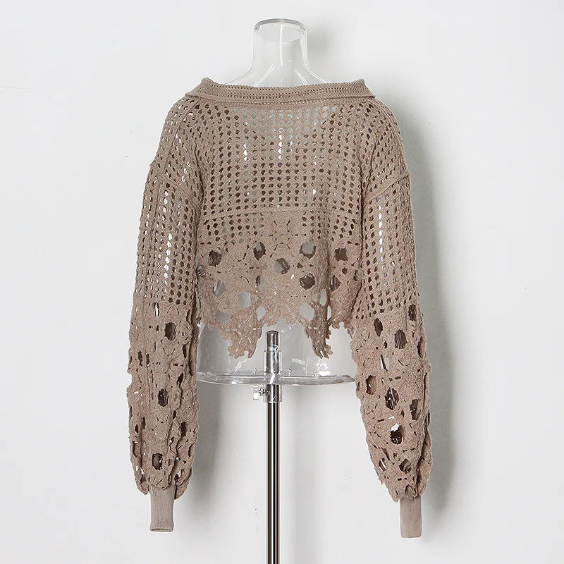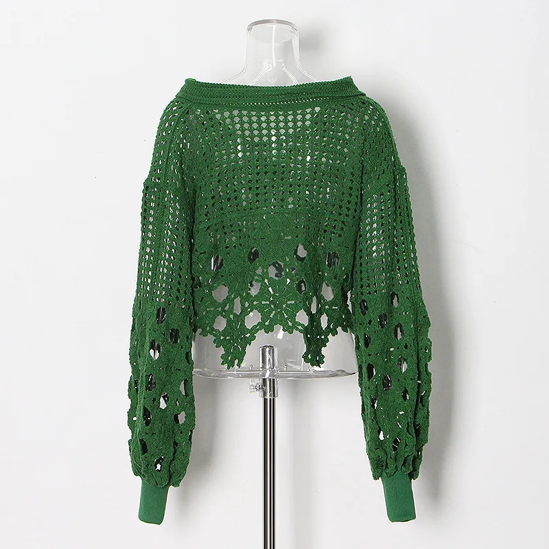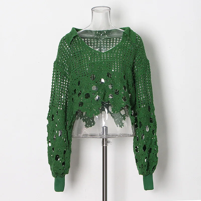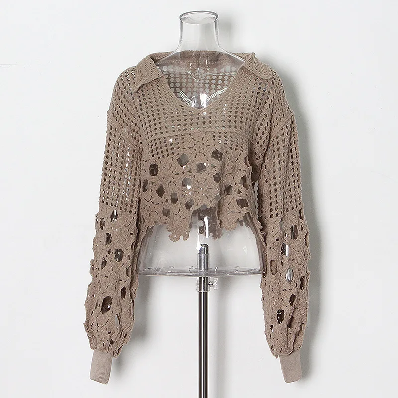 OUDINA Personalized Hollow Knitted Top 2023 New Fashion European And American Design V-neck Crop Shirt Women