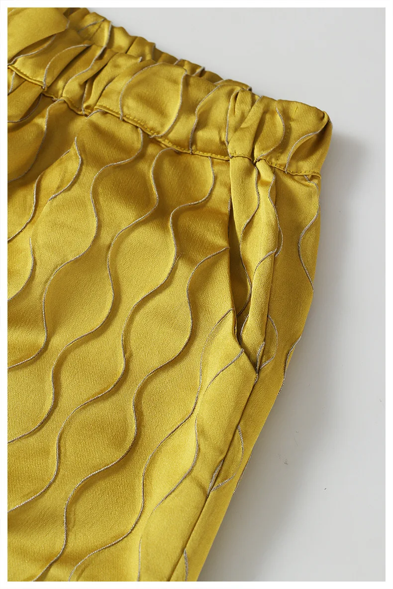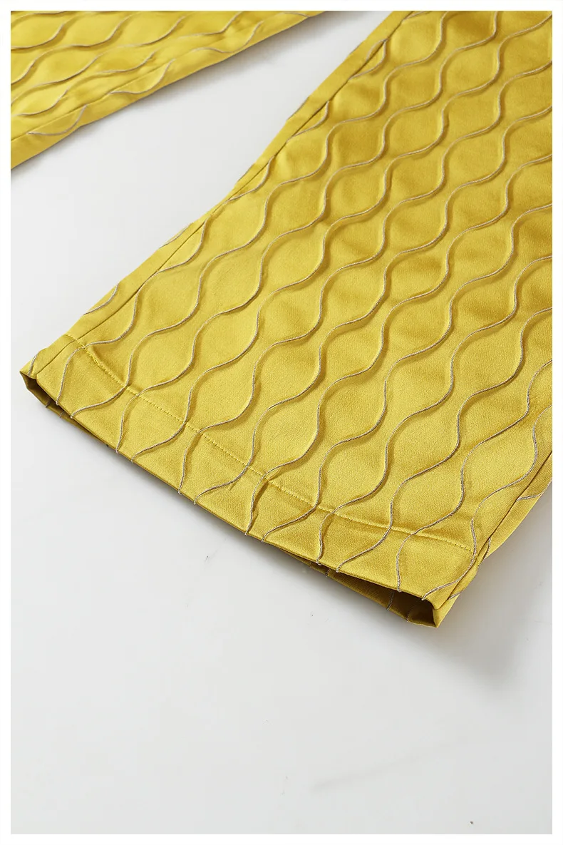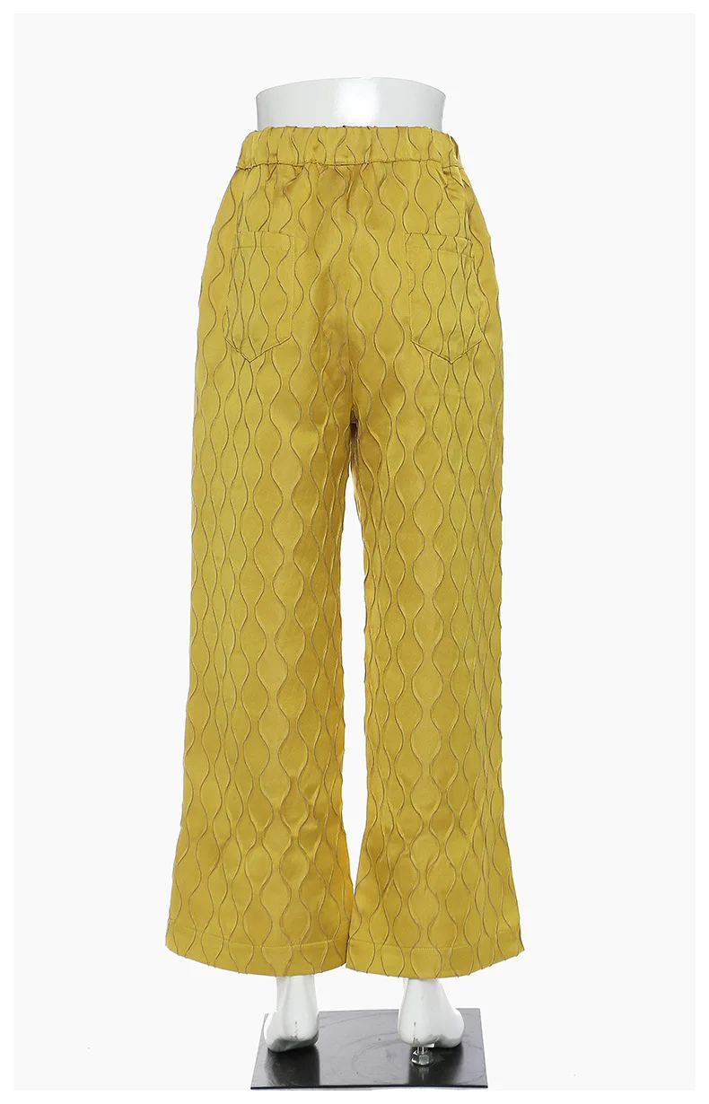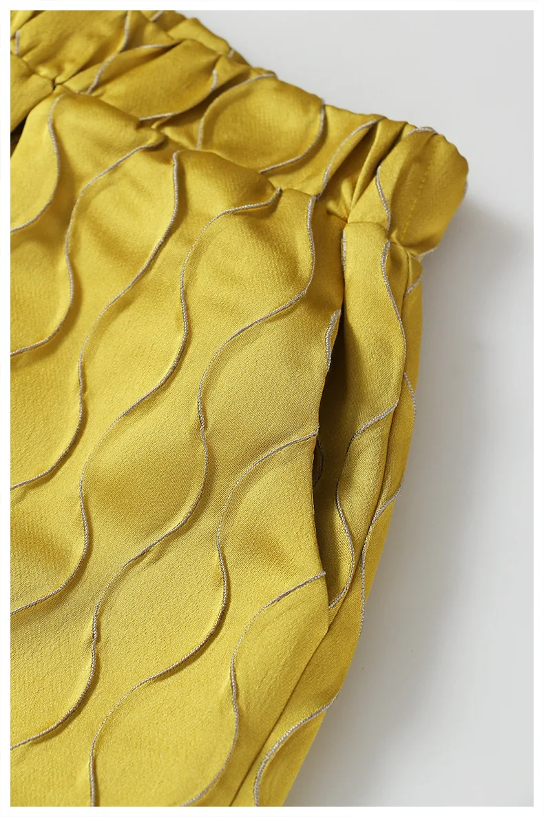 OUDINA Straight Three Dimensional Plaid Jacquard Bright Casual Women's Yellow Loose Trousers Ladies Wide Leg Pants