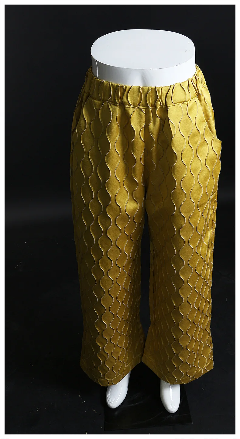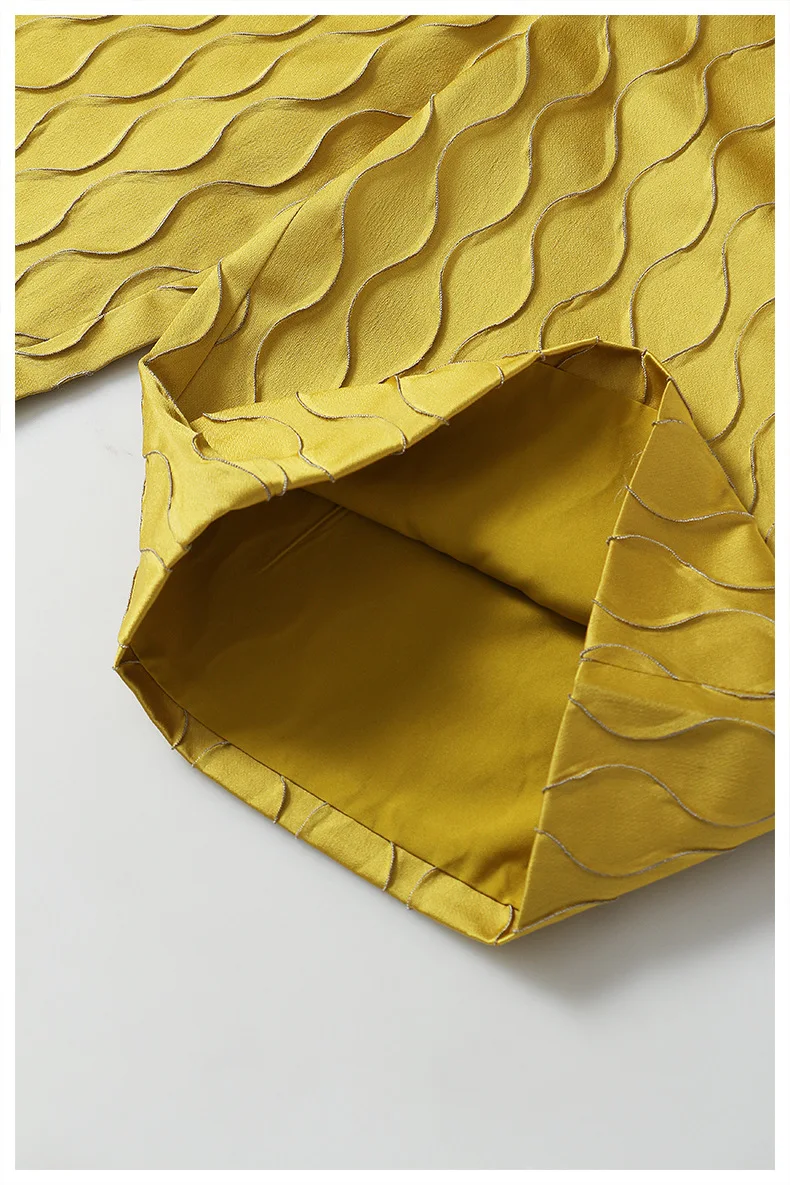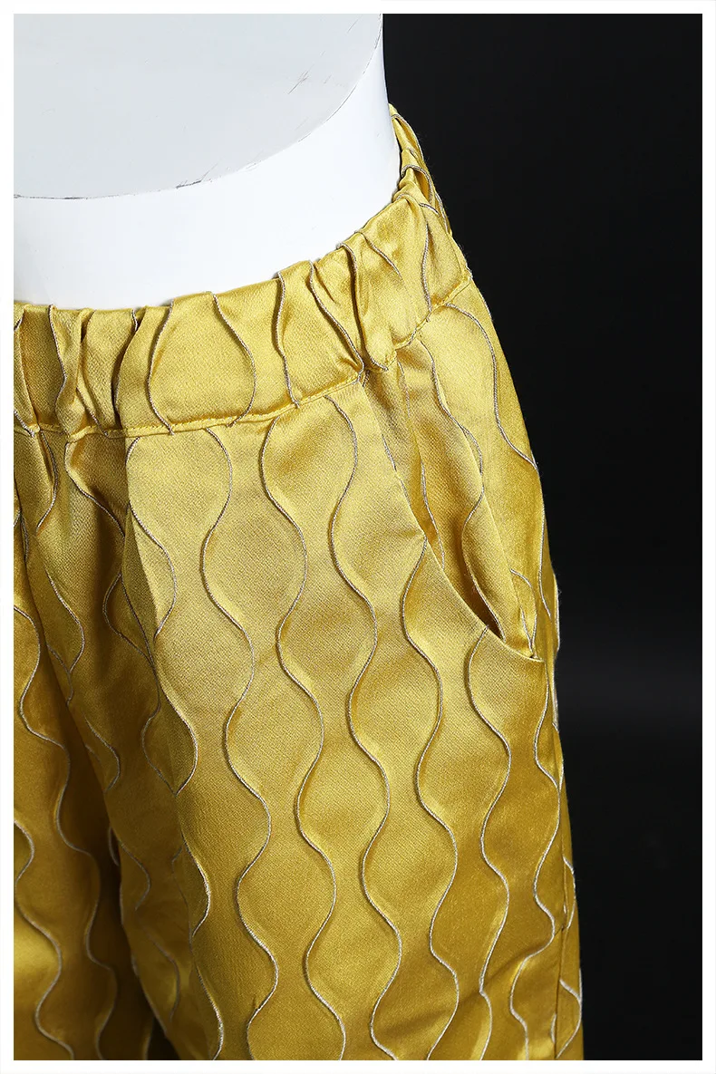 OUDINA Straight Three Dimensional Plaid Jacquard Bright Casual Women's Yellow Loose Trousers Ladies Wide Leg Pants