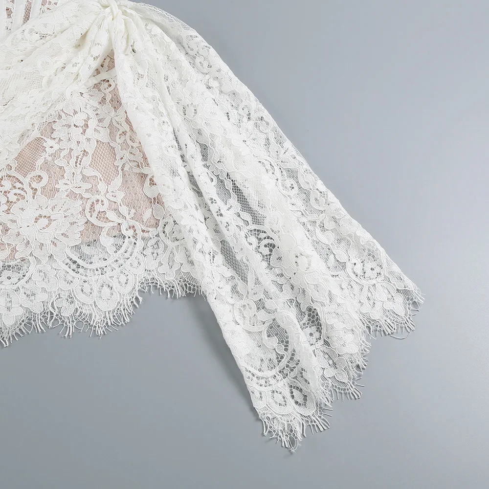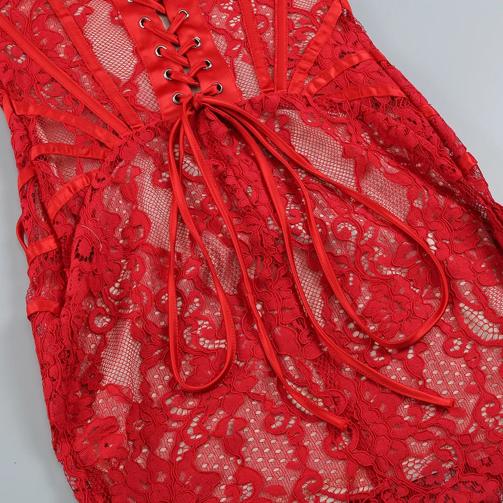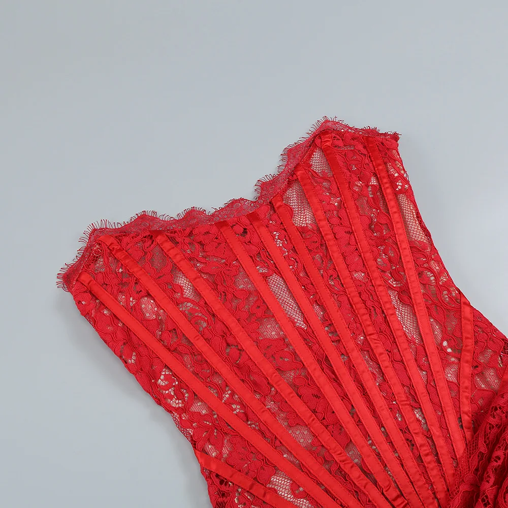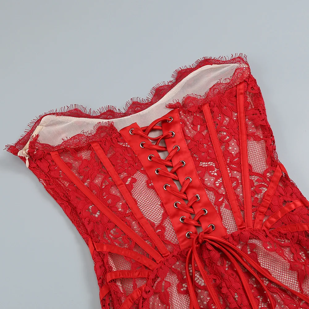 OUDINA New Sexy Women's Wholesale Irregular Tube Top Dresses Fishbone See Through Waist Chic Evening Lace Dress