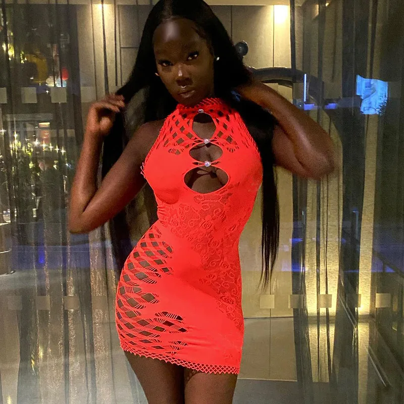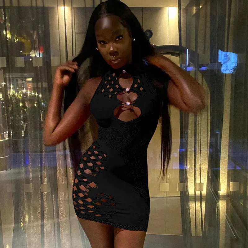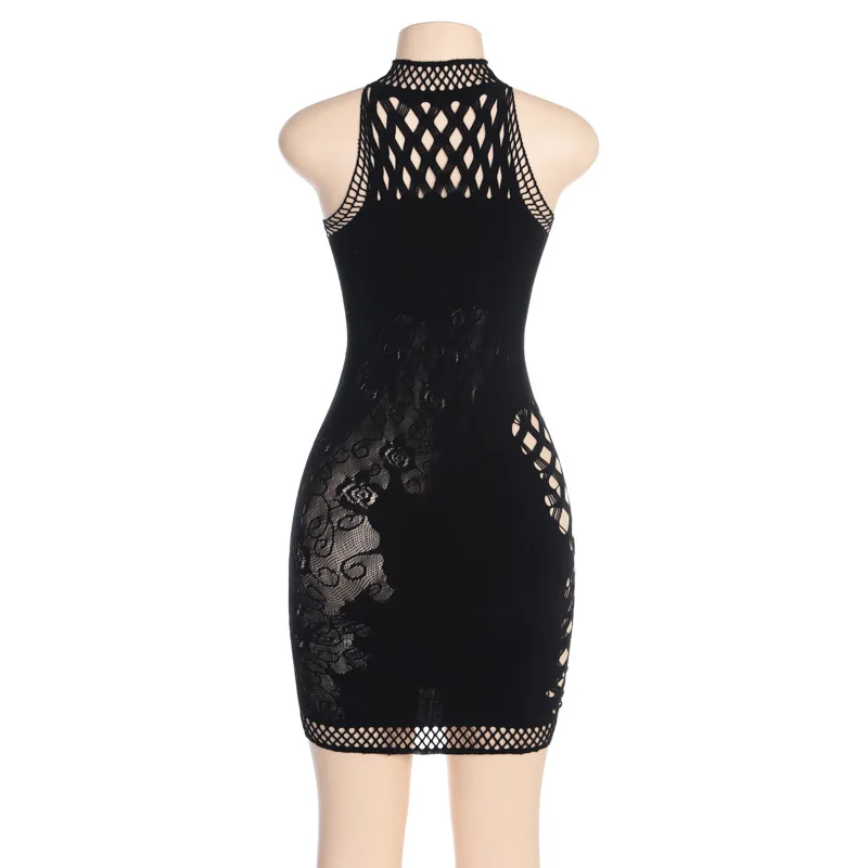 OUDINA Summer Hot Products New Hollow Sleeveless Mesh Dress See Through Sexy Transparent Bodycon Women's Clothing Dress