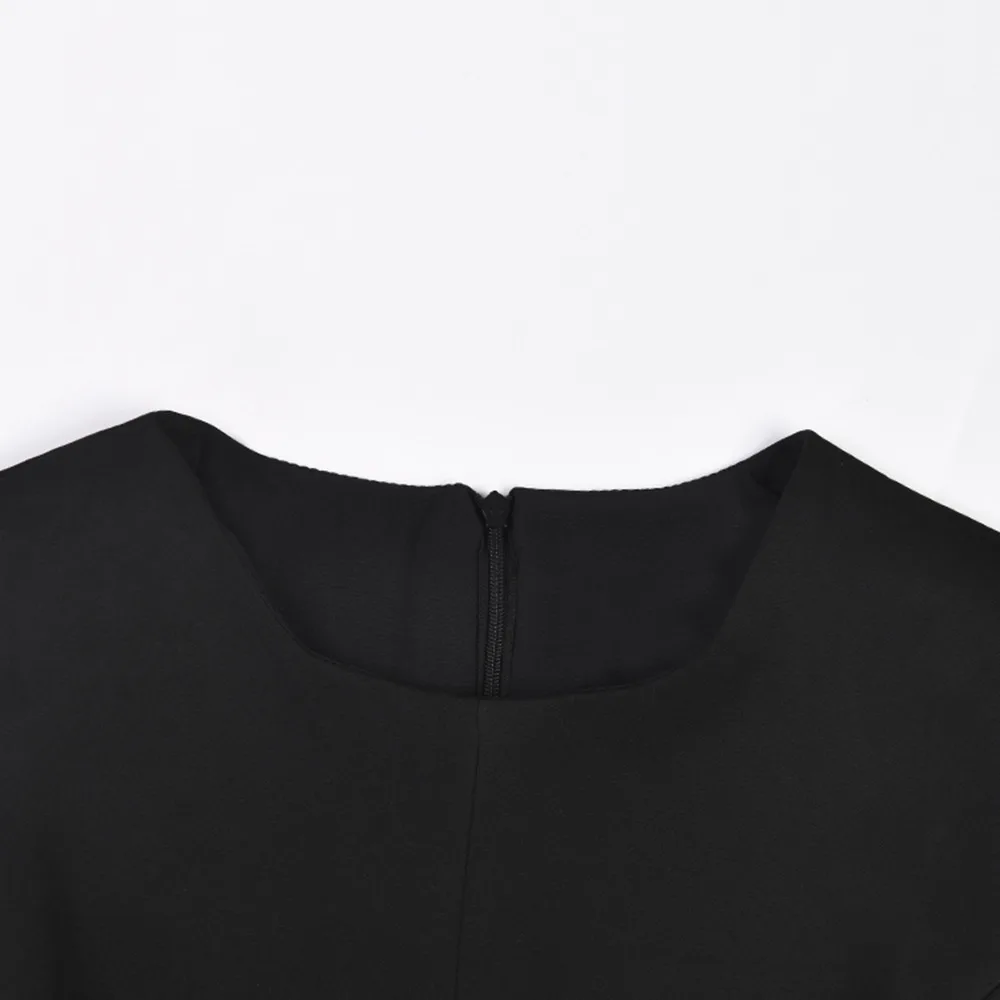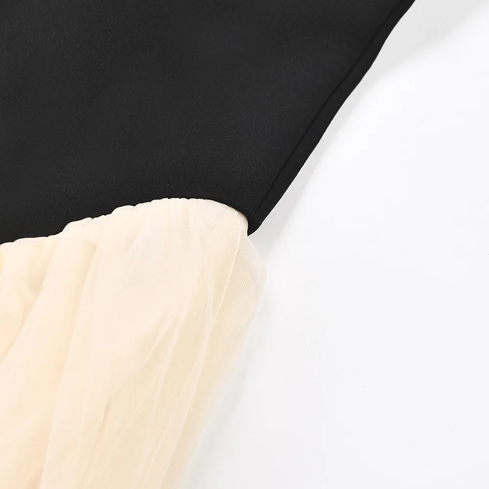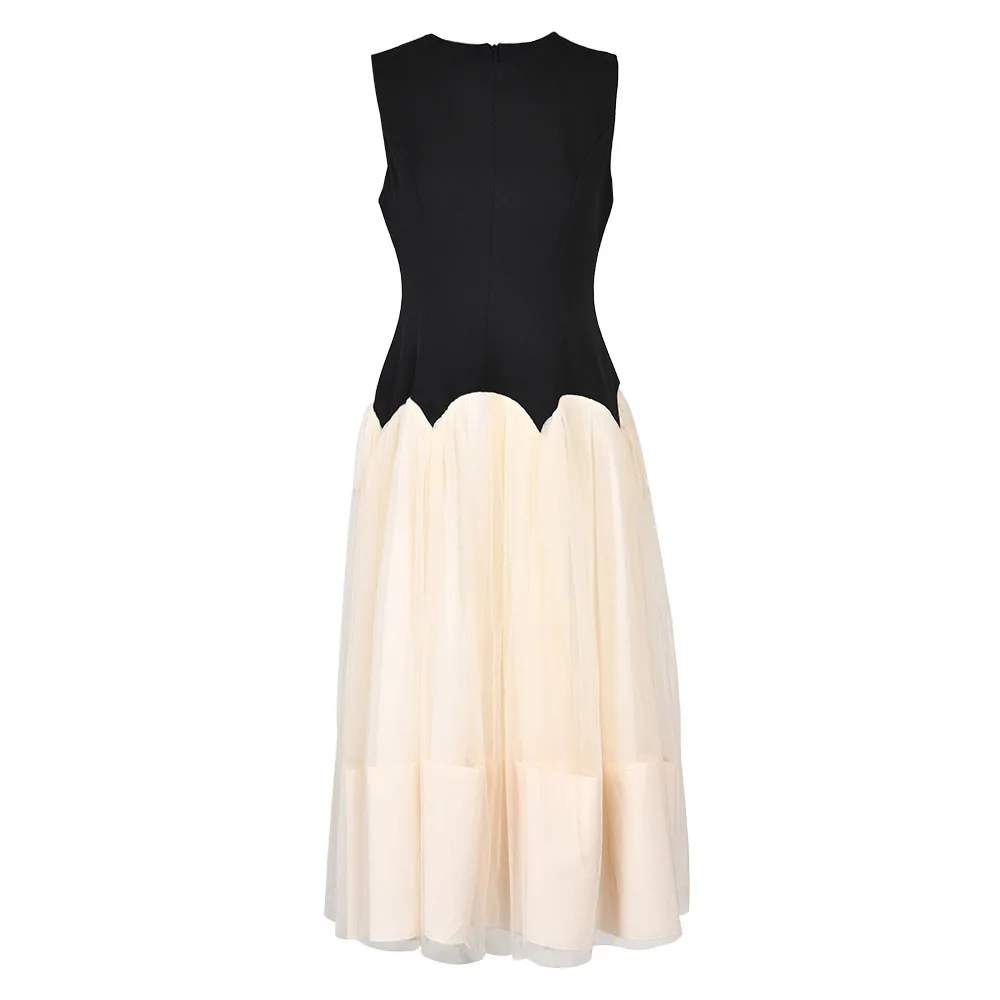 OUDINA Wholesale French Sleeveless Color Contrast Mesh Tutu Pleated Women Lady Dress Elegant Ladies Casual Dresses