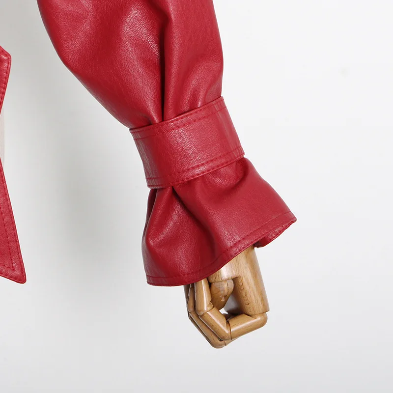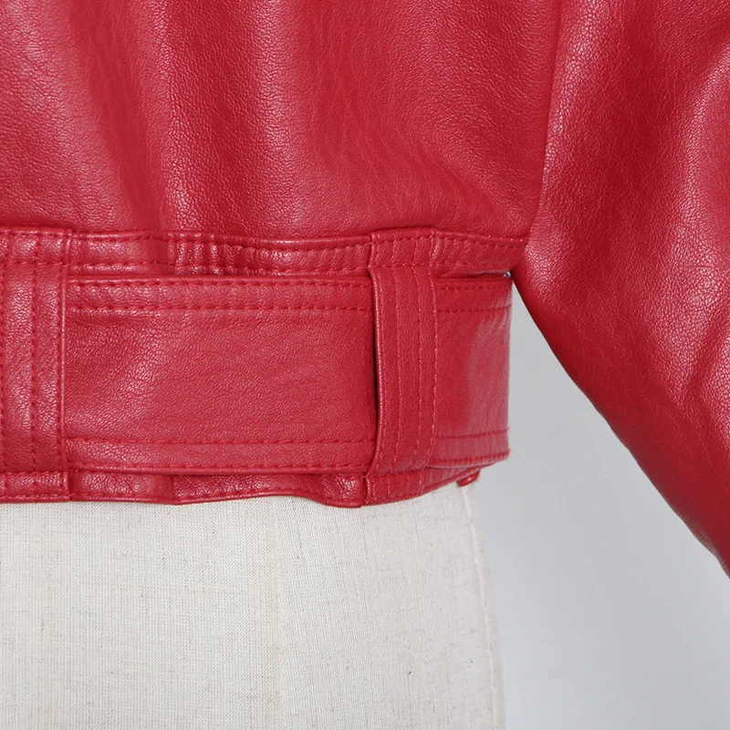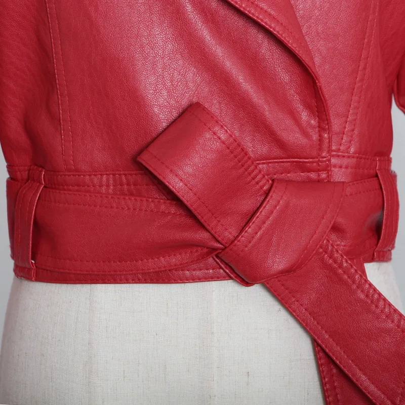 OUDINA Wholesale New Fashionable Motorcycle Large Lapel Bow Tie Design Short Women's Leather Jacket