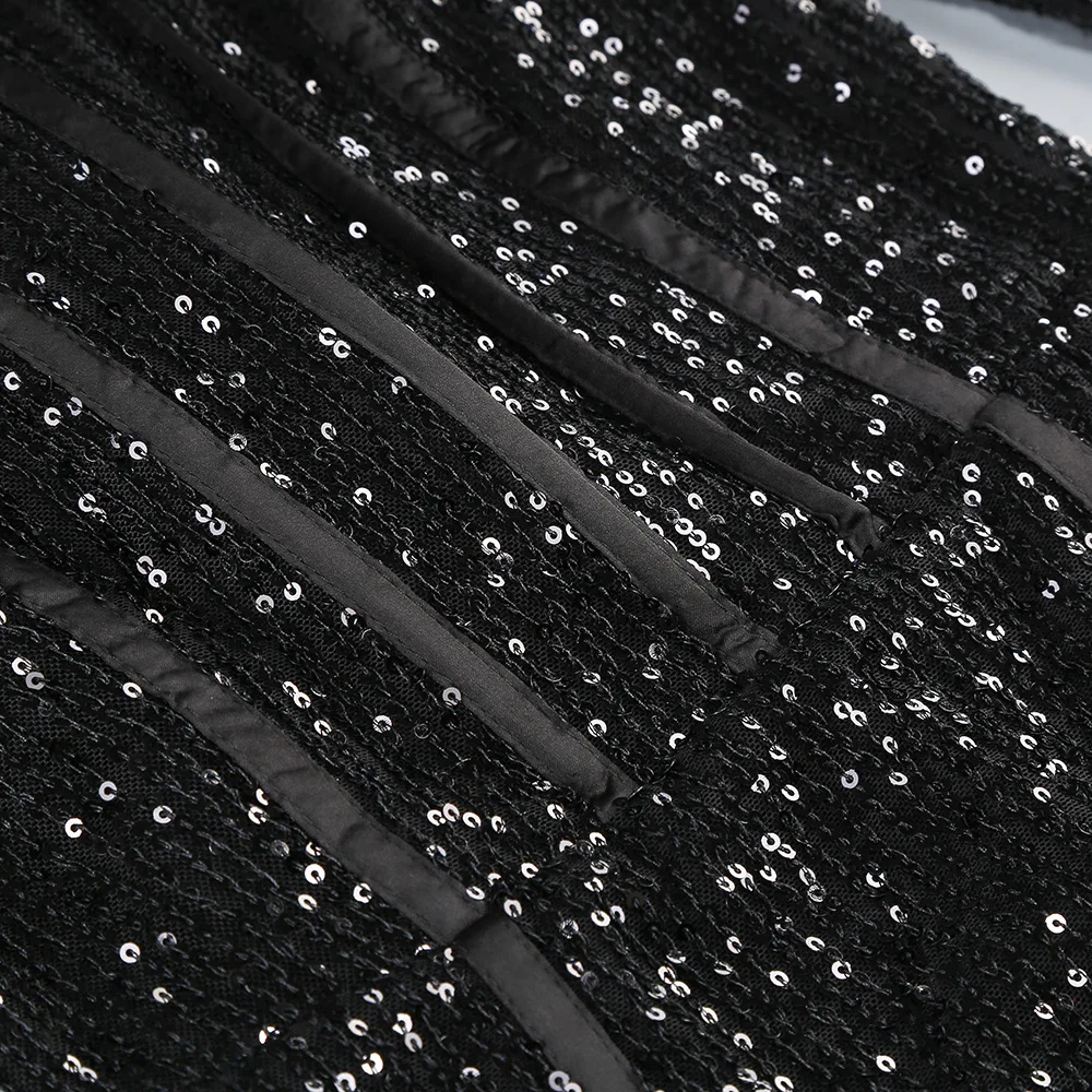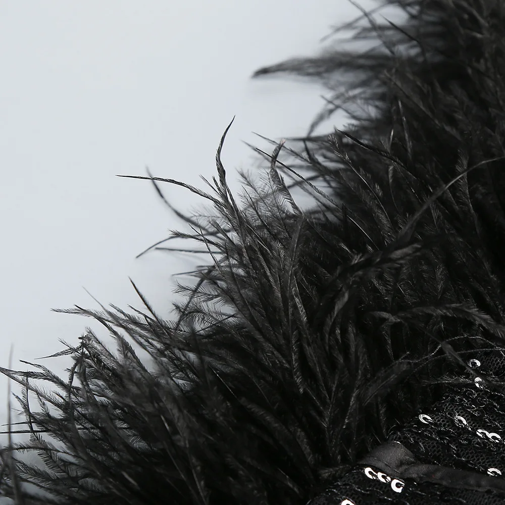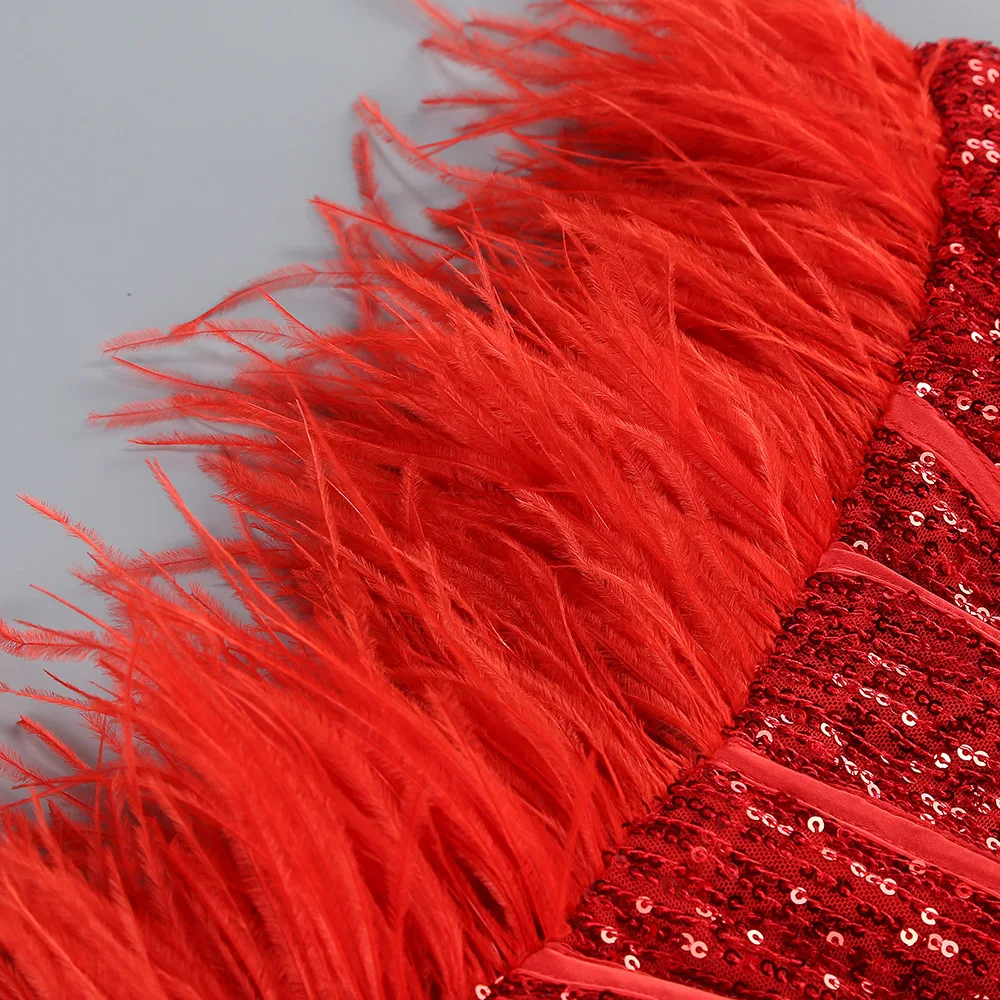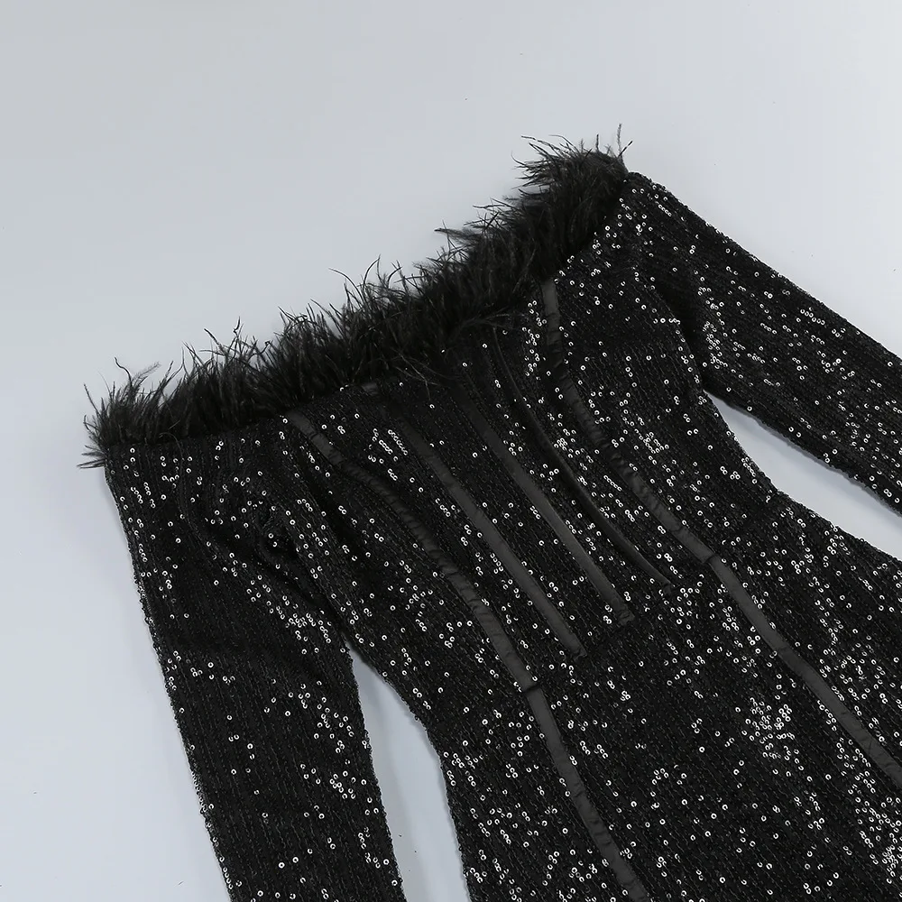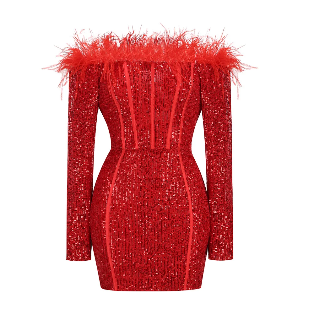 OUDINA Wholesale New Style Feather Sequins Sexy Shinny Long Sleeve Party Dress Evening Elegant Dress For Women