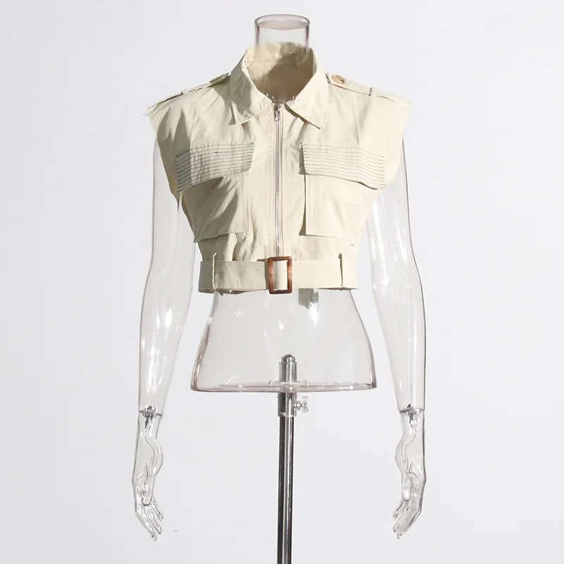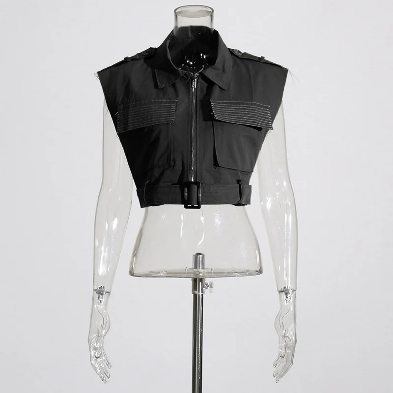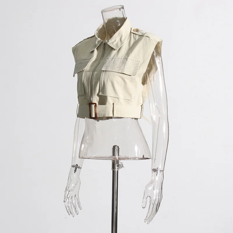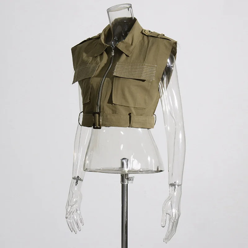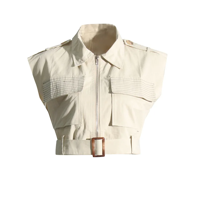 OUDINA Wholesale New Vintage Casual Short Multi-pocket Sleeveless Vest Cargo Top Women's Crop Tops For Women
