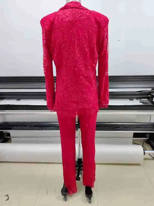 OUDINA Wholesale One Button Blazer Top Bra Trousers Mesh Lace Three Piece Business Suits Suit For Women