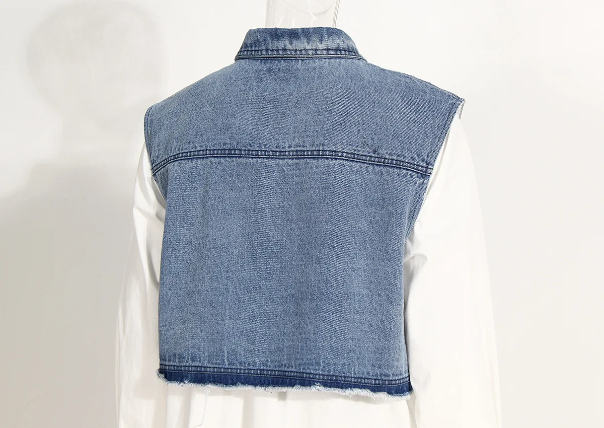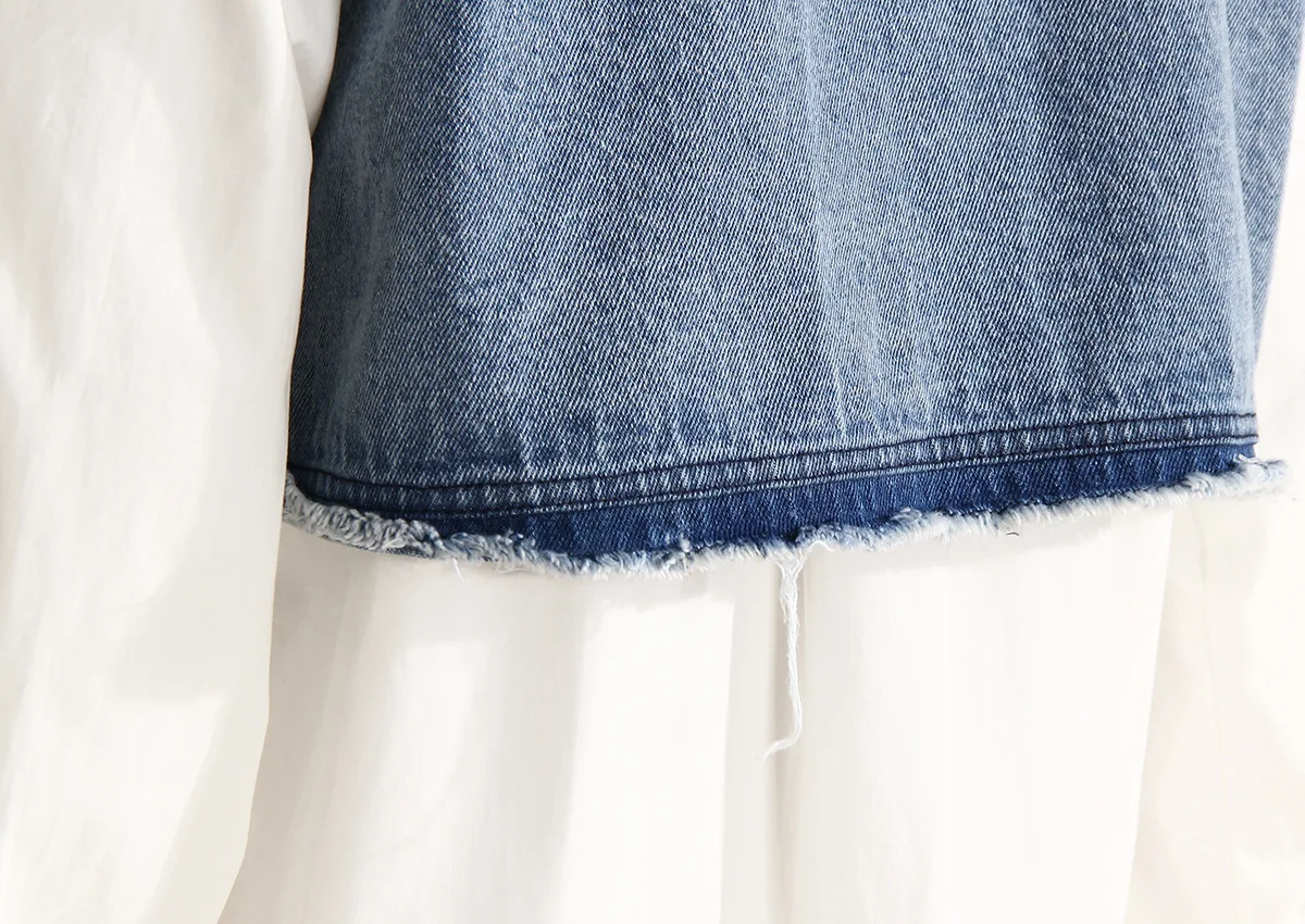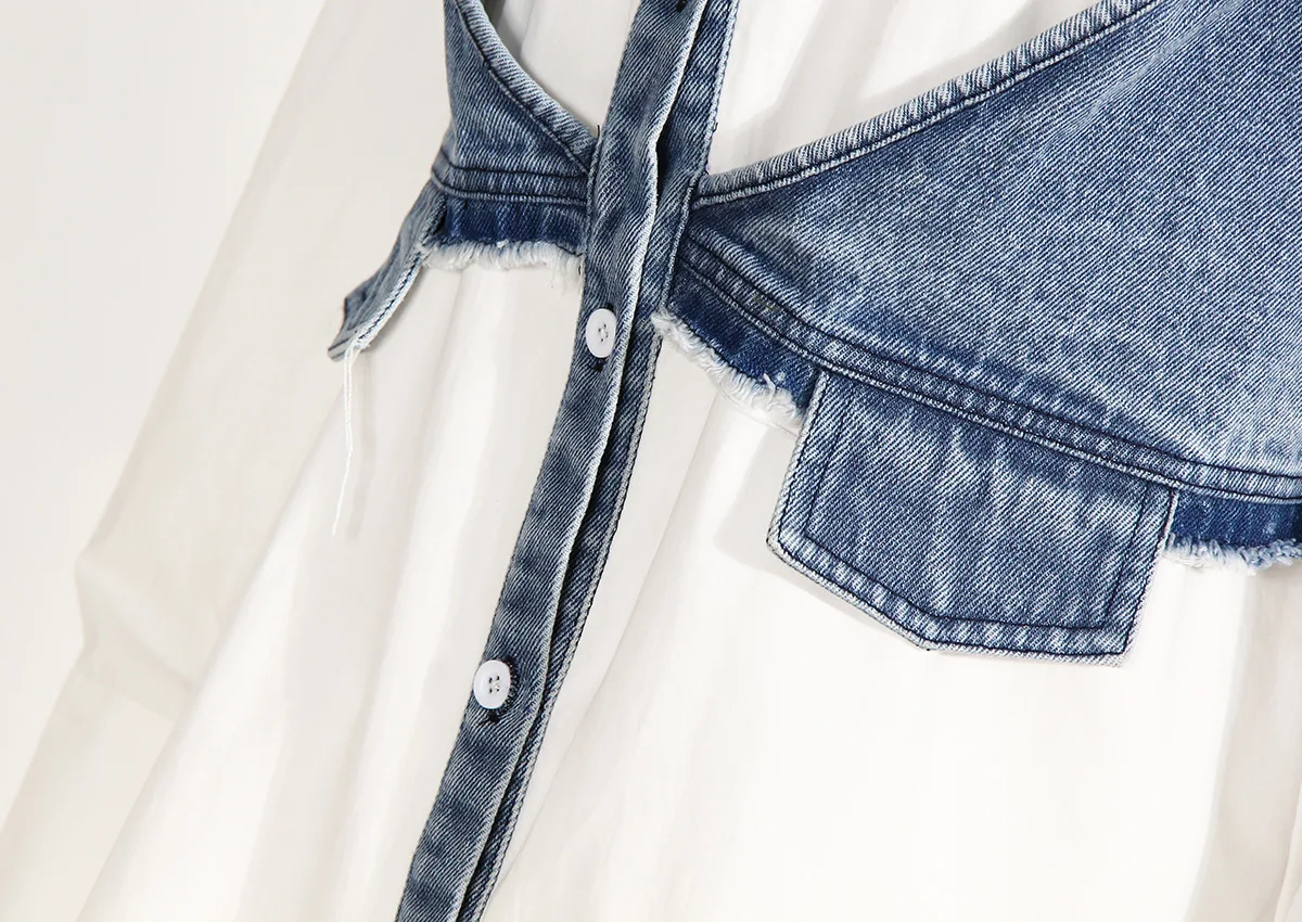 OUDINA Wholesale RTS Casual Patchwork Denim Top Heart-shaped Cotton Hollow Ladies Shirt Tops Women's Blouses & Shirts