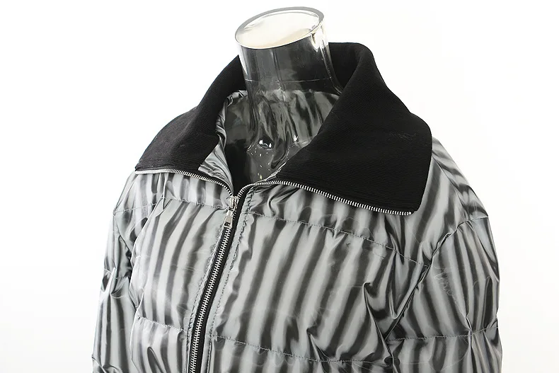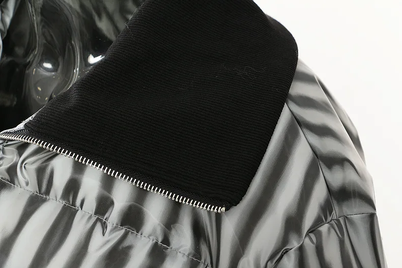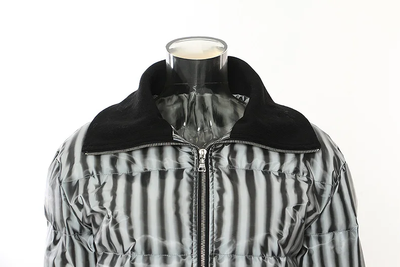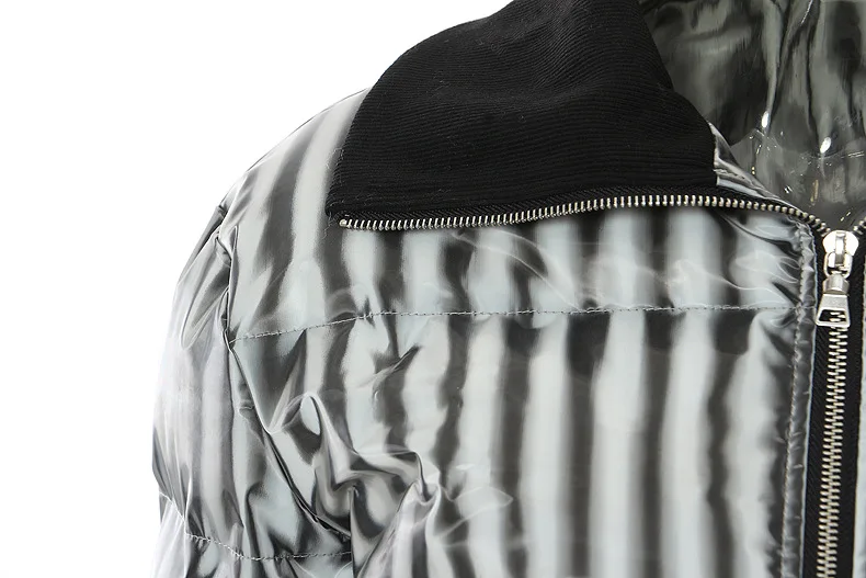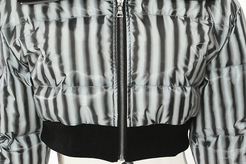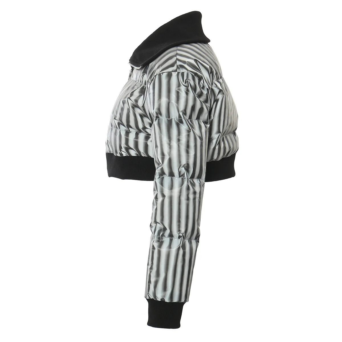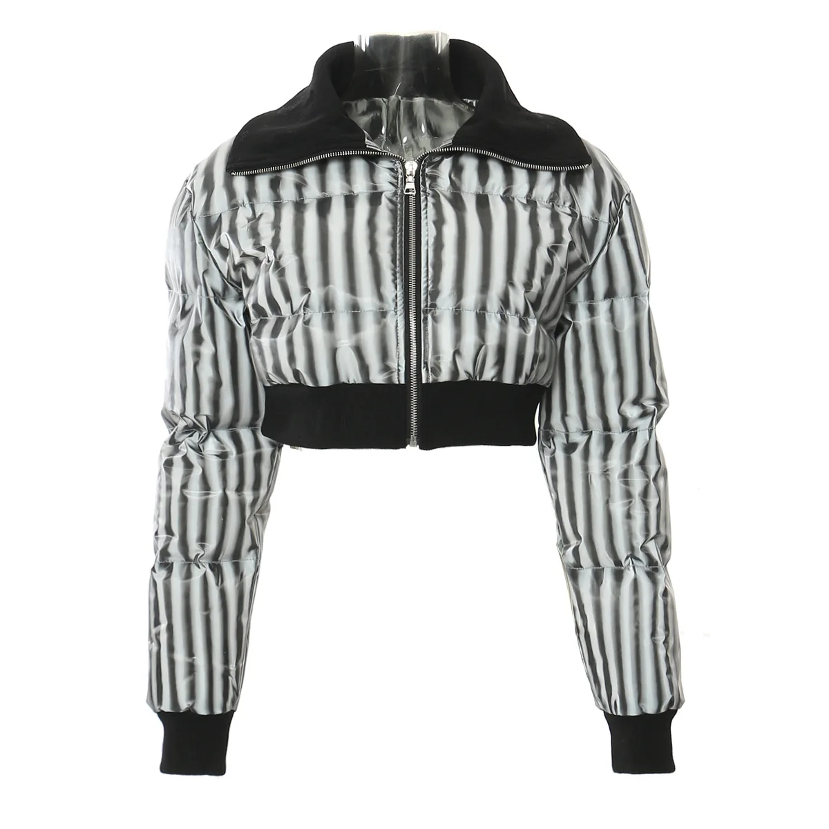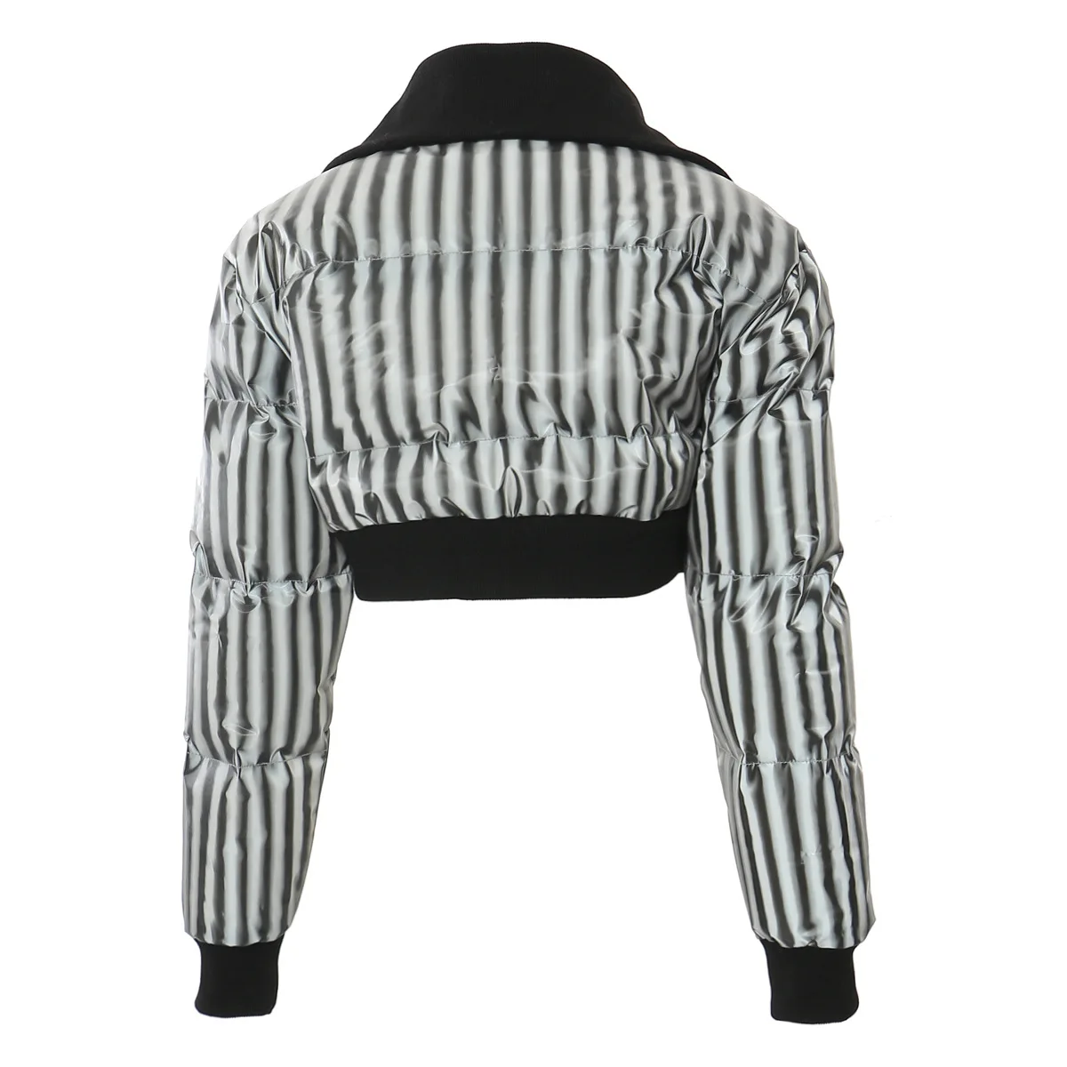 OUDINA Wholesale Women's Clothes Winter Bubble Cotton Short Cropped Coats Stripes Womens Bomber Jacket
