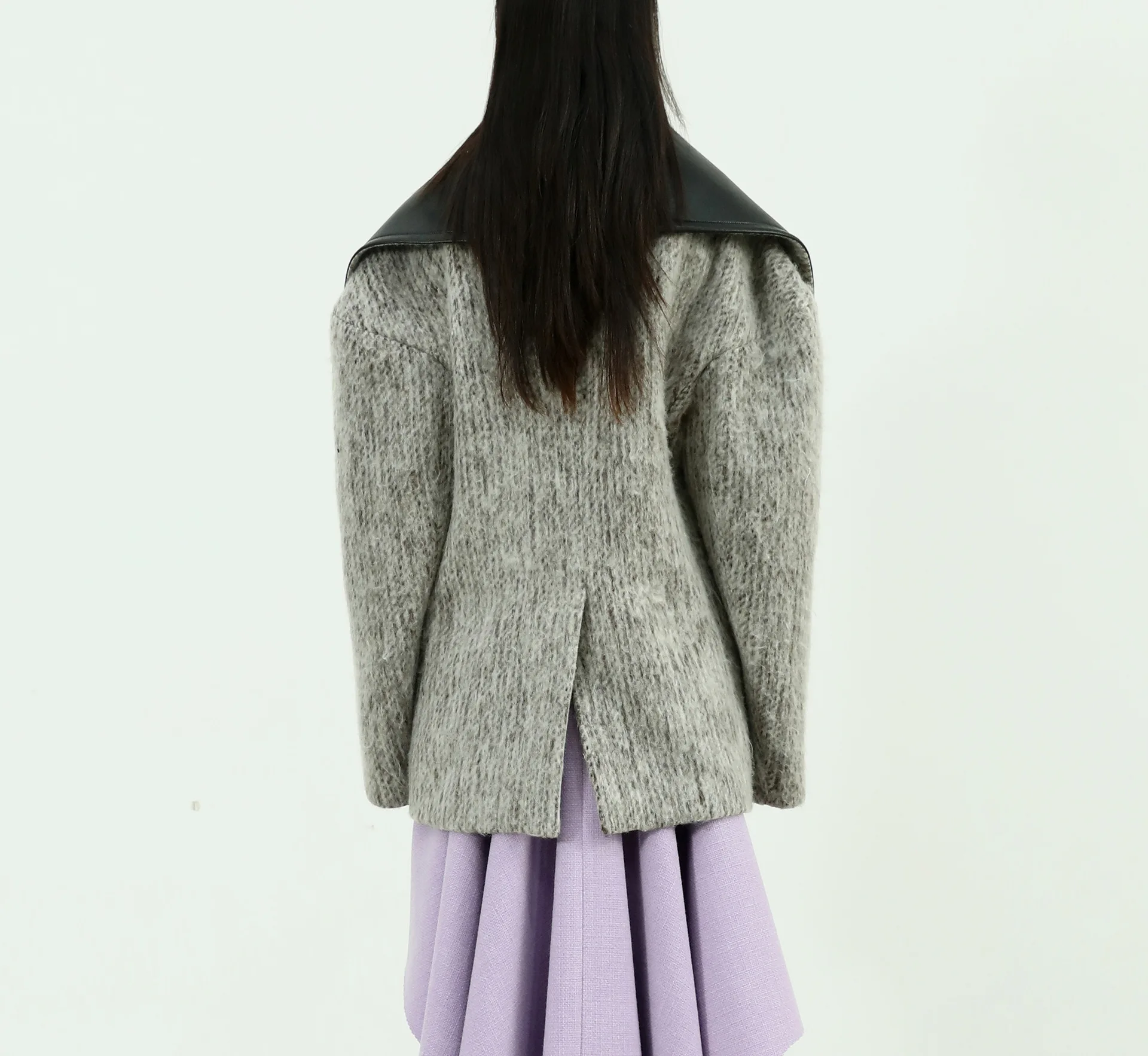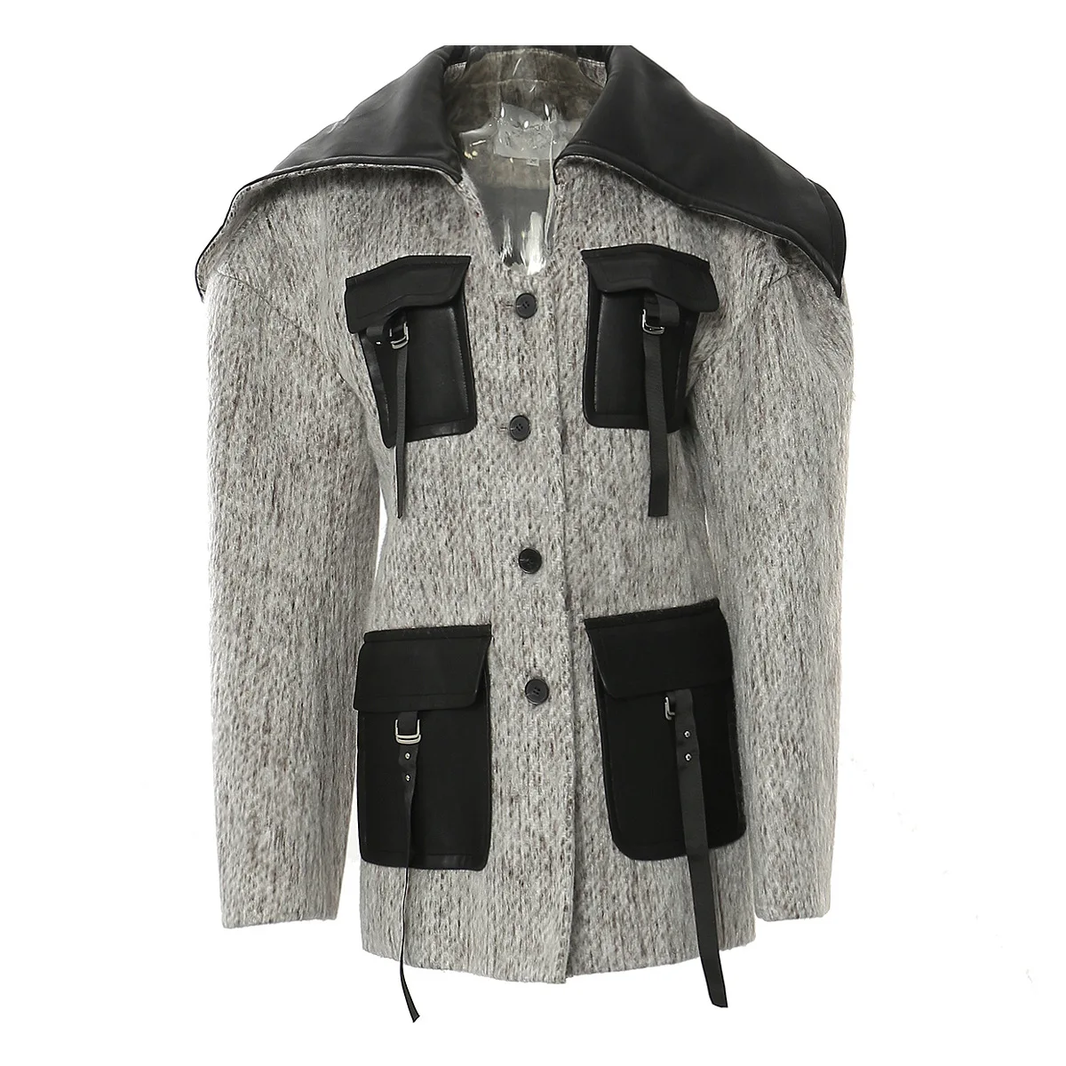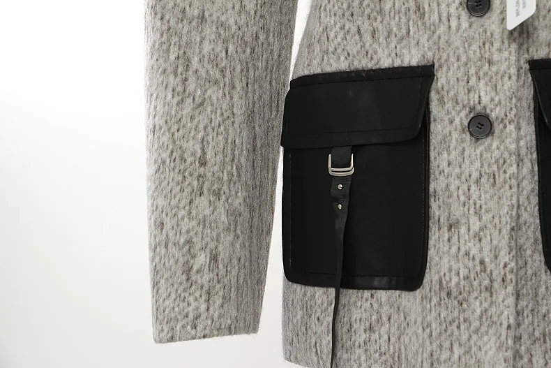 OUDINA Winter New Silhouette Drop Shoulder Contrast Color Jacket Texture Ladies Woolen Coat For Women