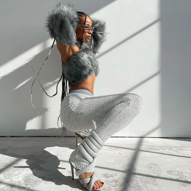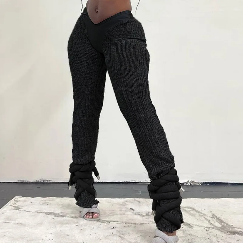 OUDINA Women's New Fashion Knitted Low-waist Street Style Tight Long Casual Pants For Women