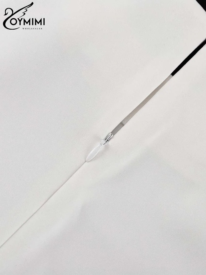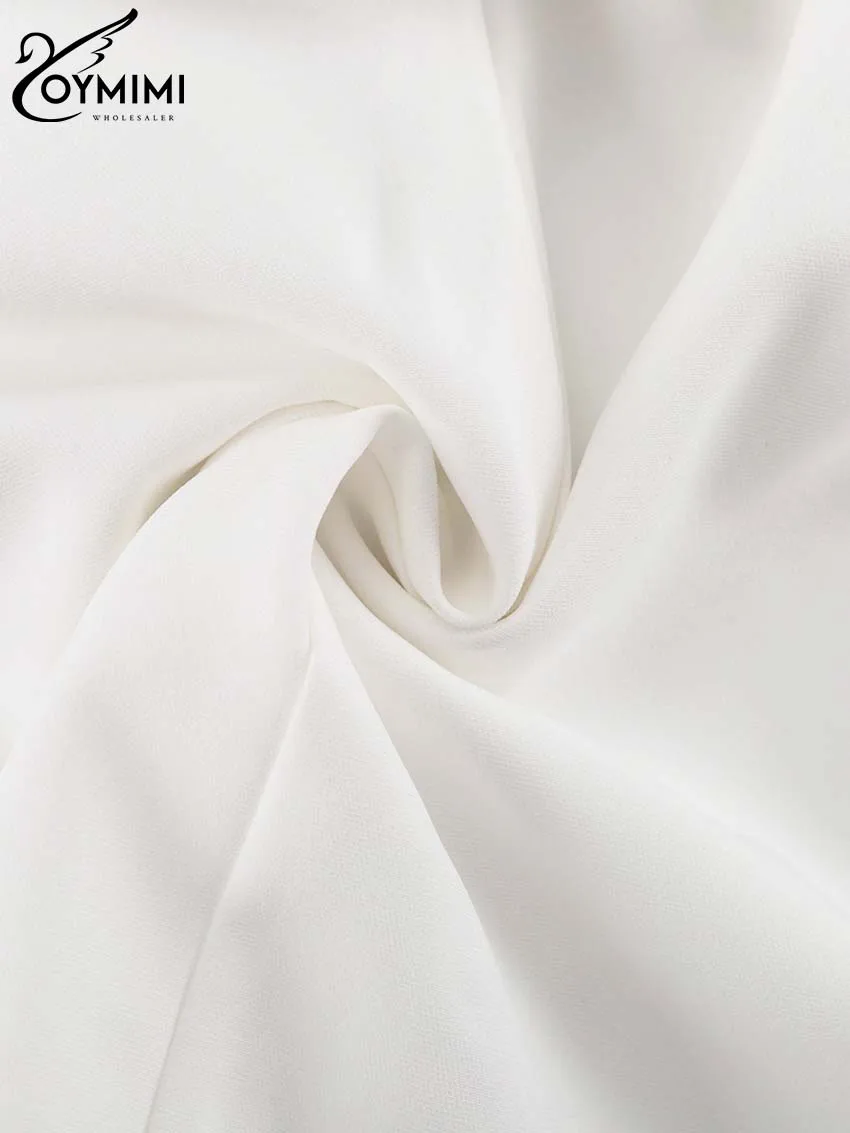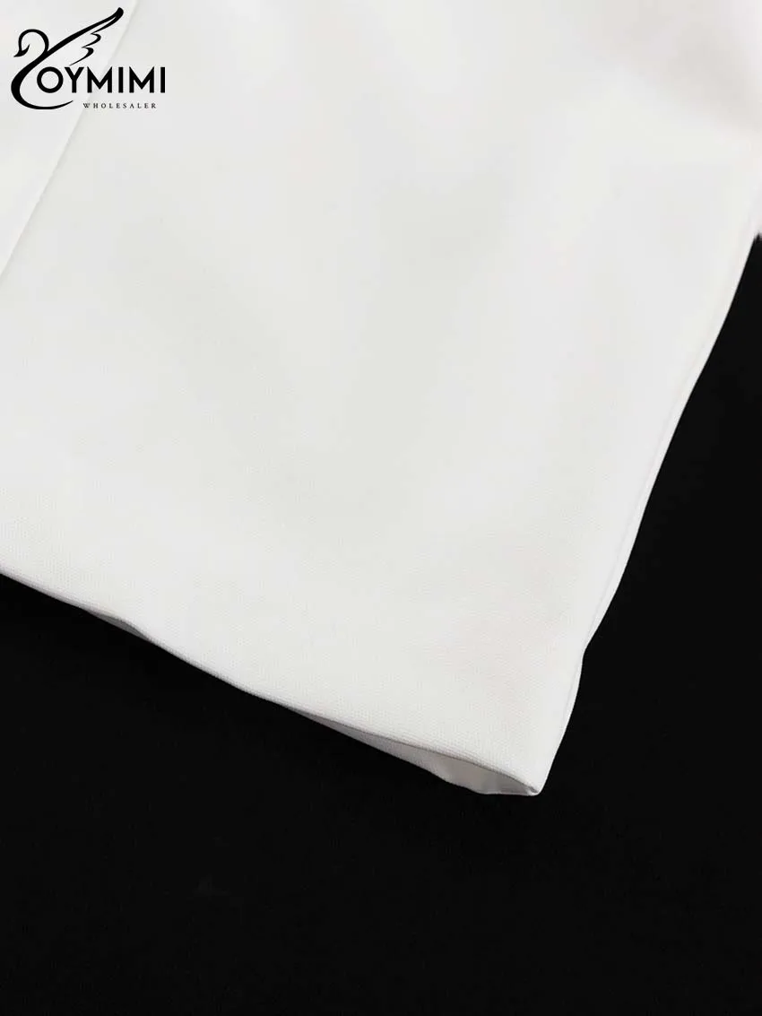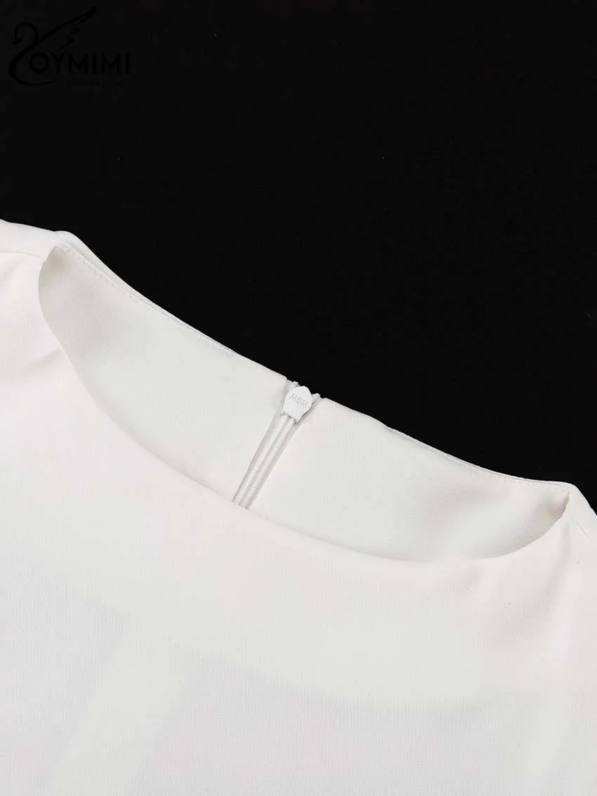Oymimi Casual White O-Neck Dresses For Women Elegant Long Sleeve Slim Pockets Dresses Autumn Straight Mini Dress Female Clothing