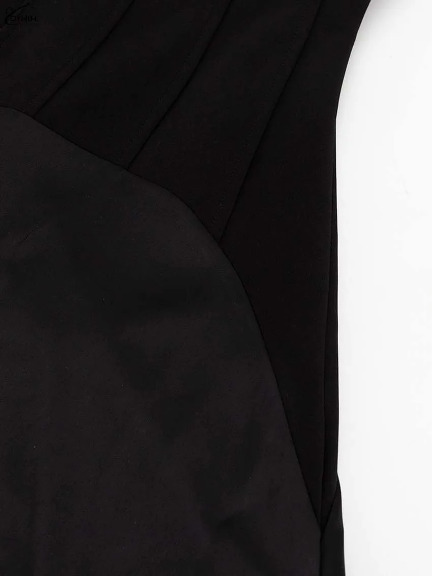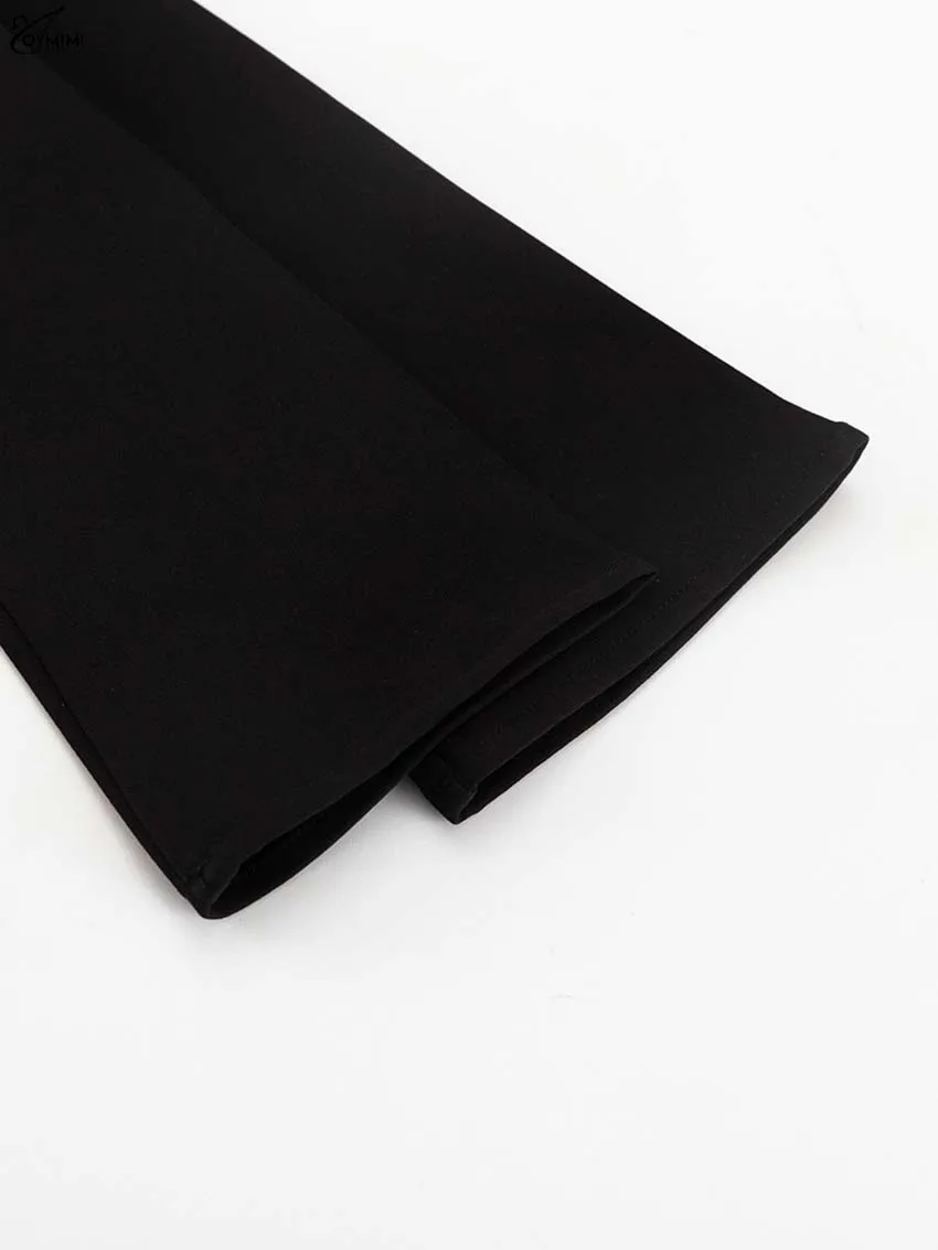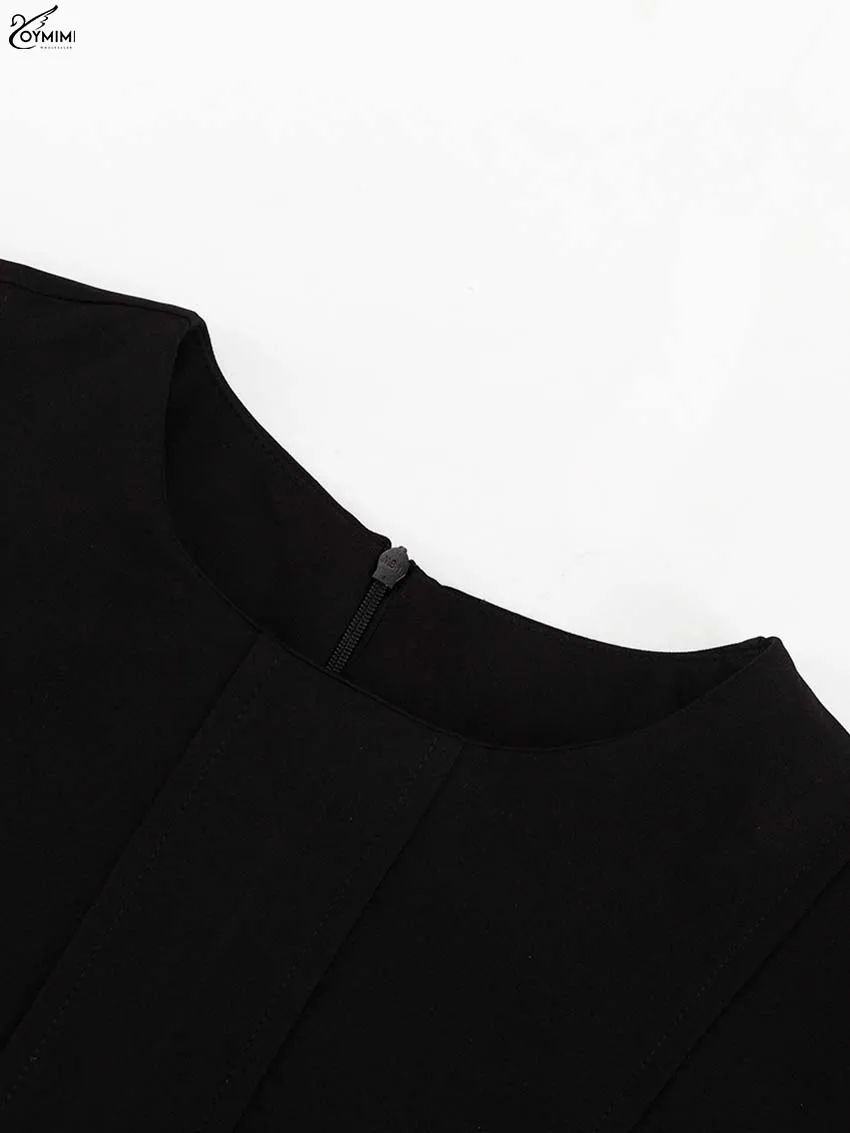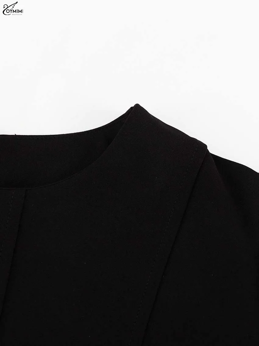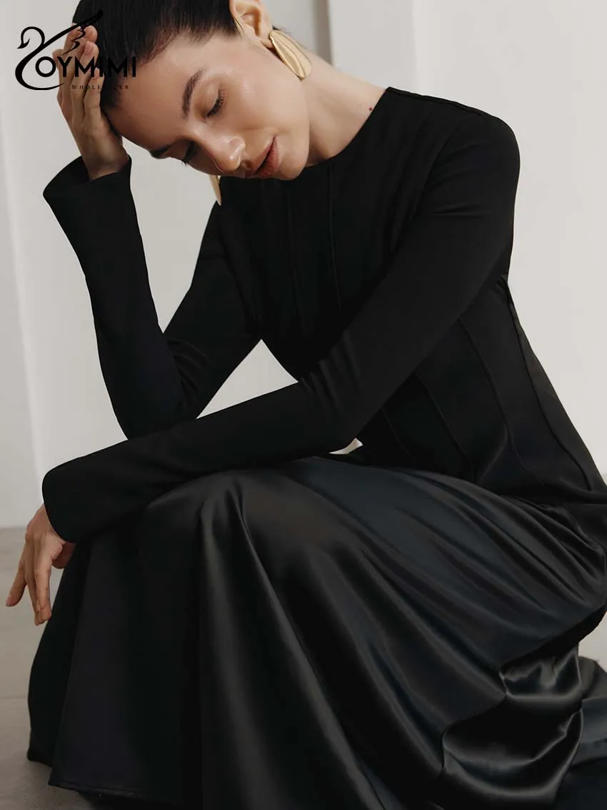Oymimi Elegant Black O-Neck Womens Dresses Fashion Long Sleeve Patchwork Slim Dresses Casual New Straight Ankle-Length Dress