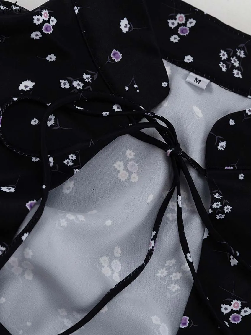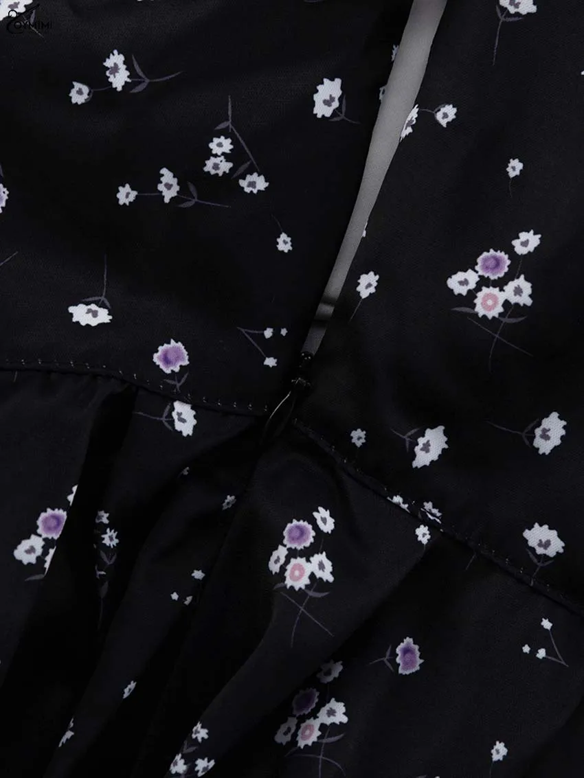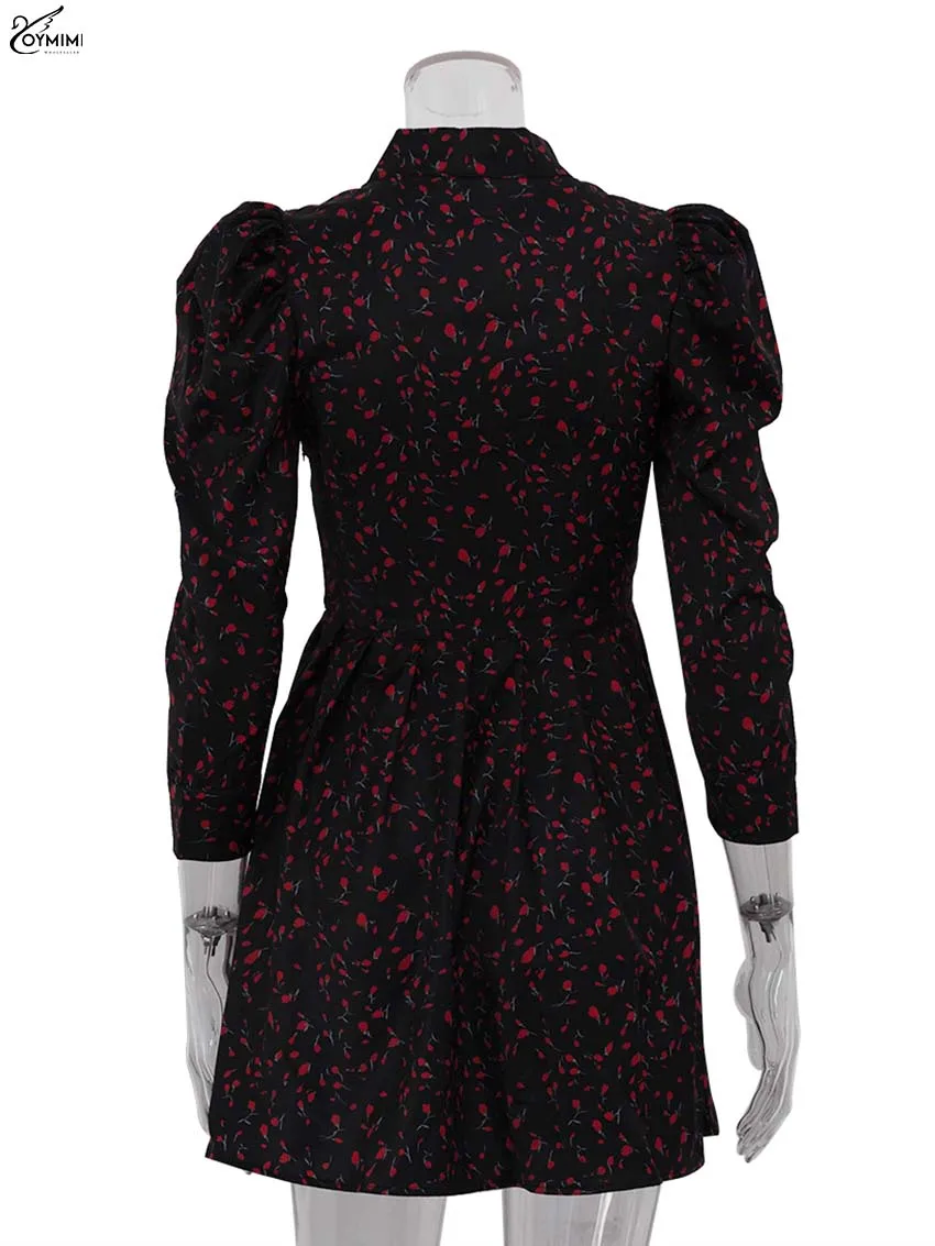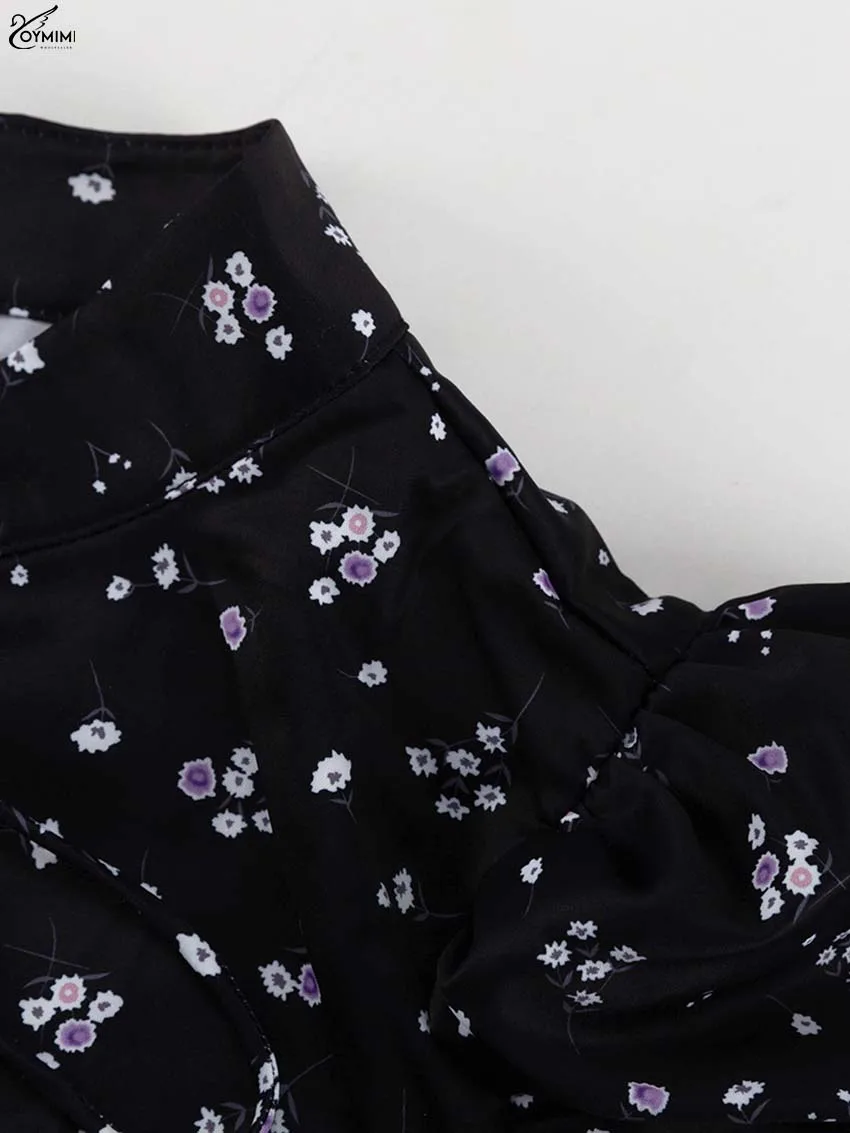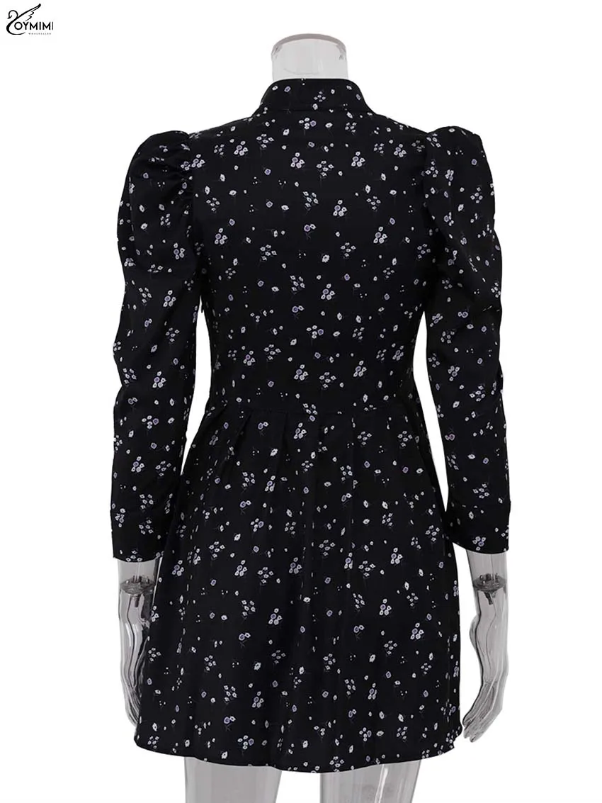 Oymimi Elegant Black White Womens Dresses Fashion Three Quarter Sleeve Hollow Out Dresses Casual High Waisted Mini Dress Female
