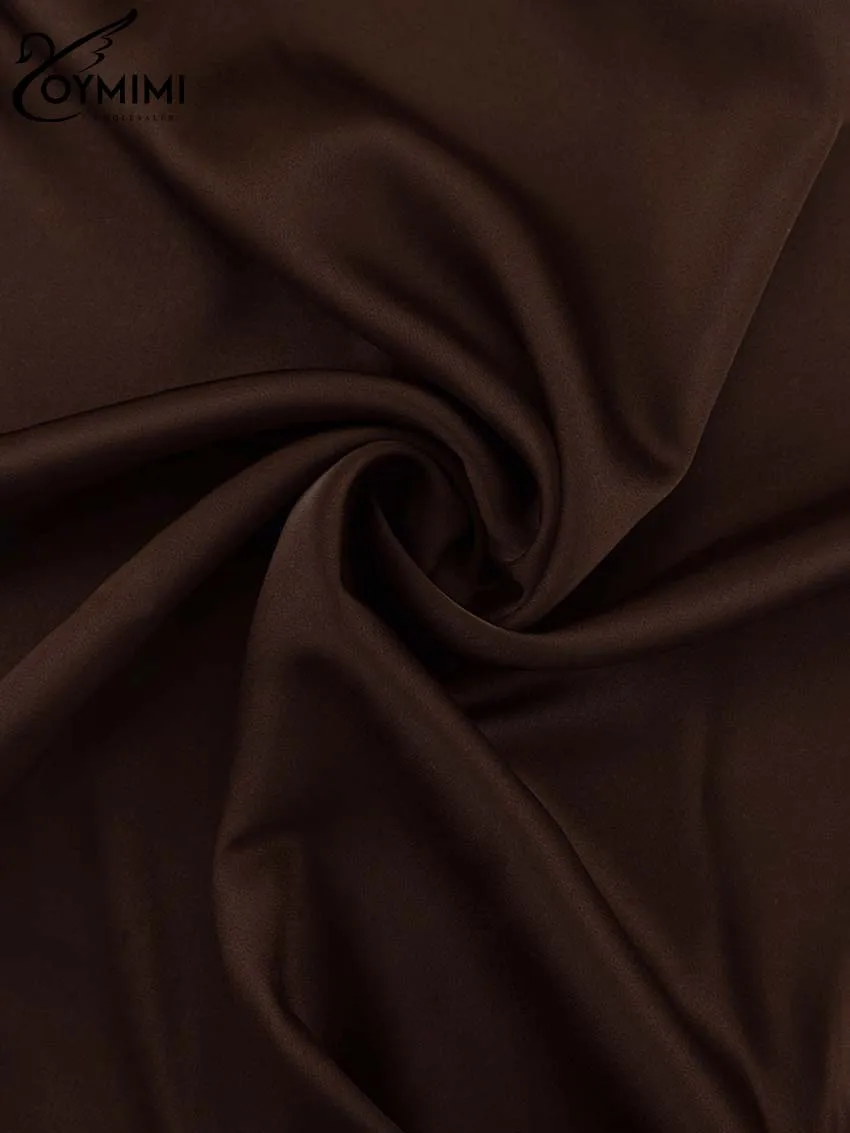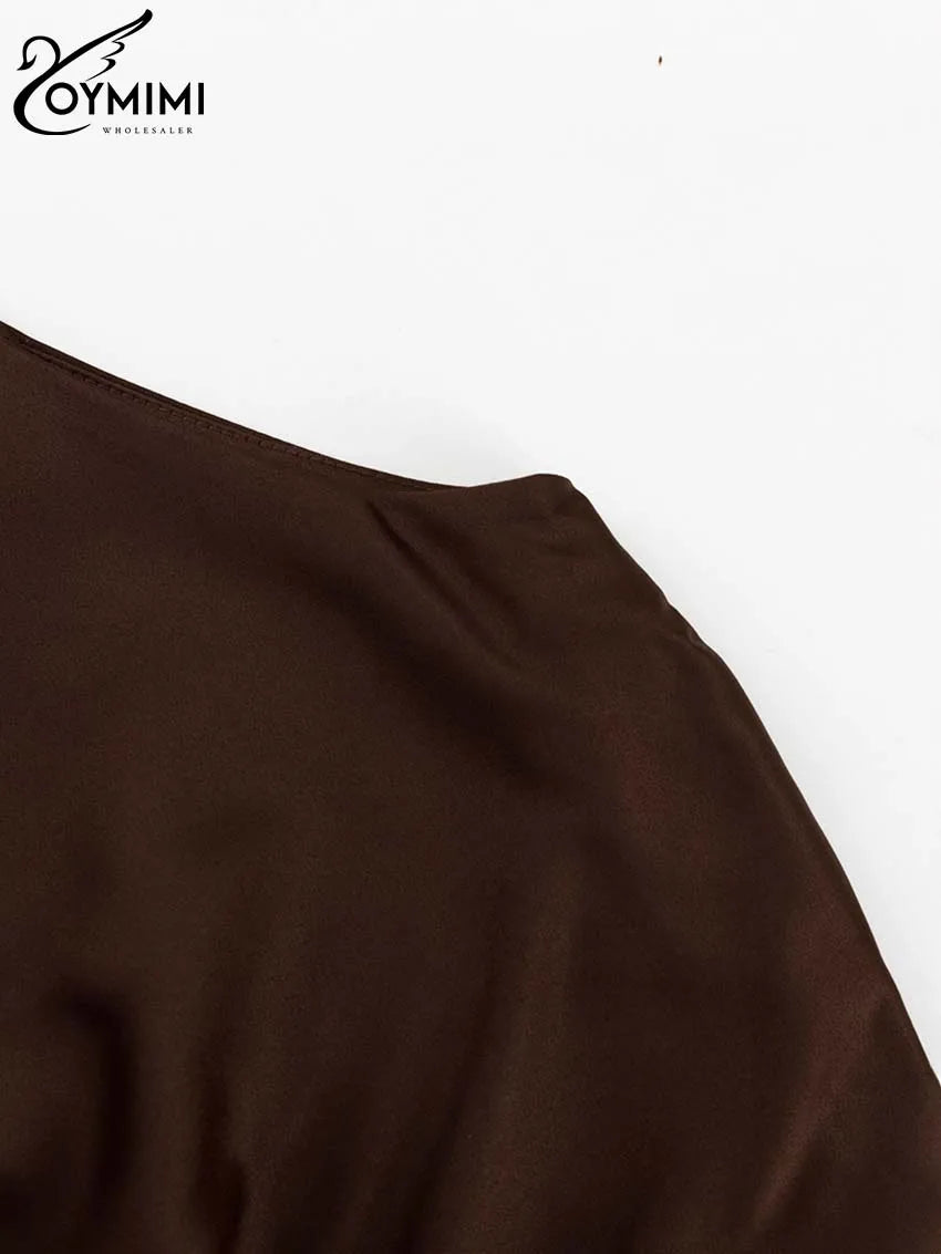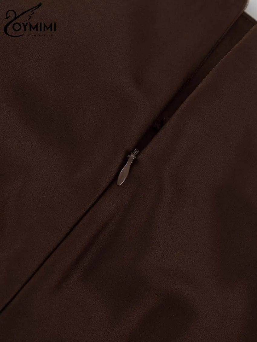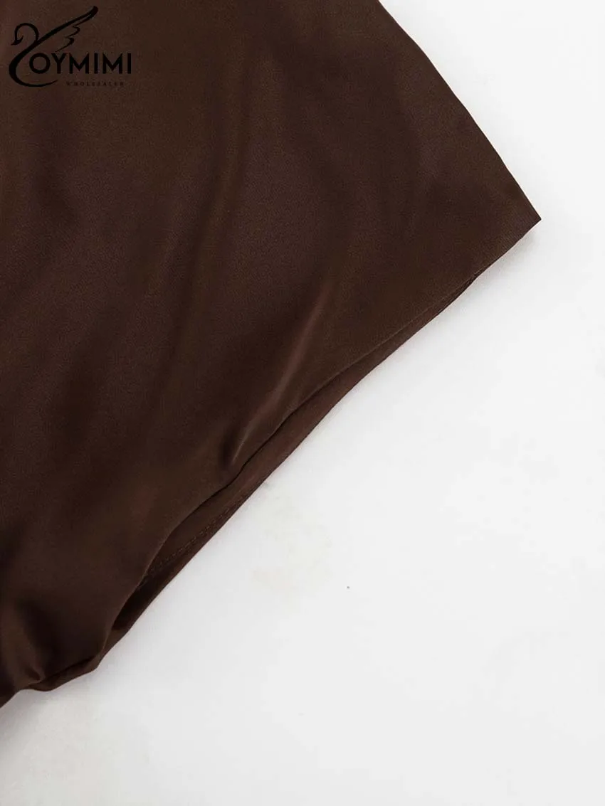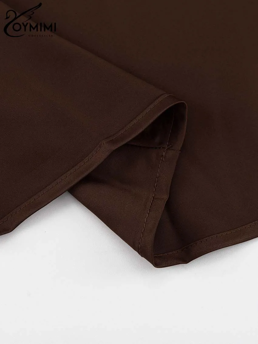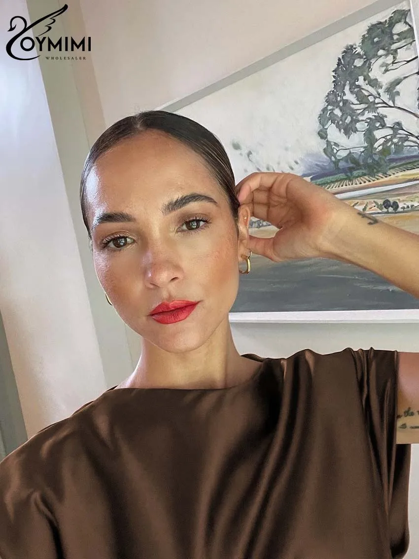 Oymimi Elegant Brown O-Neck Womens Dresses Fashion Short Sleeve Slim Solid Dresses Casual Slim Floor-Length Dress Streetwear