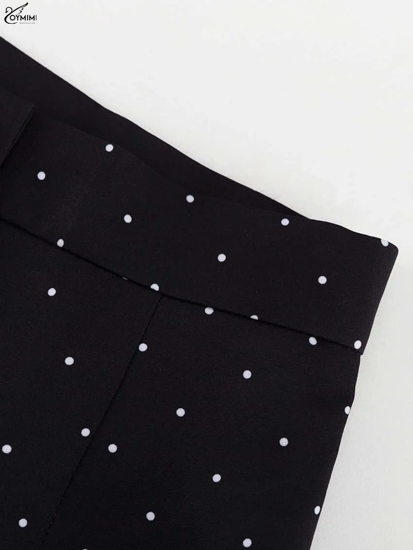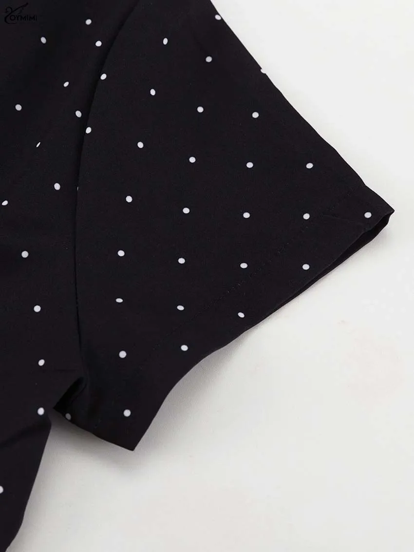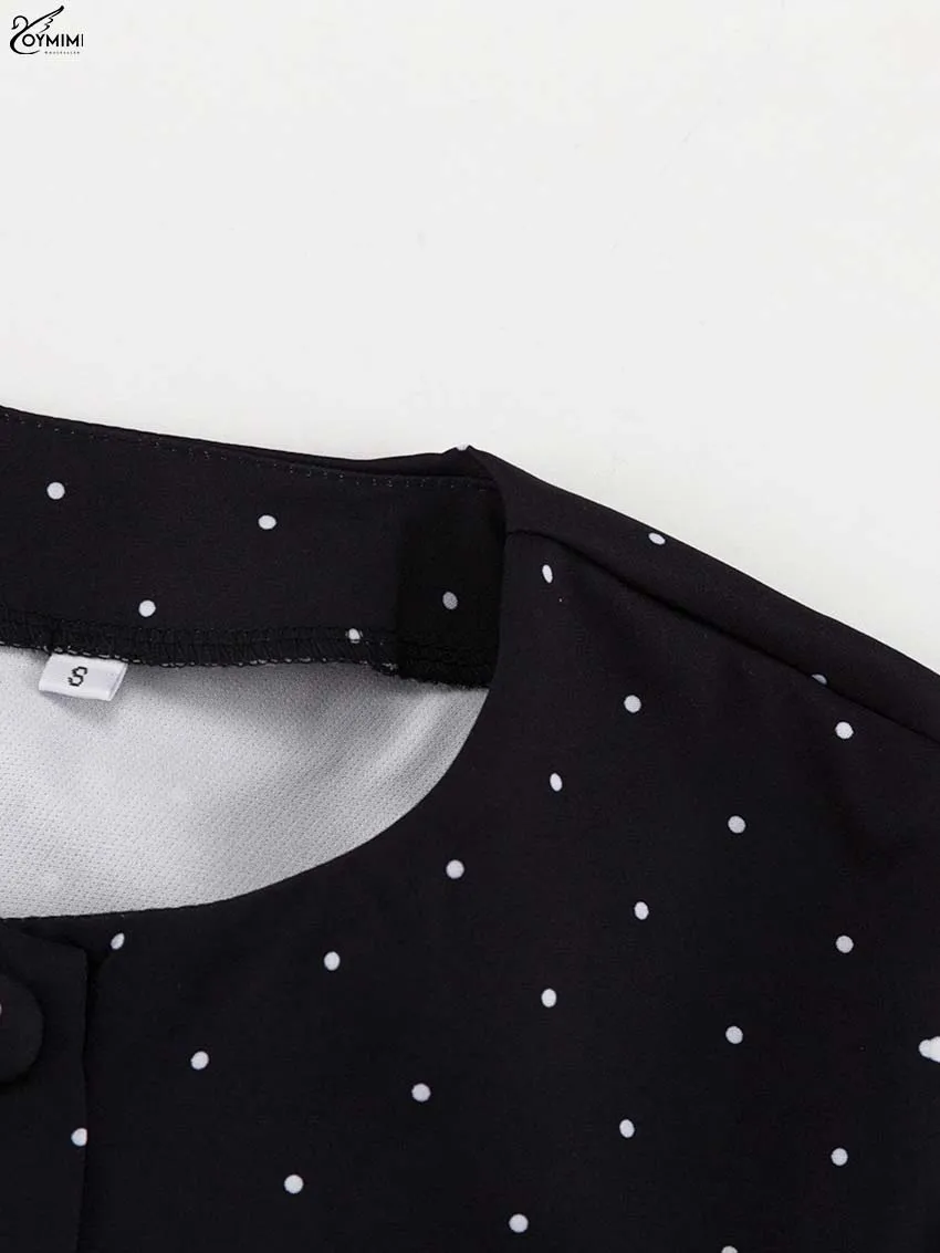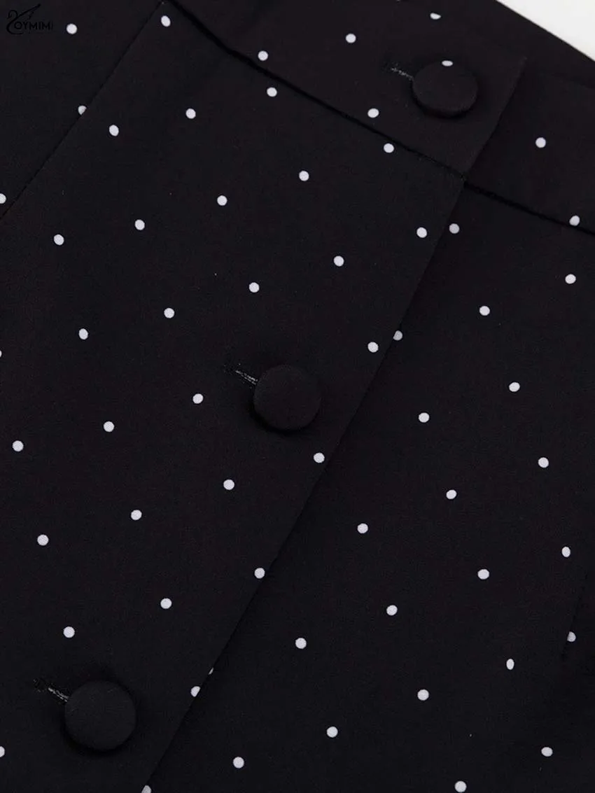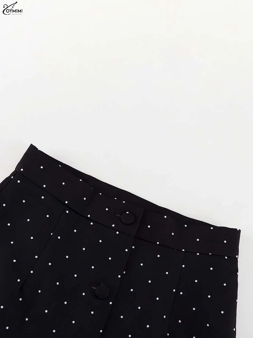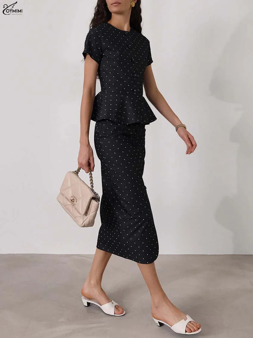 Oymimi Fashion Black Print Two Piece Outfits Woman Elegant Short Sleeve Button Blouses And High Waisted Slim Mid-Calf Skirt Sets