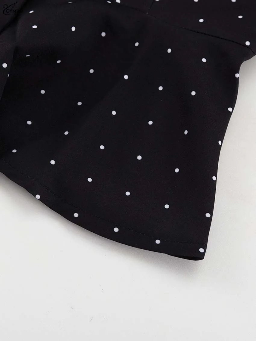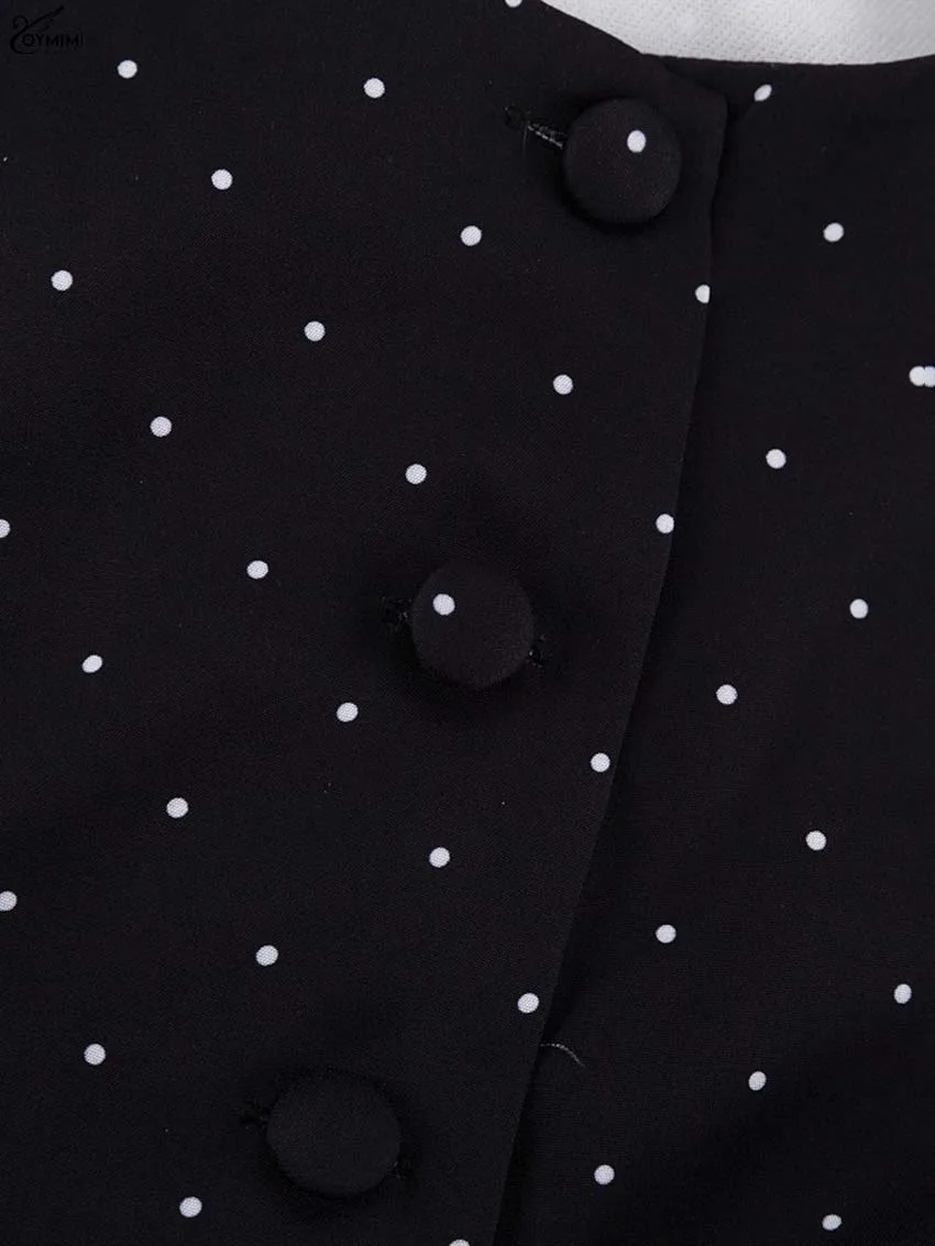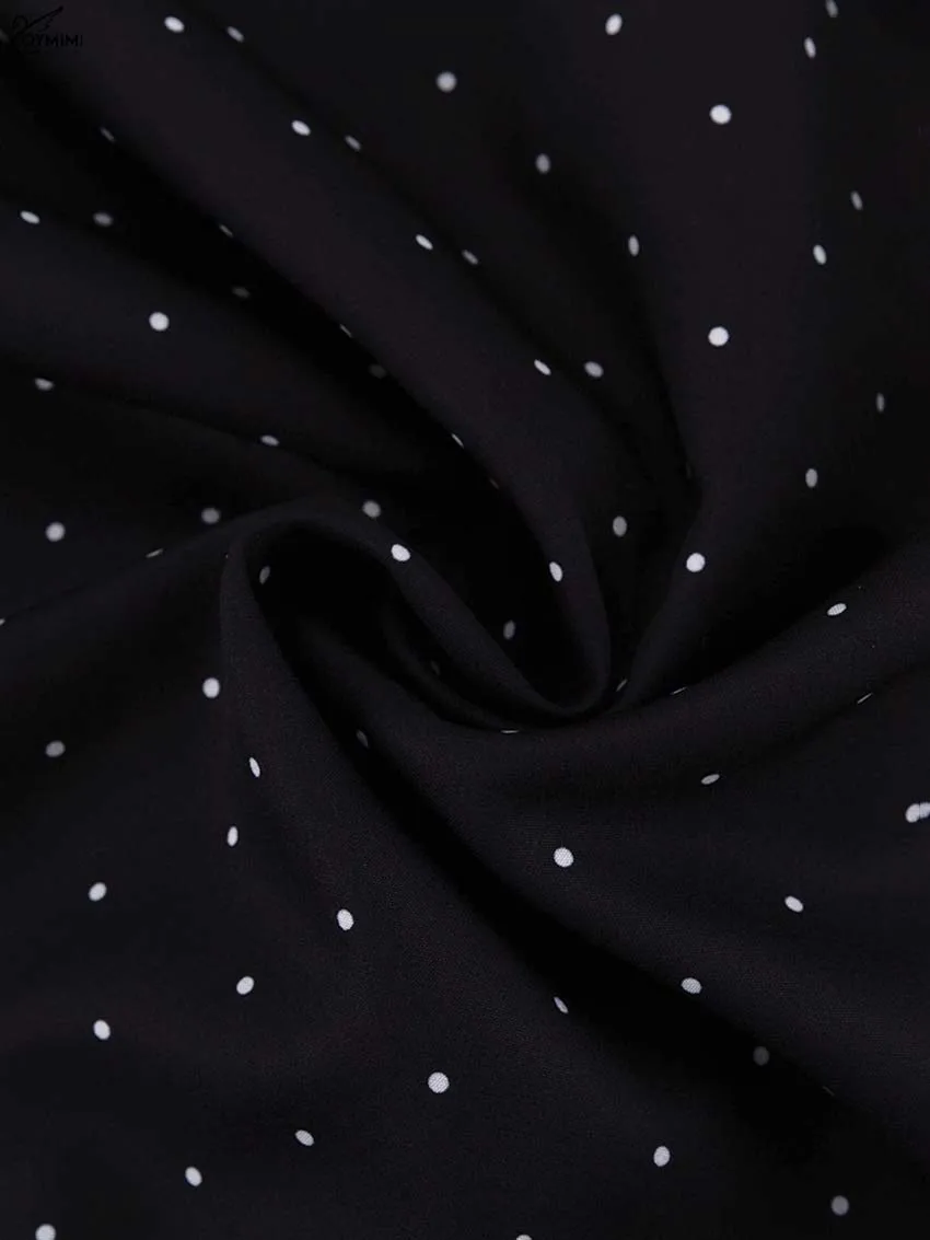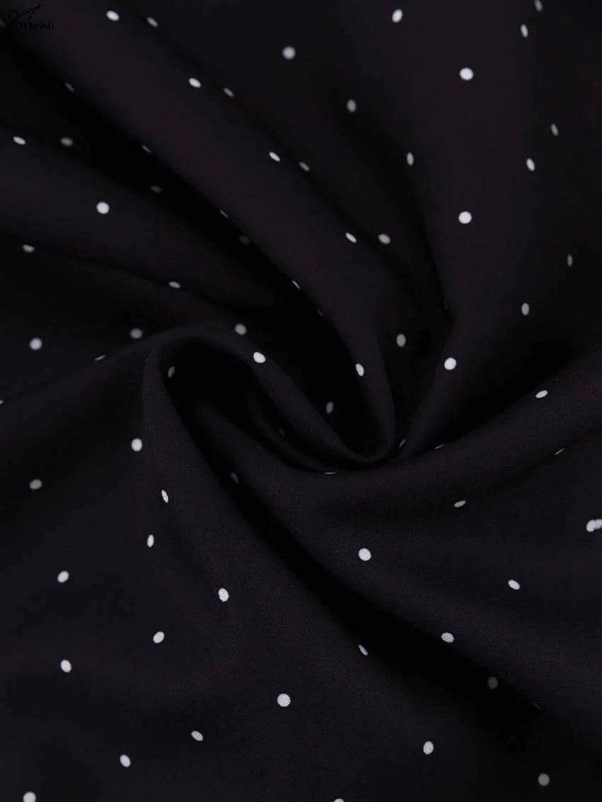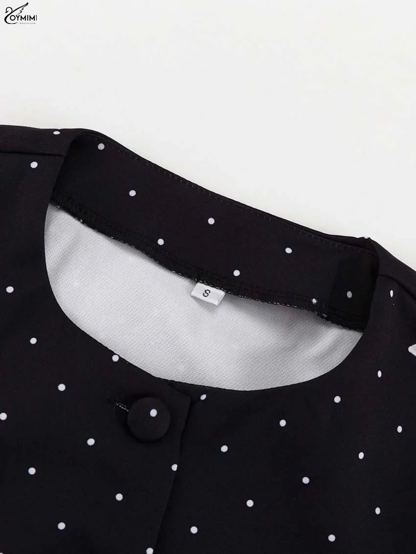 Oymimi Fashion Black Print Two Piece Outfits Woman Elegant Short Sleeve Button Blouses And High Waisted Slim Mid-Calf Skirt Sets