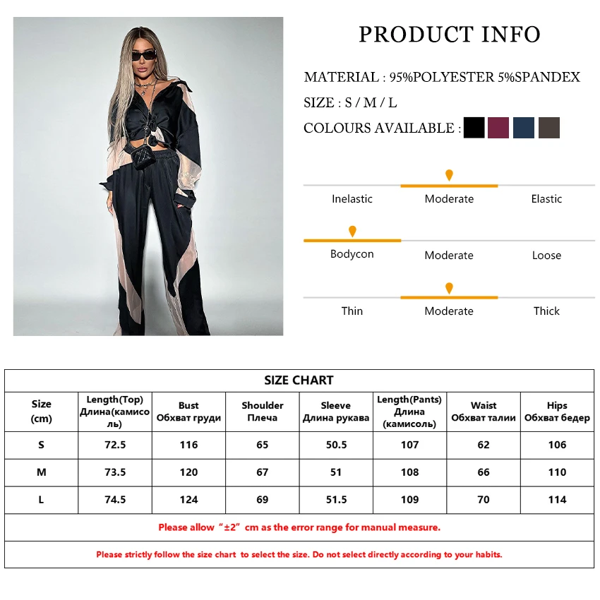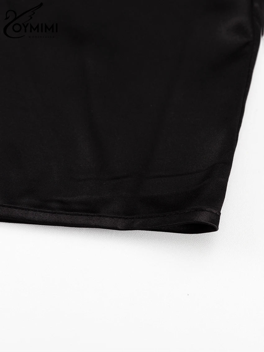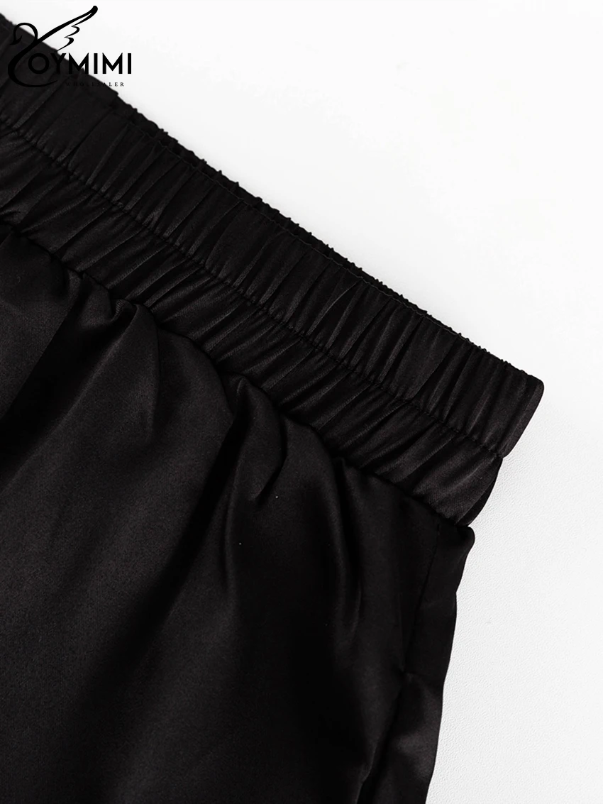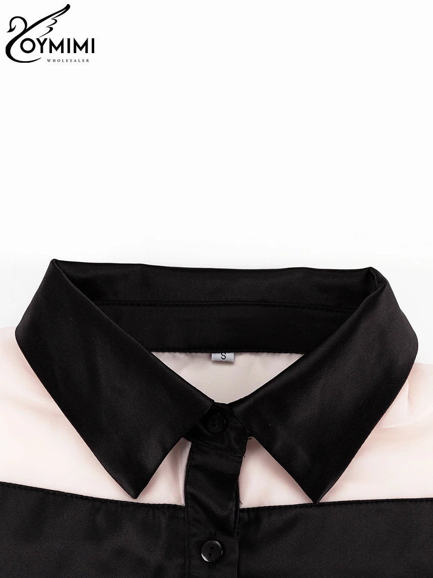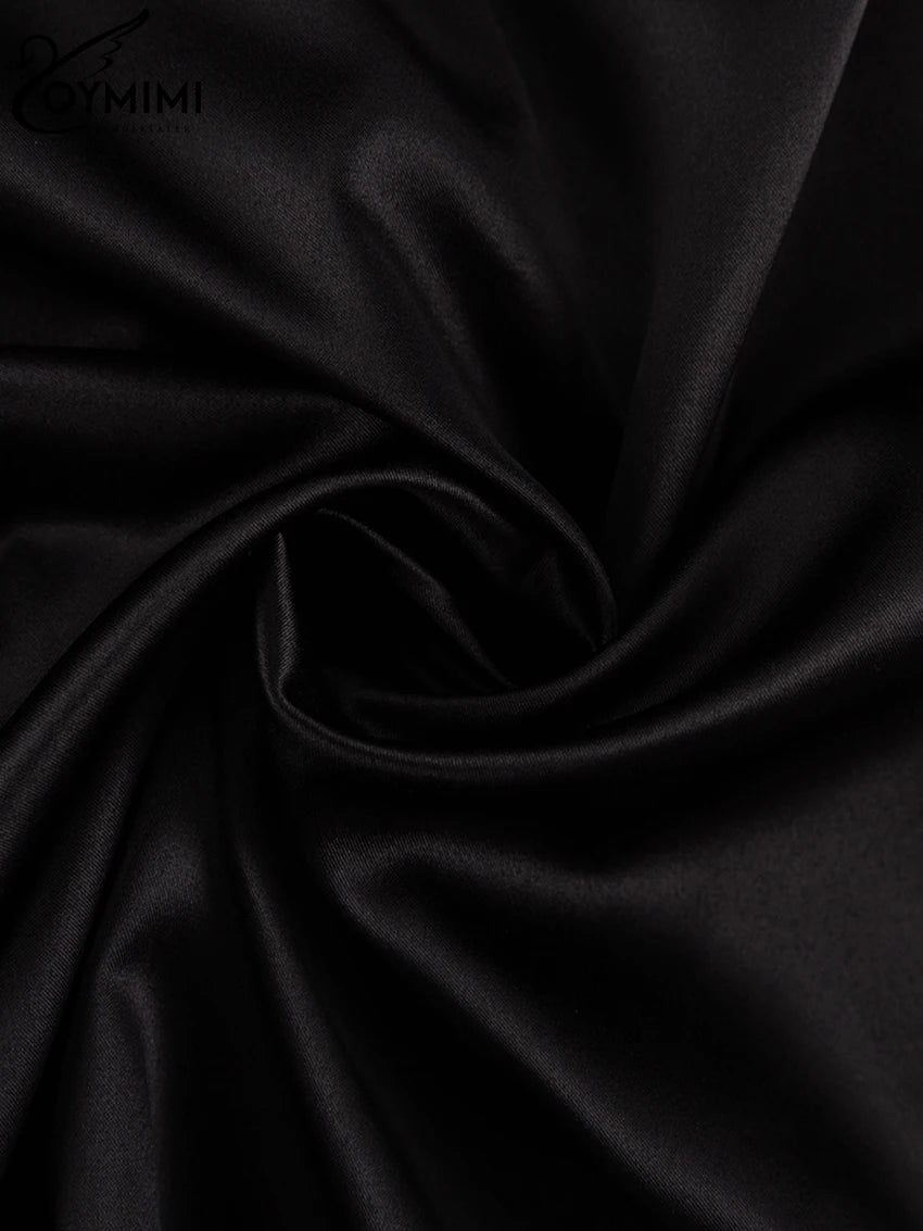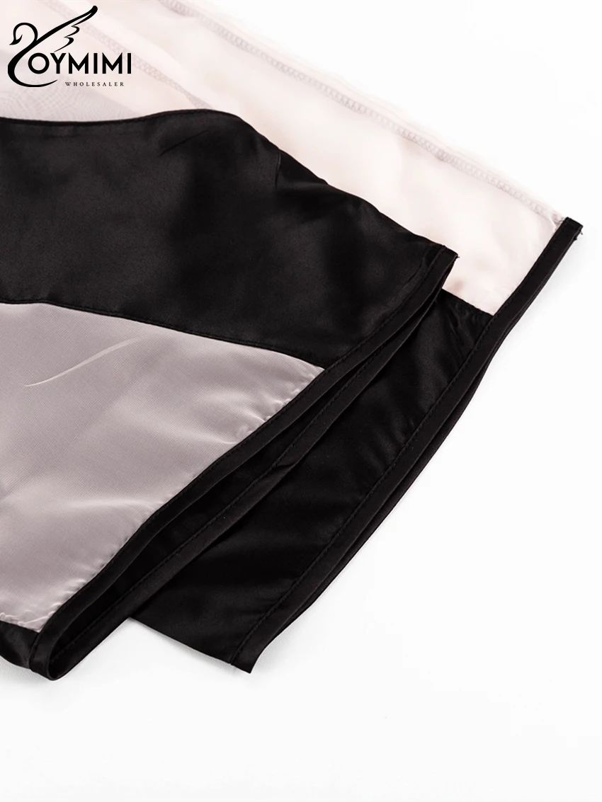 Oymimi Fashion Black Satin Patchwork 2 Piece Set Women Outfit Streetwear Long Sleeve Shirt With High Waist Pant Sets Y2k Clothes