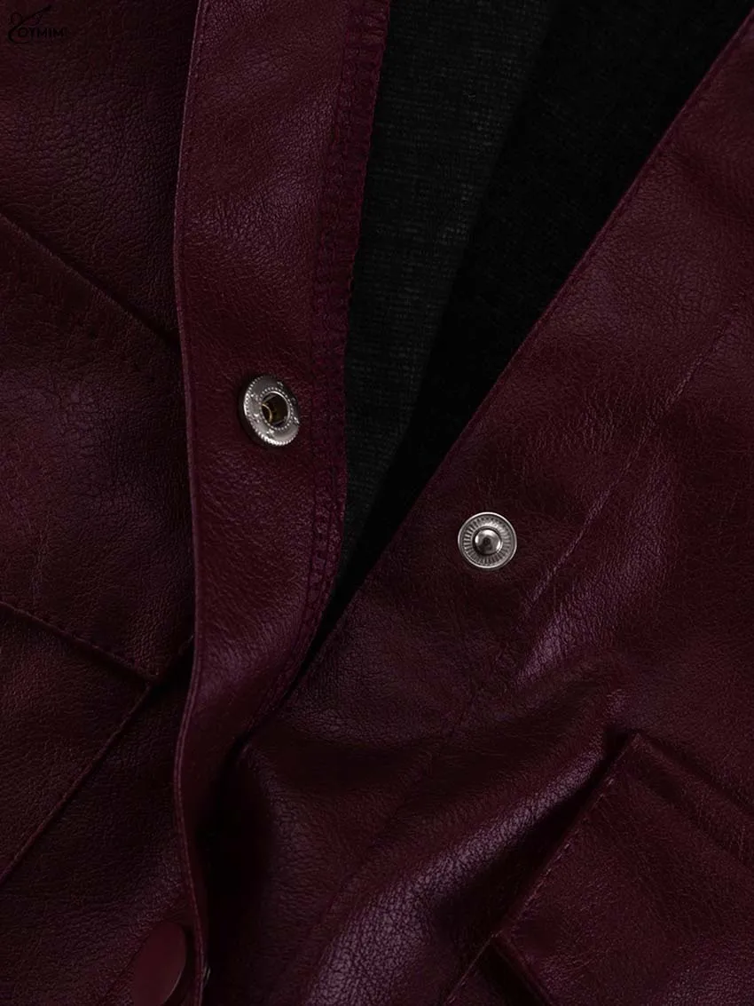 Product Name: Fashion Wine Red Pu Leather Women's Two Pieces Set
