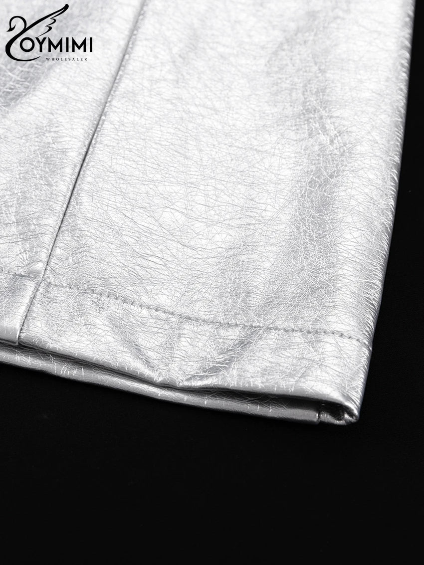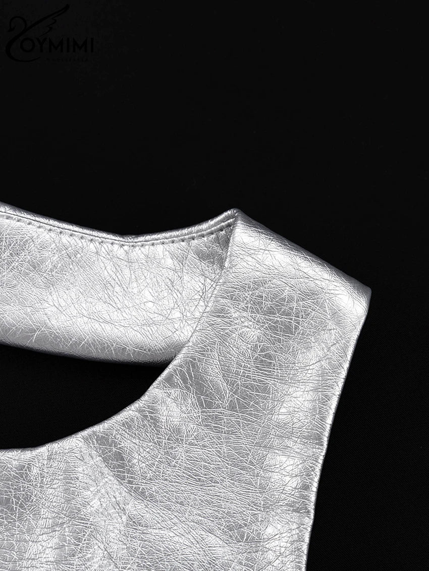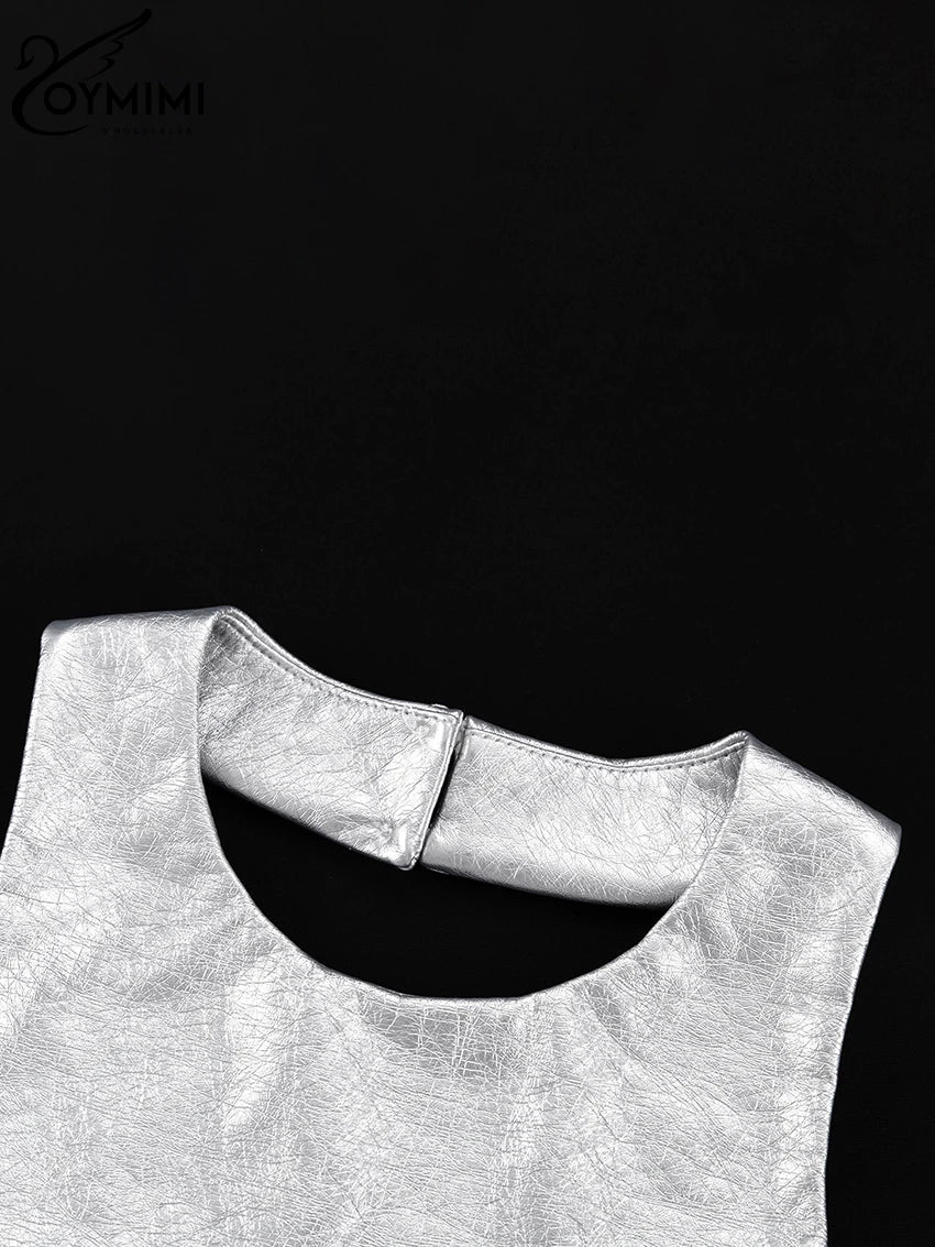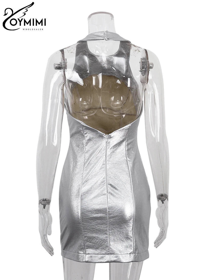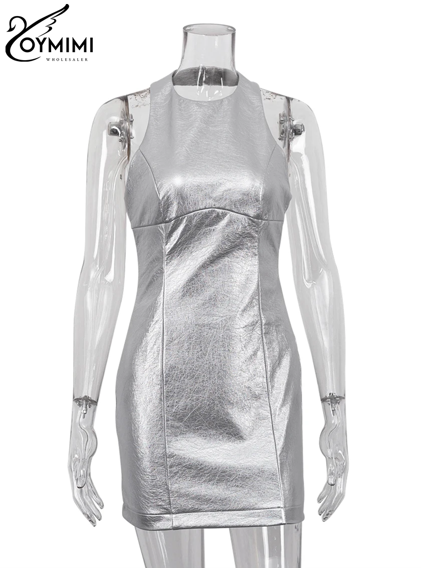 Oymimi Sexy Sliver Bodycon Dress Lady Fashion Slim O-Neck Sleeveless Mini Dress Elegant Classic Party Dresses For Women 2023