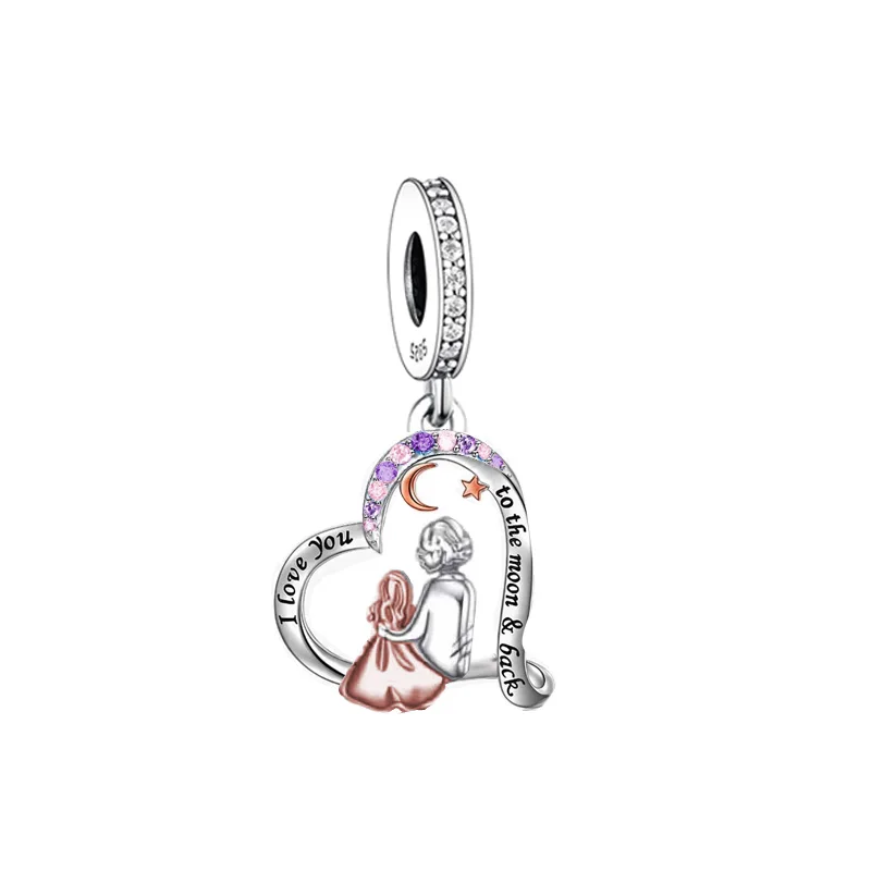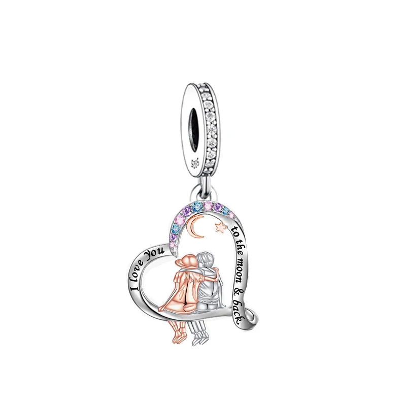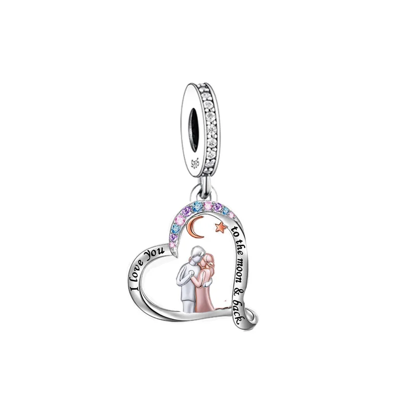 Pan Charms Bracelet Necklace I Love You to The Moon and Back Bead 925 Sterling Silver Fit Original for Women Jewelry Making S925