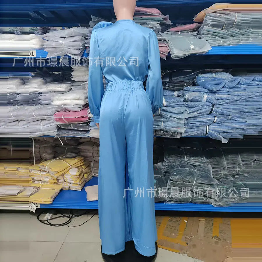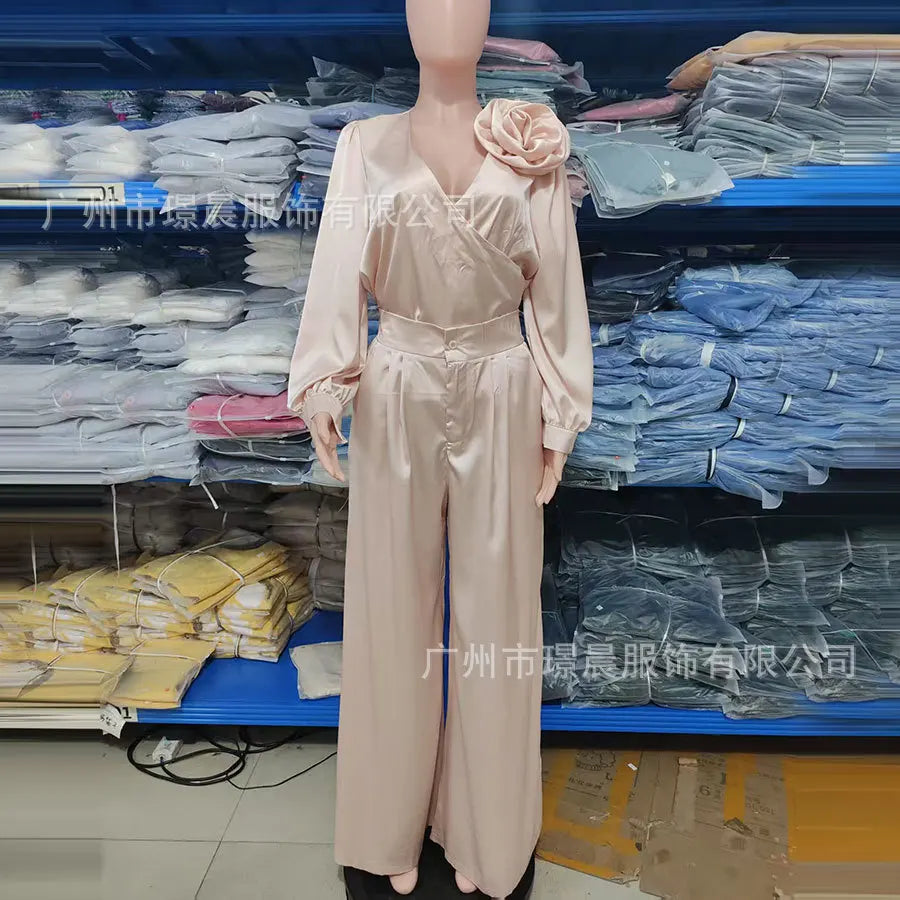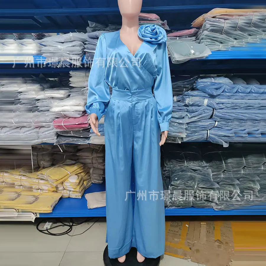 Pant Set Women Two Piece Sets V Neck Matching Sets Floral Slim Fit Tops Wide Leg Long Pants High Waist Y2k Elegant Retro 2025