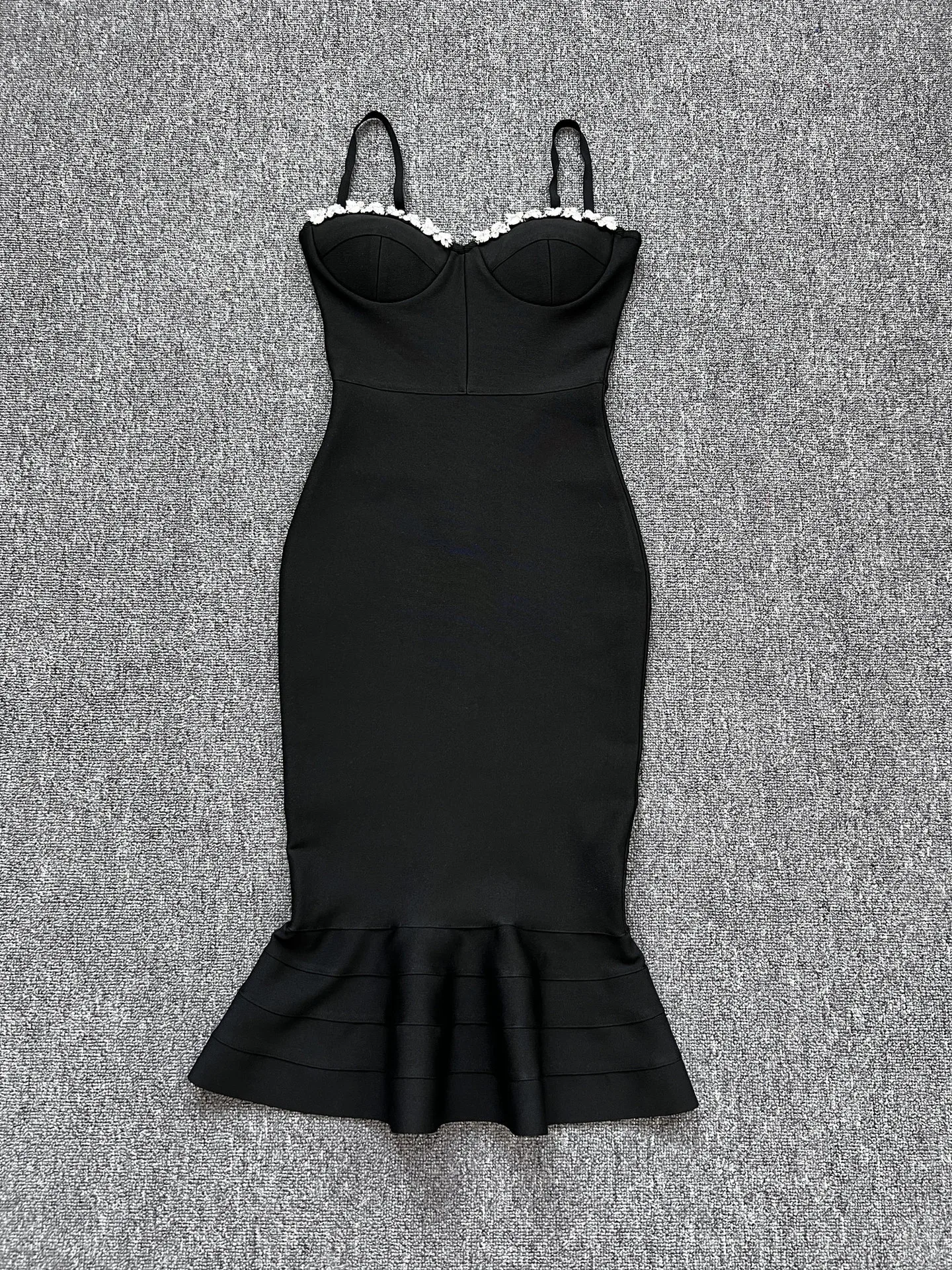 Party Wear Crystal Dresses Rhinestone Stretch Bandage Fish Tail Dress for Women