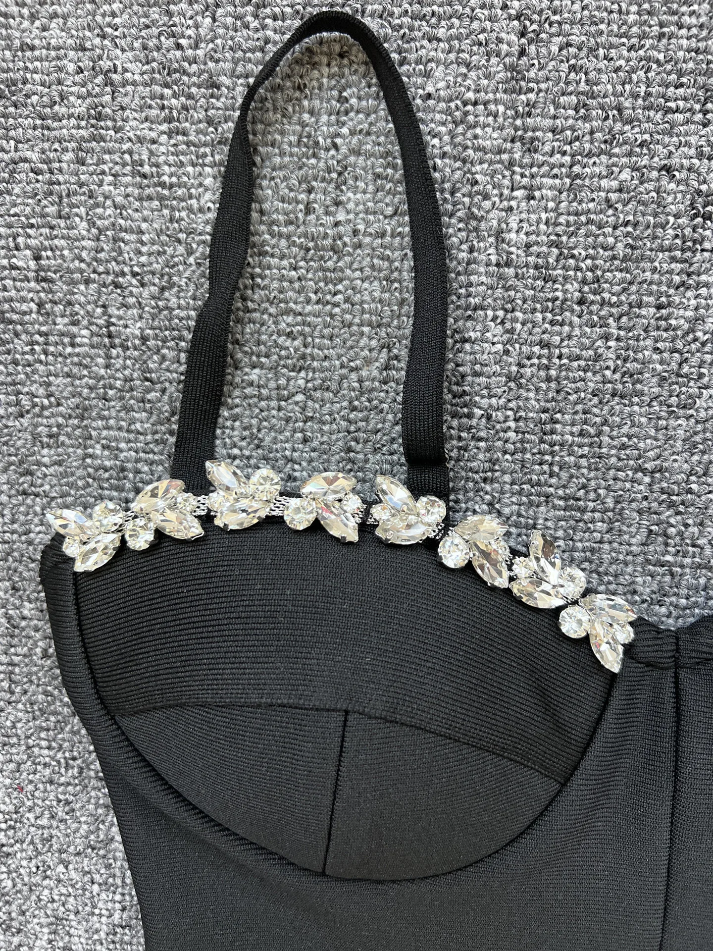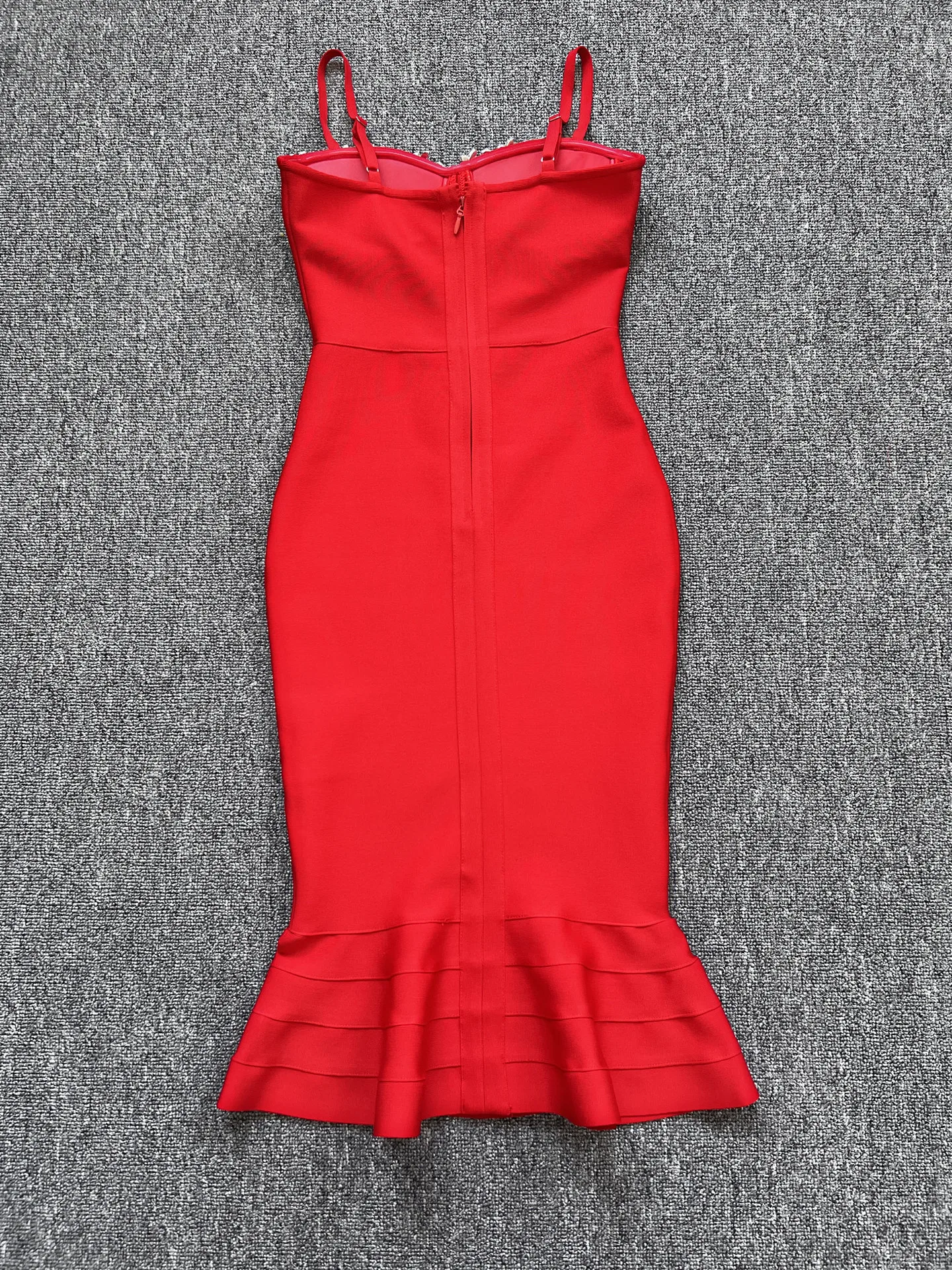 Party Wear Crystal Dresses Rhinestone Stretch Bnadage Fish Tail Dress for Women