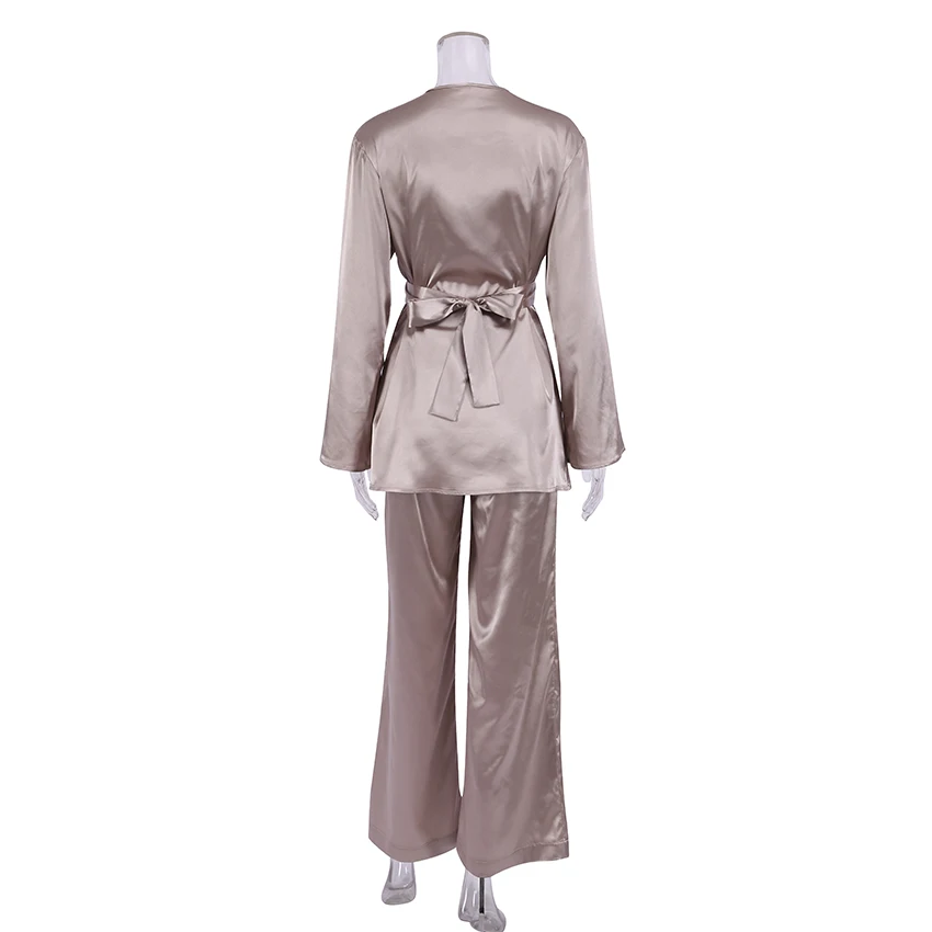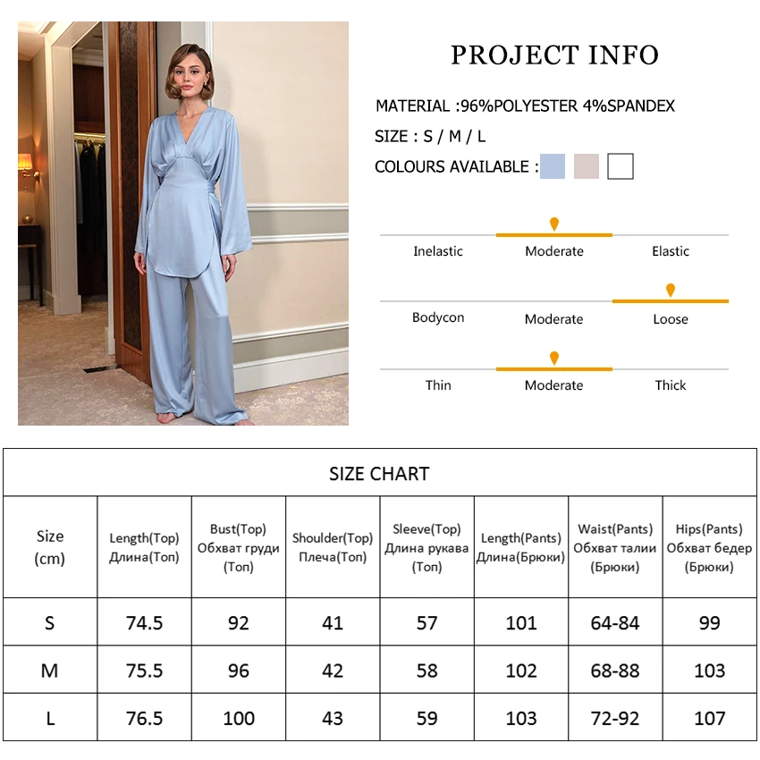 Patchwork Trouser Suits Long Sleeves Satin Pajamas For Women Pajamas Set With Pants V Neck Split Sleepwear Home Suit 2024