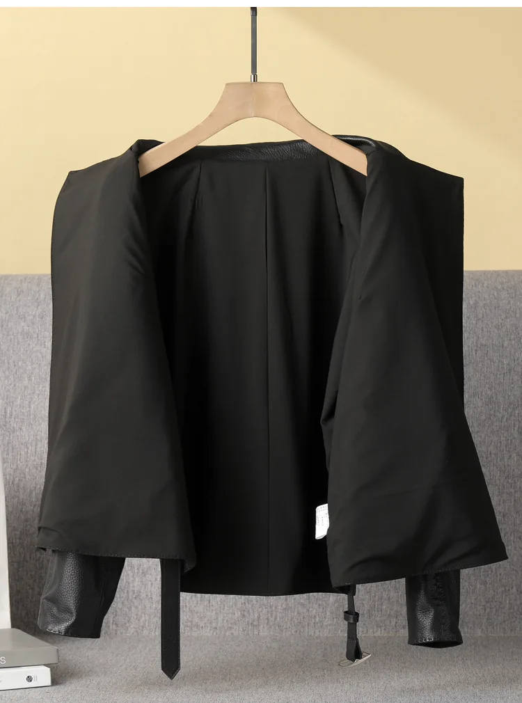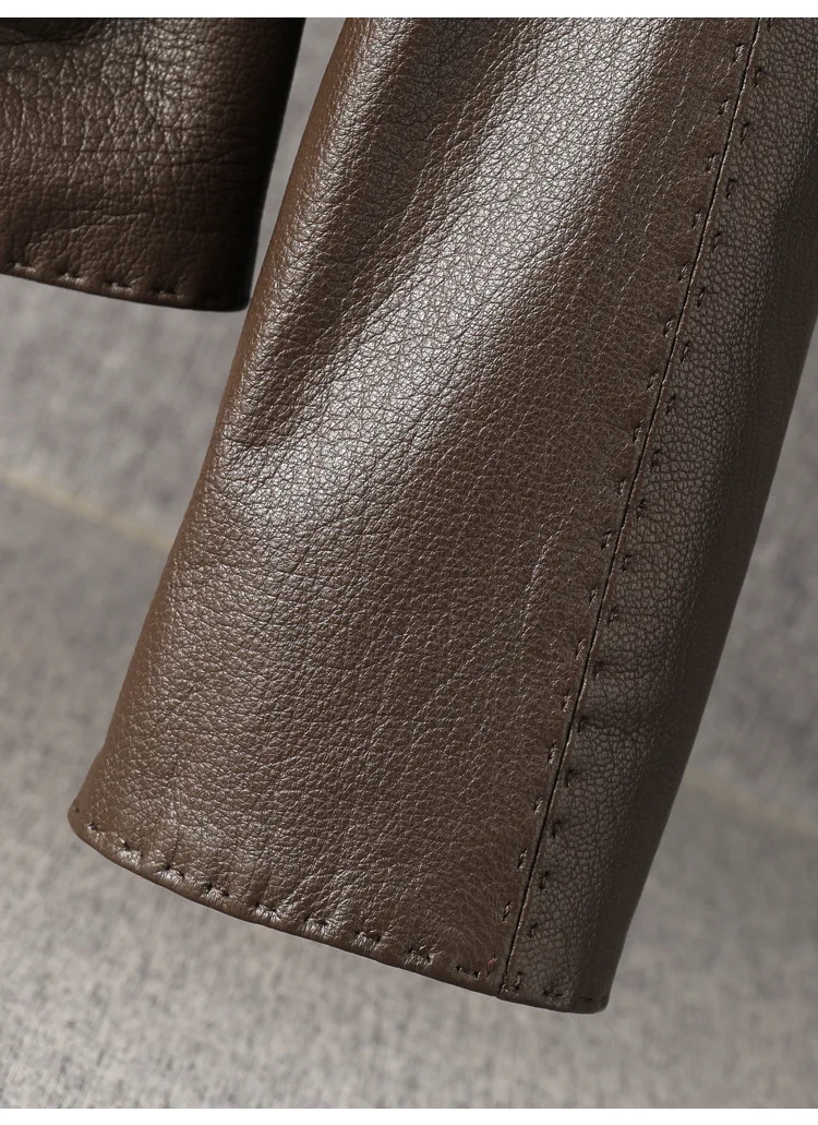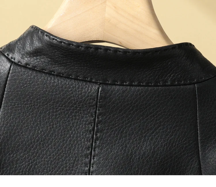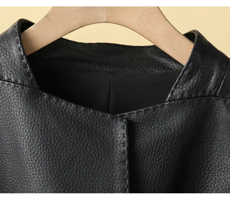 Pattern Genuine Leather Clothes Female Short Round Neck Collarless Leather Jacket Coat Short