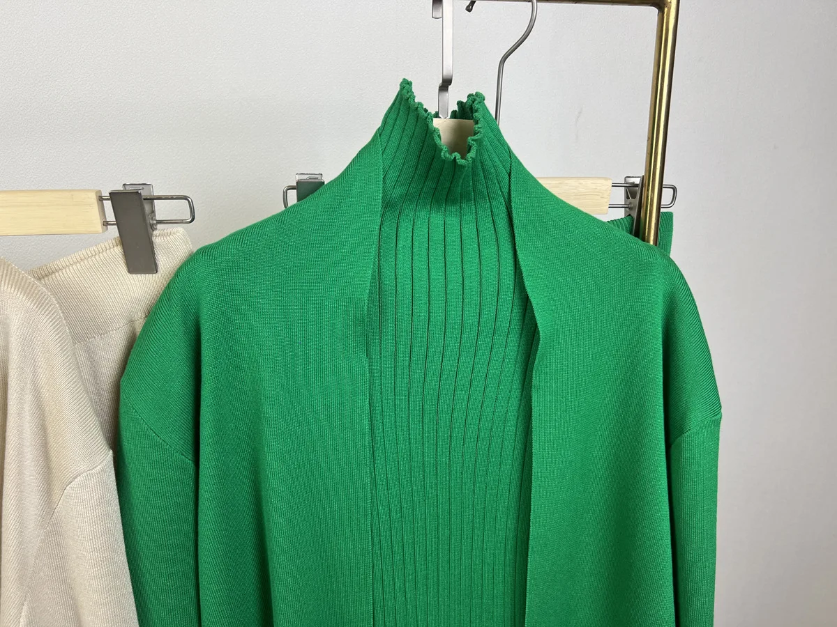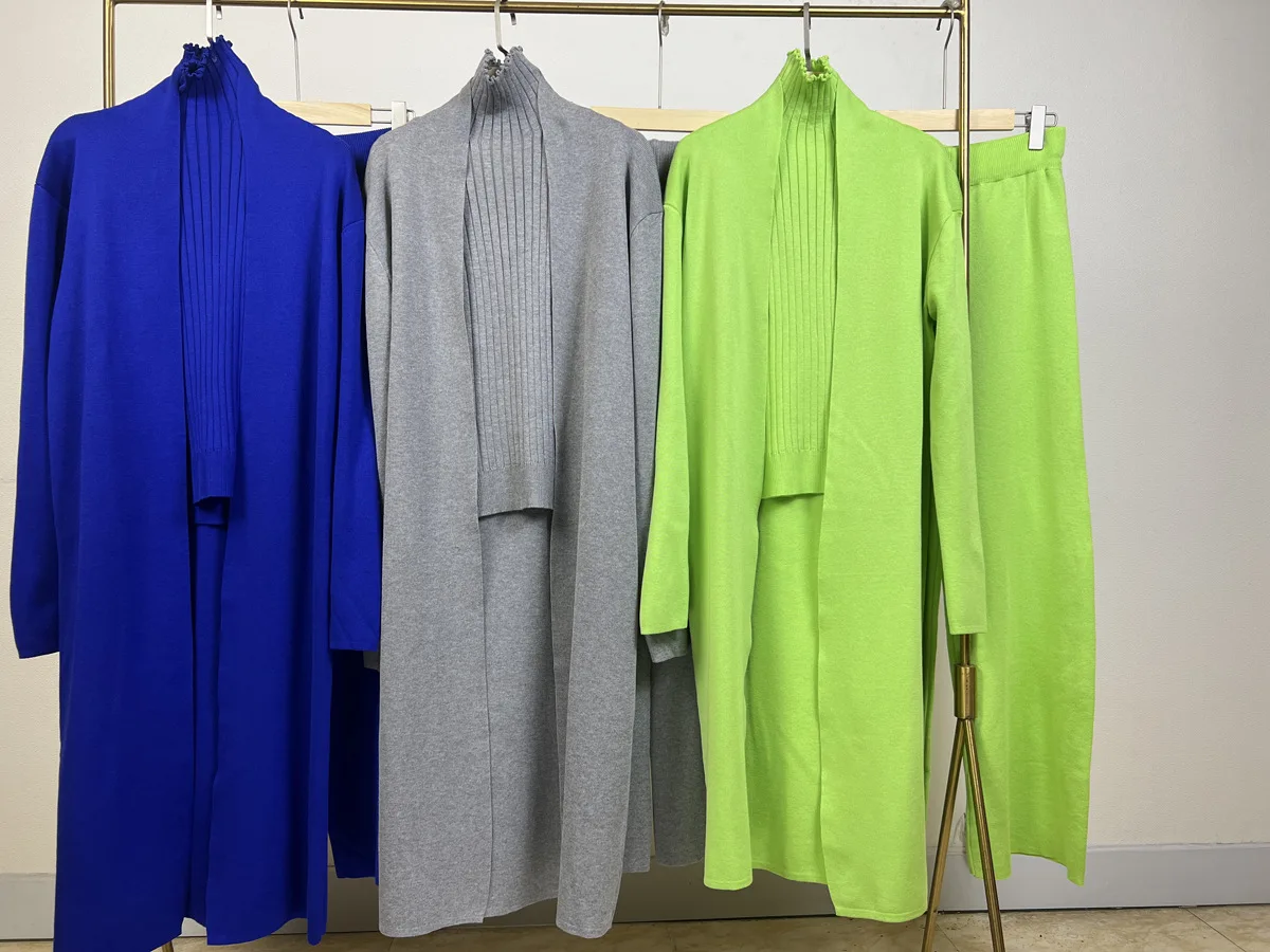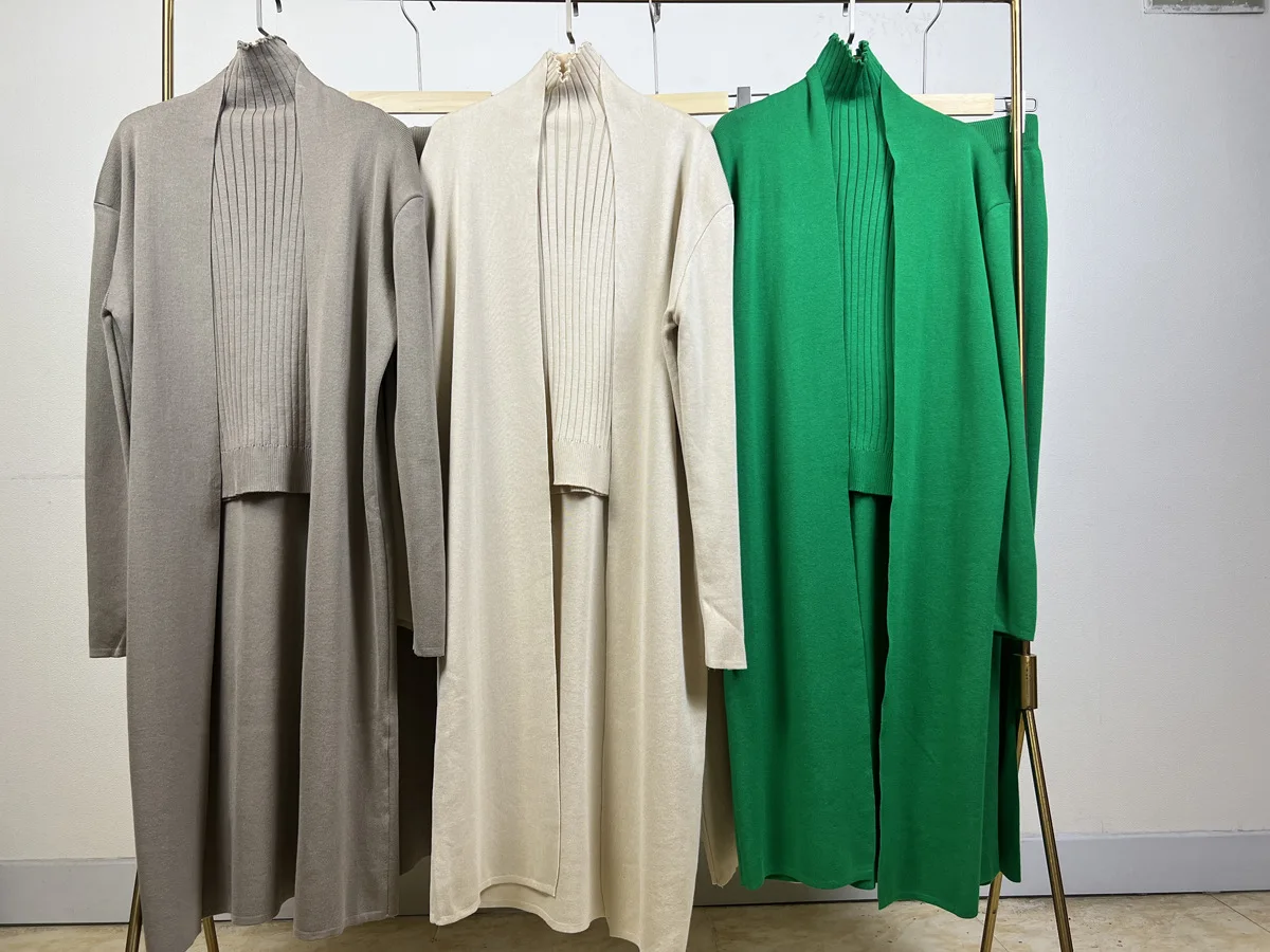 PDEP 2023 autumn and winter Knitted Set Casual Three Piece Set Dubai Foreign Trade cardigan sweater women wide pant set