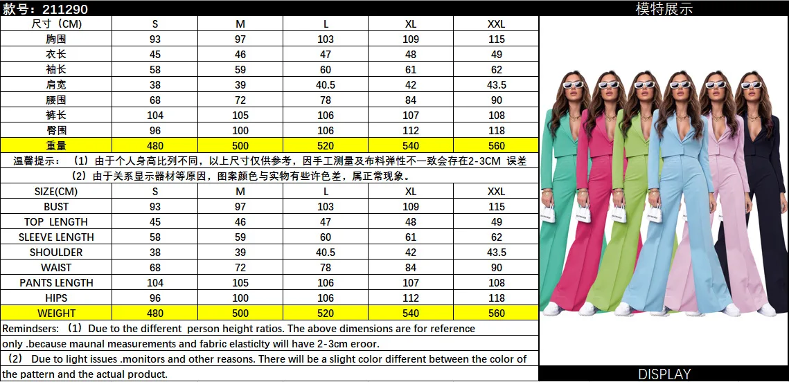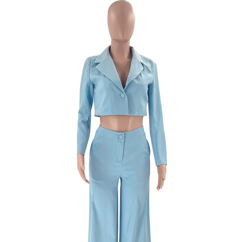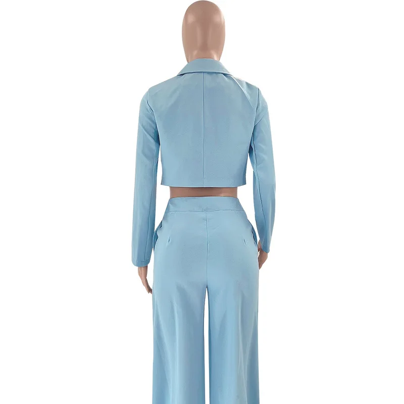 PDEP 2023 autumn new solid color short crop top and fashion high waist wide-leg pants blazer two piece suits sets for women