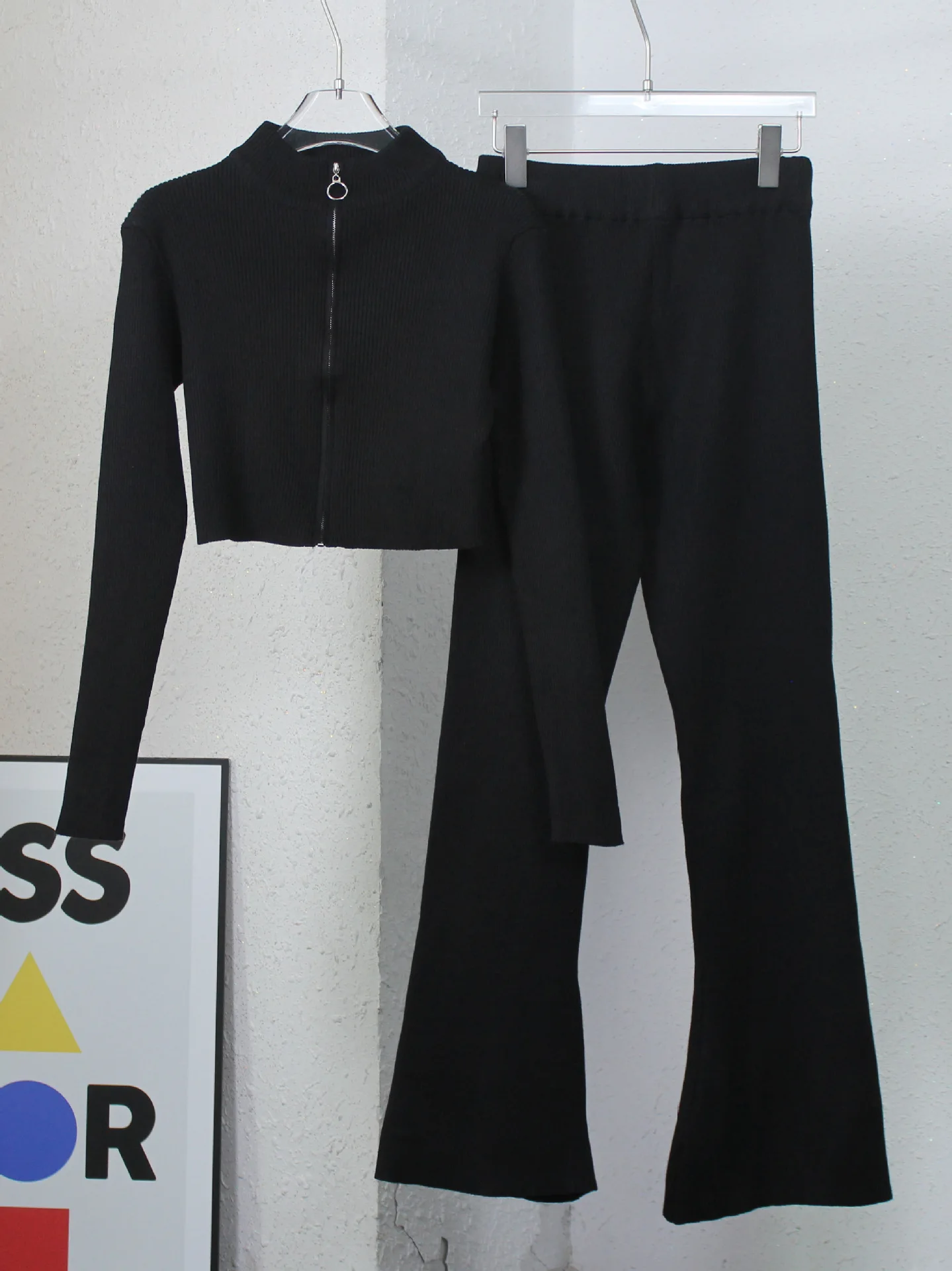 PDEP 2023 autumn short crop sweater and top high waist wide leg pant set solid color fashion Korean casual two piece set