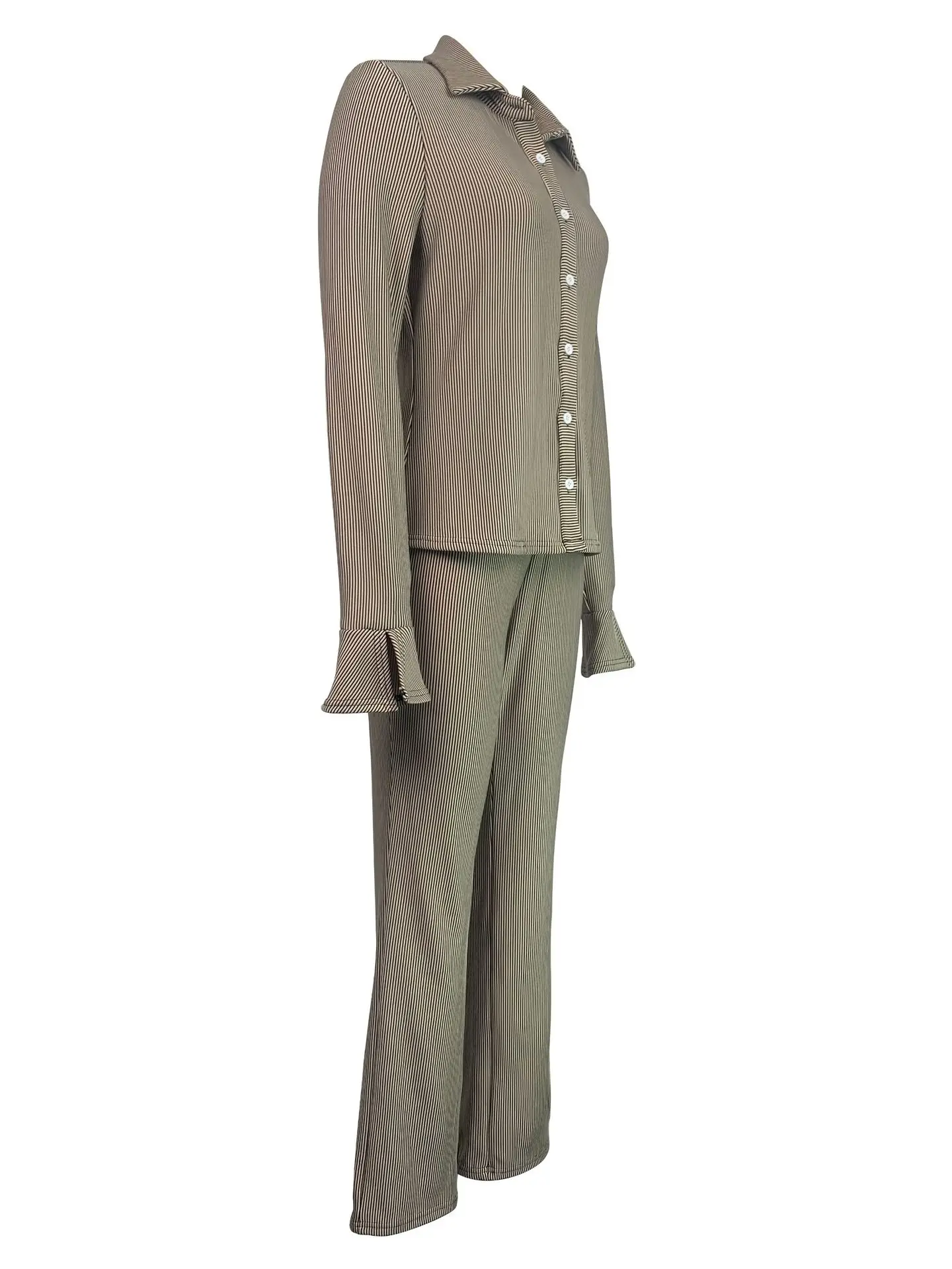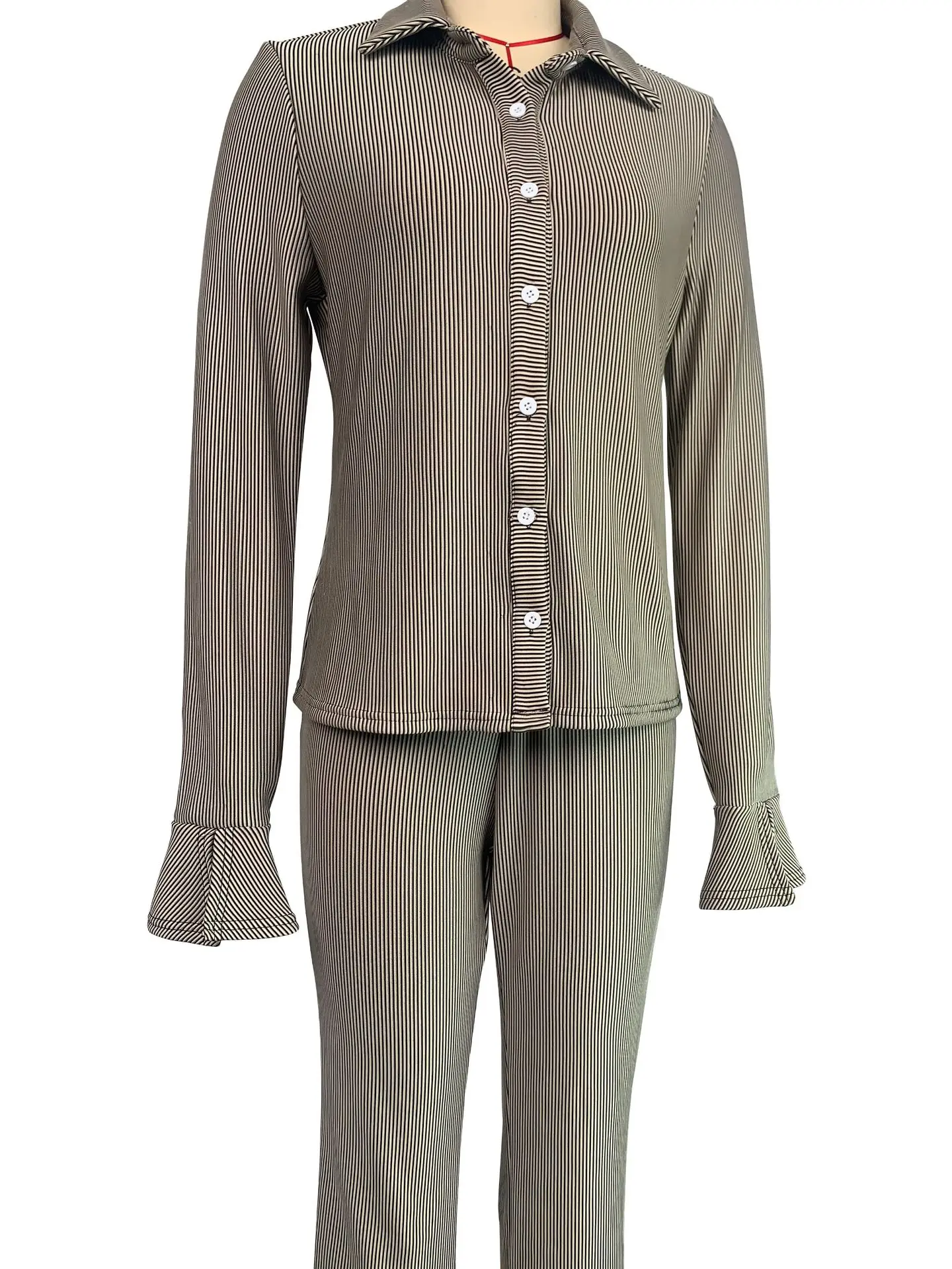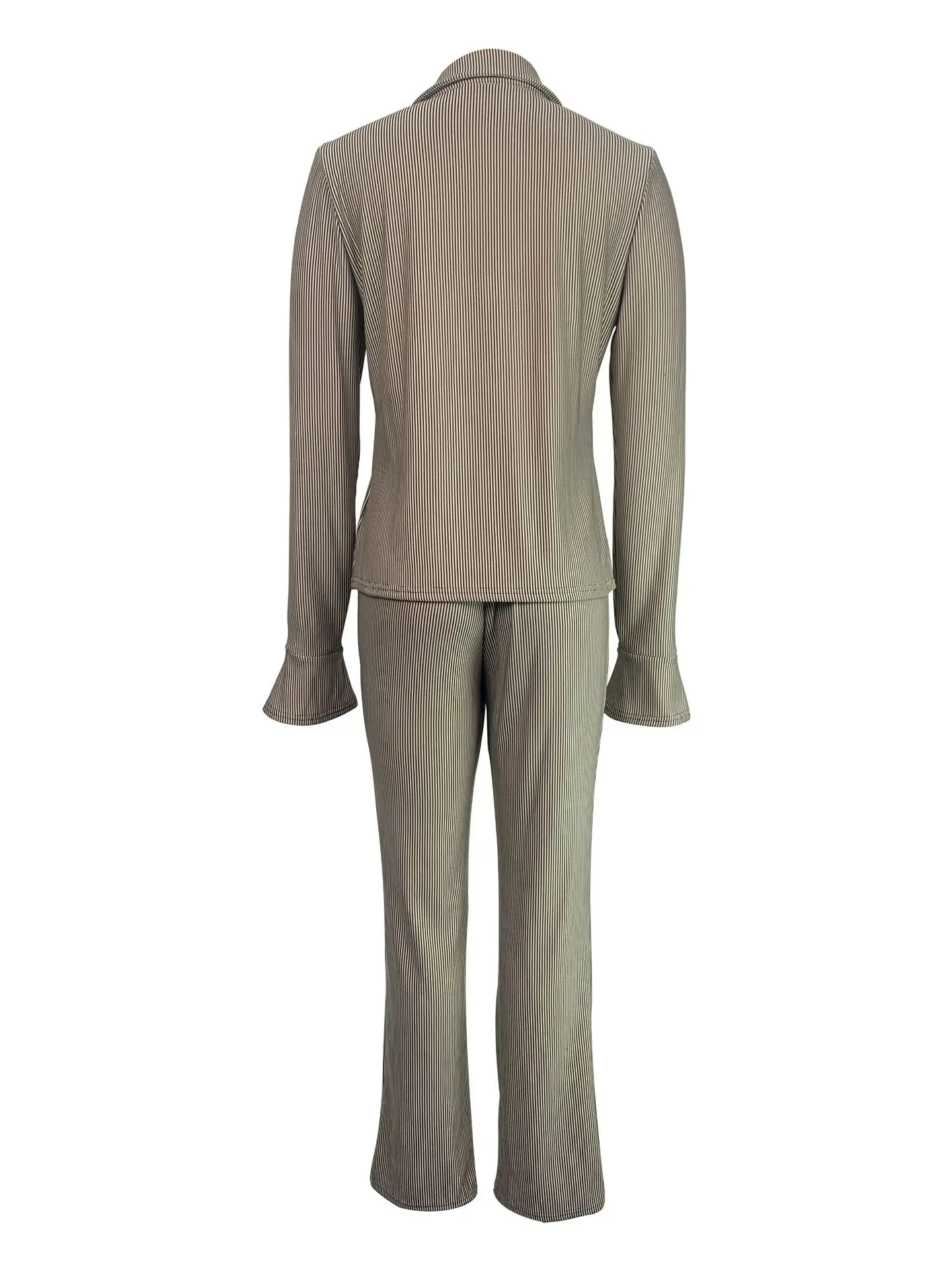 PDEP 2023 fashion women autumn and winter new elastic pit lapel flared sleeve shirt and pant sets for women two pieces