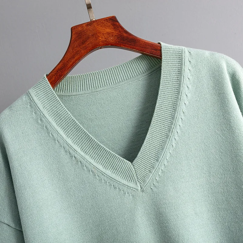 PDEP 2023 fashion women autumn and winter new V-neck loose casual pullover knitted sweater and wide leg pants two piece set