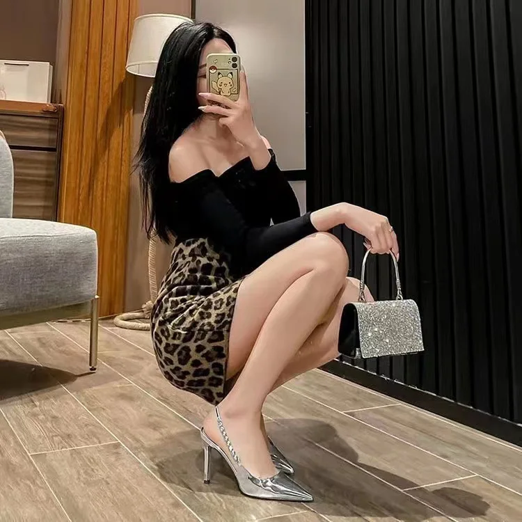 PDEP 2023 female summer new rhinestone point toe silver sexy women's high heel shoes female stiletto thin heels for ladies