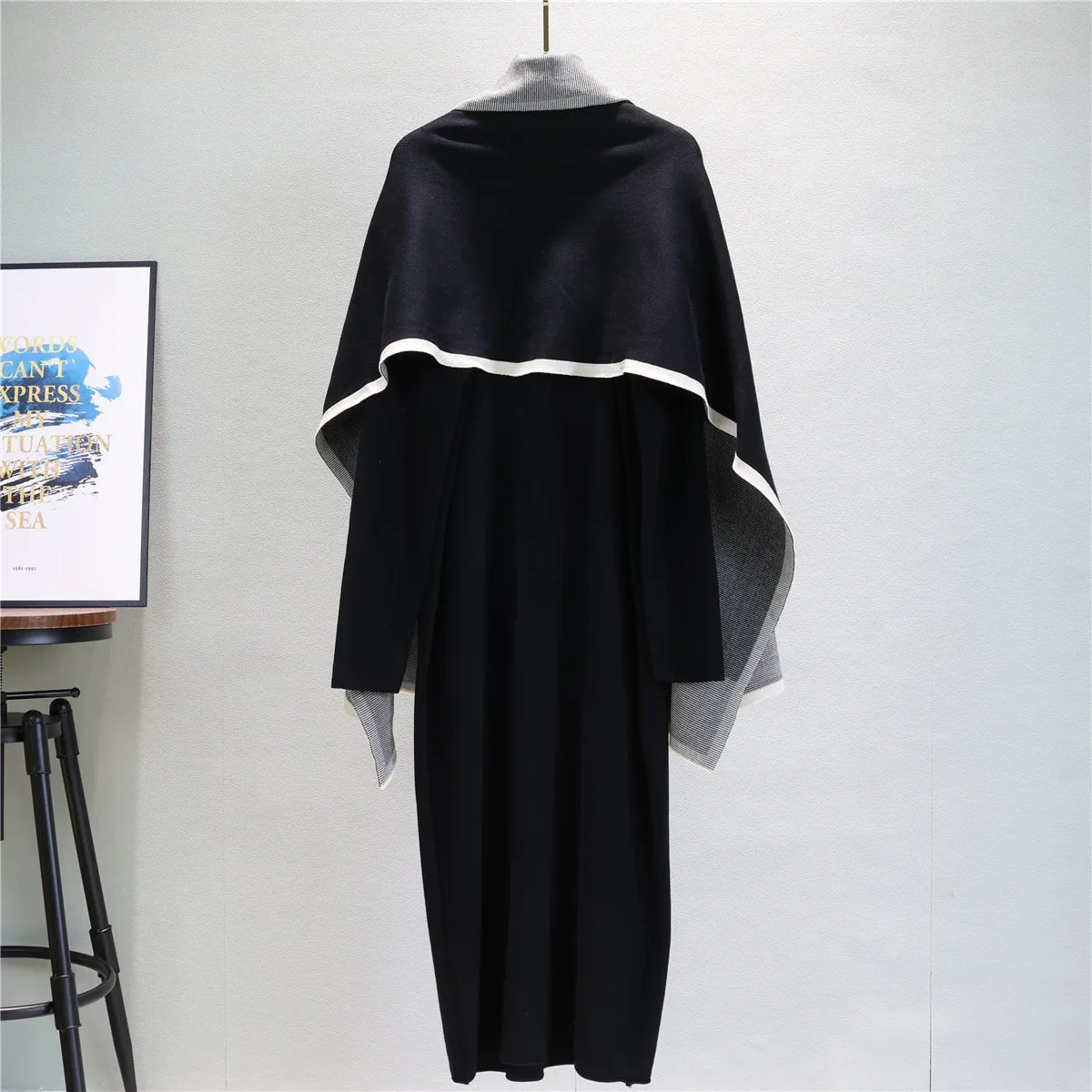 PDEP 2023 New fall/winter shawl jacket knitted dress skirt and top two-piece sweater set women