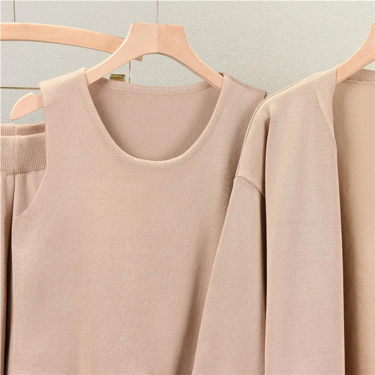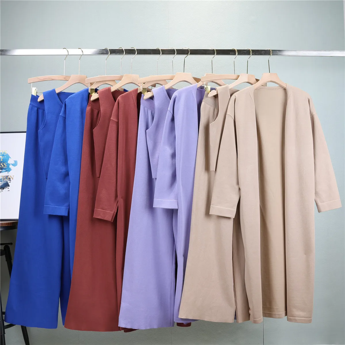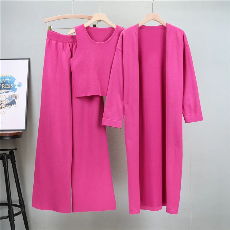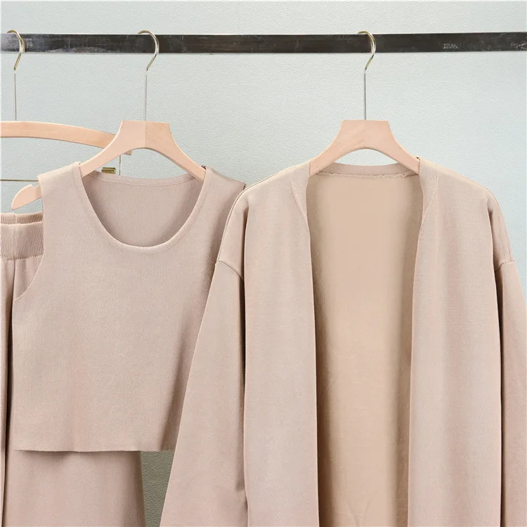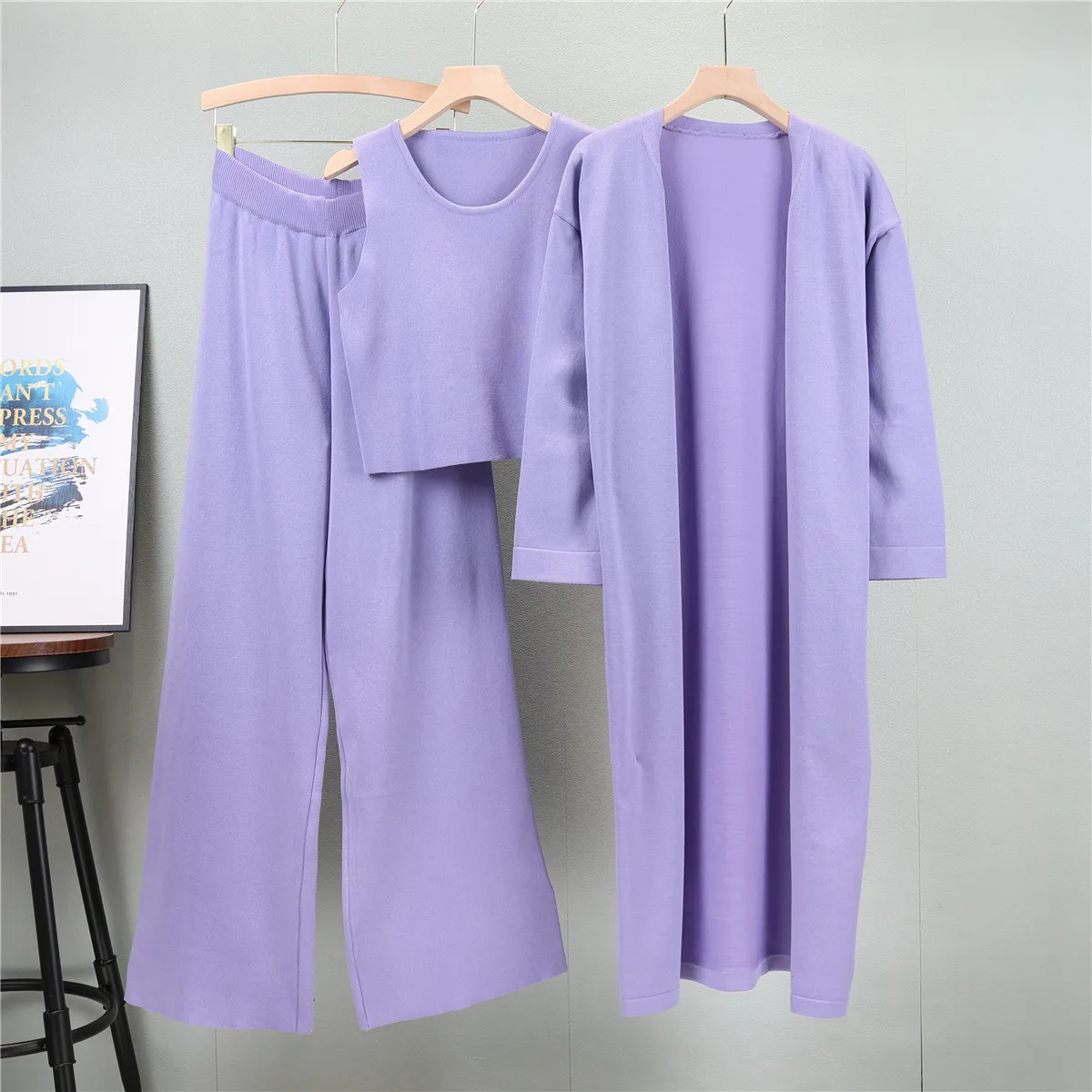 PDEP 2023 new loungewear knitting suit women's autumn long shawl cardigan sweater vest and wide-leg pants s piece sweater set wo