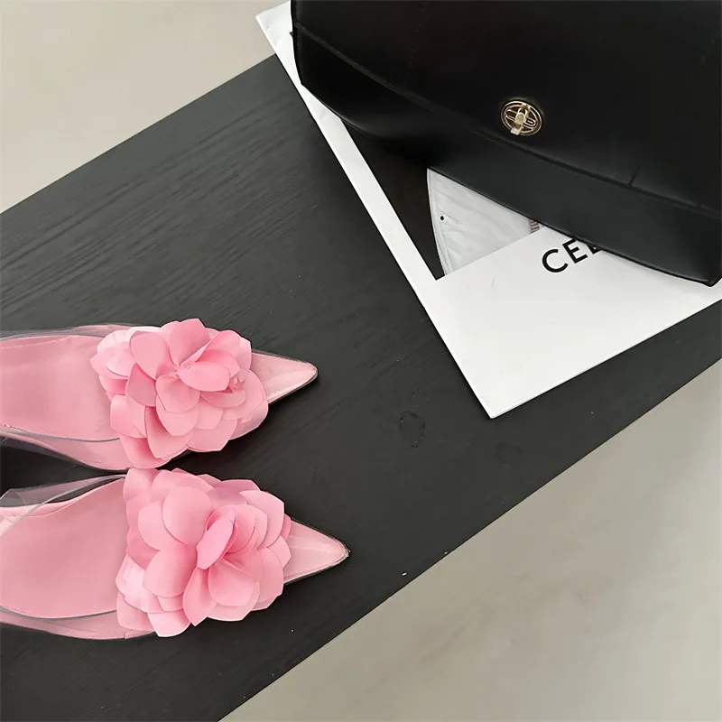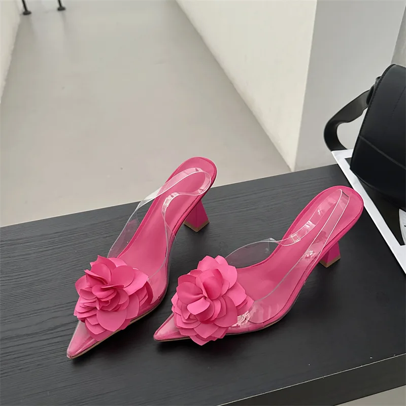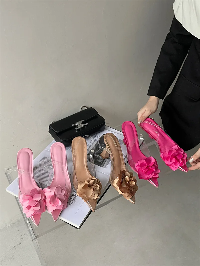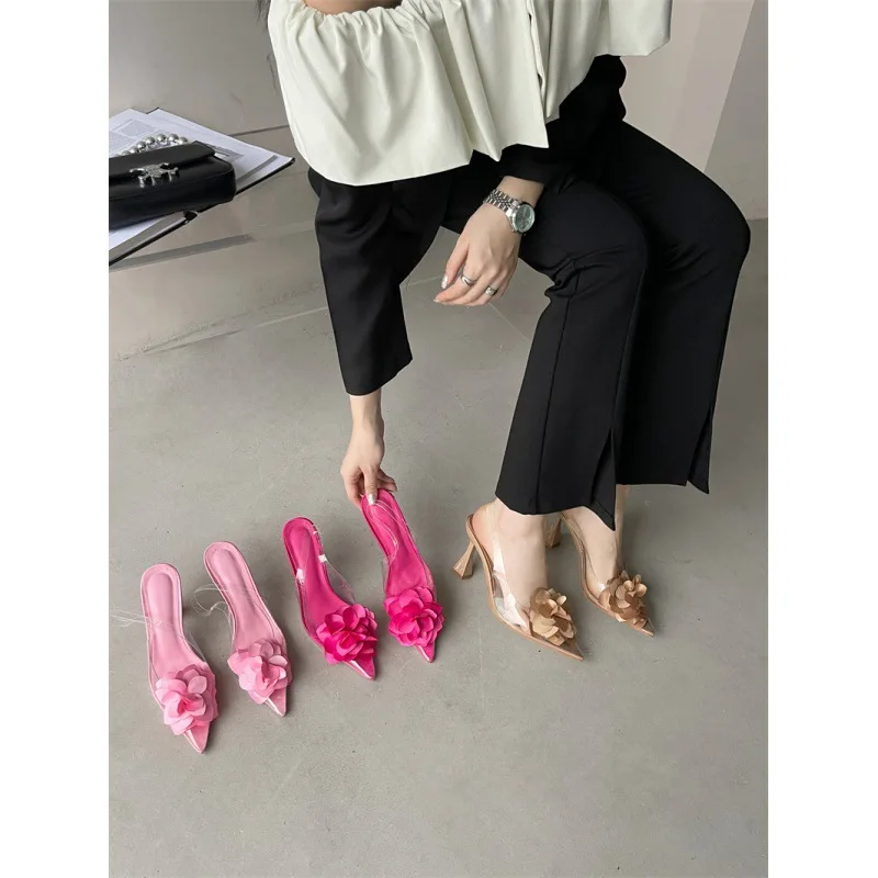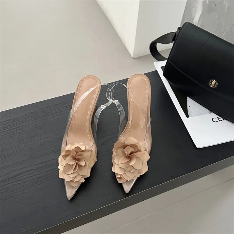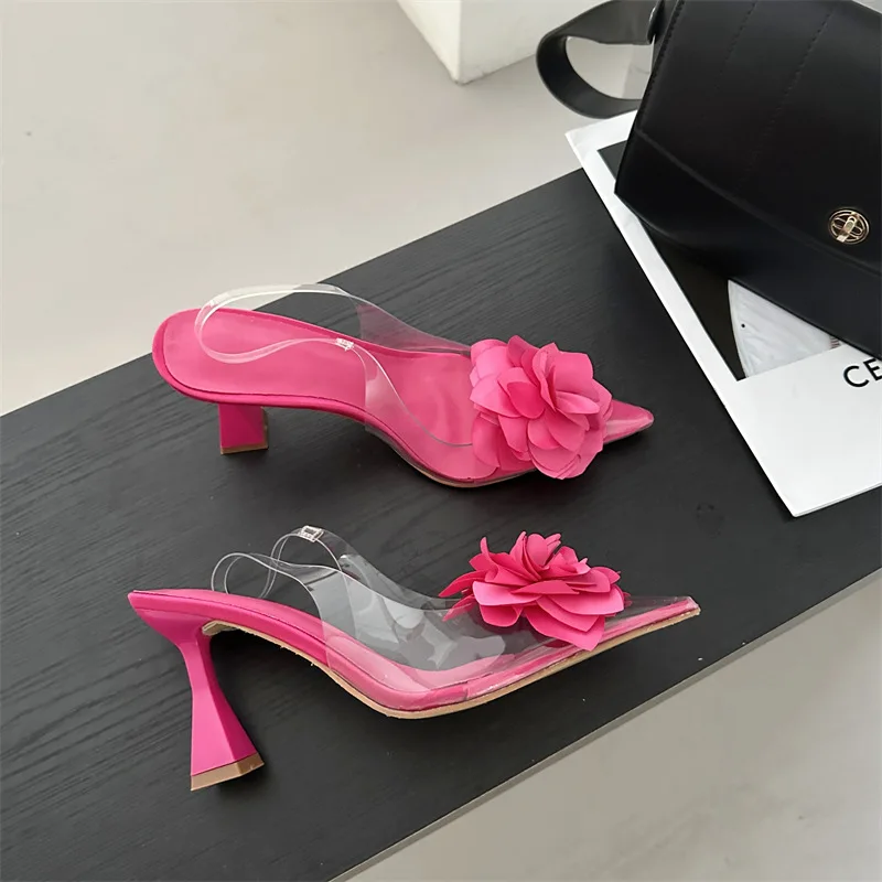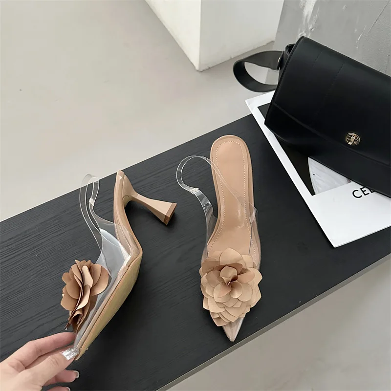 PDEP 2023 new sling back women's shoes flower elegant point toe ladies high heels shoes clear transparent heeled sandals