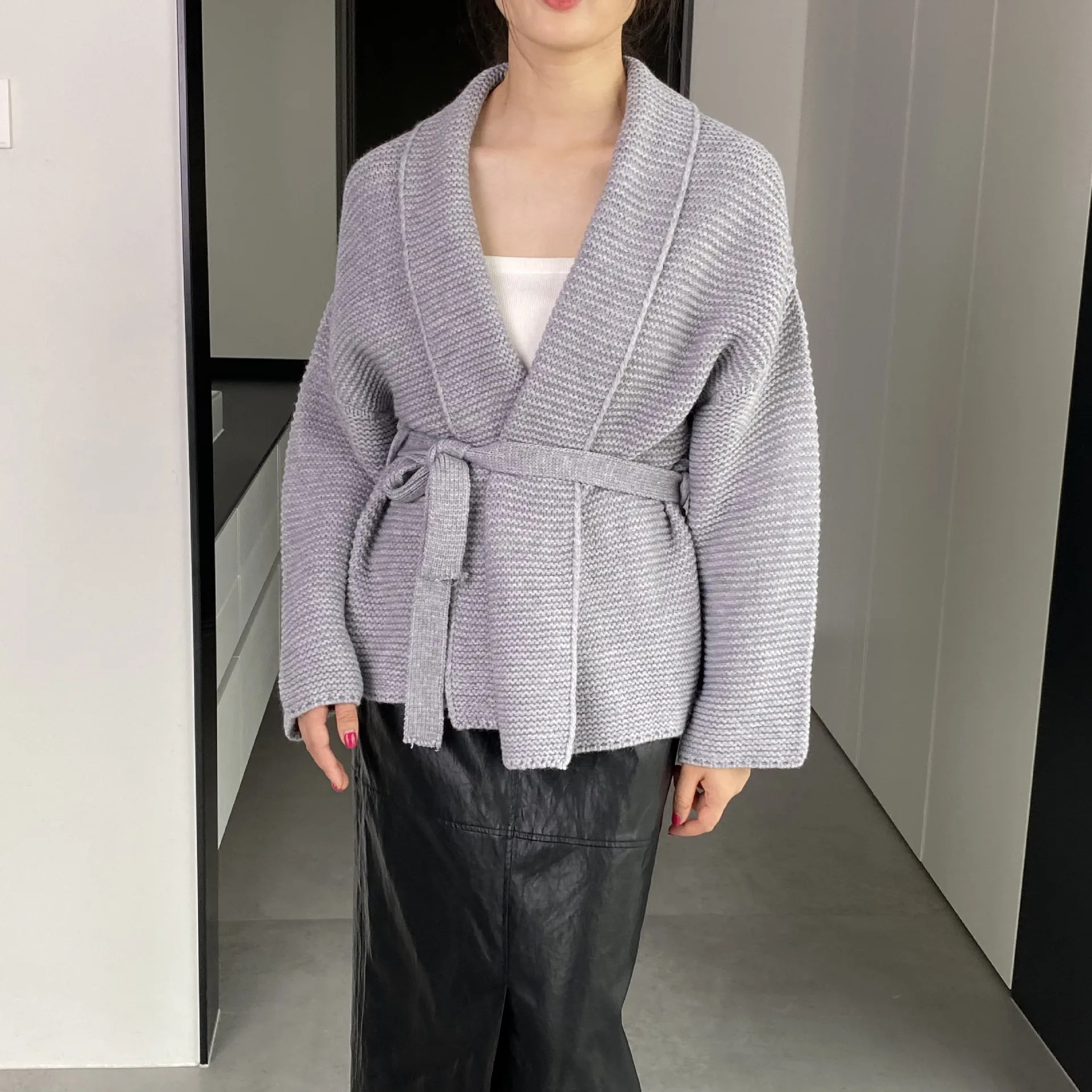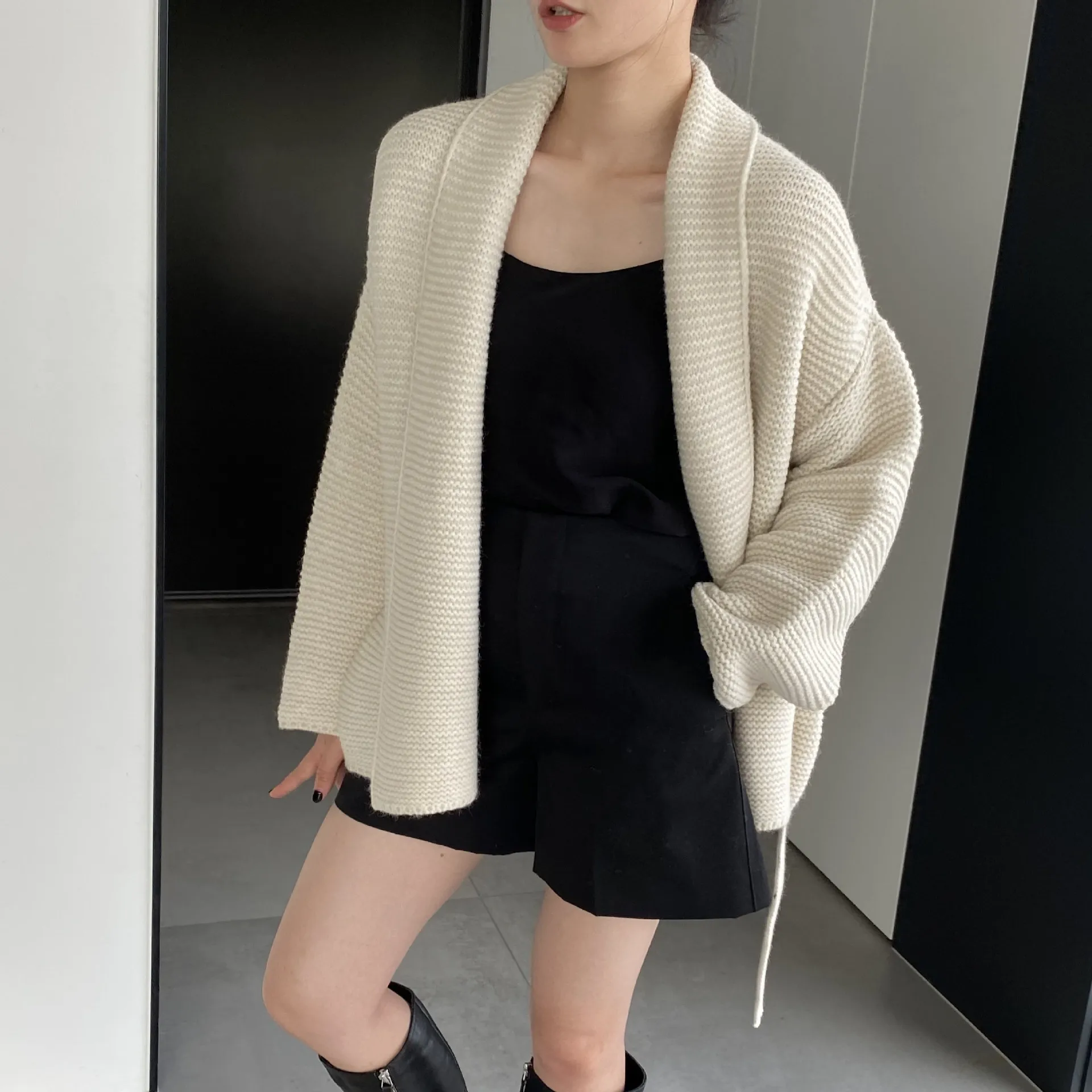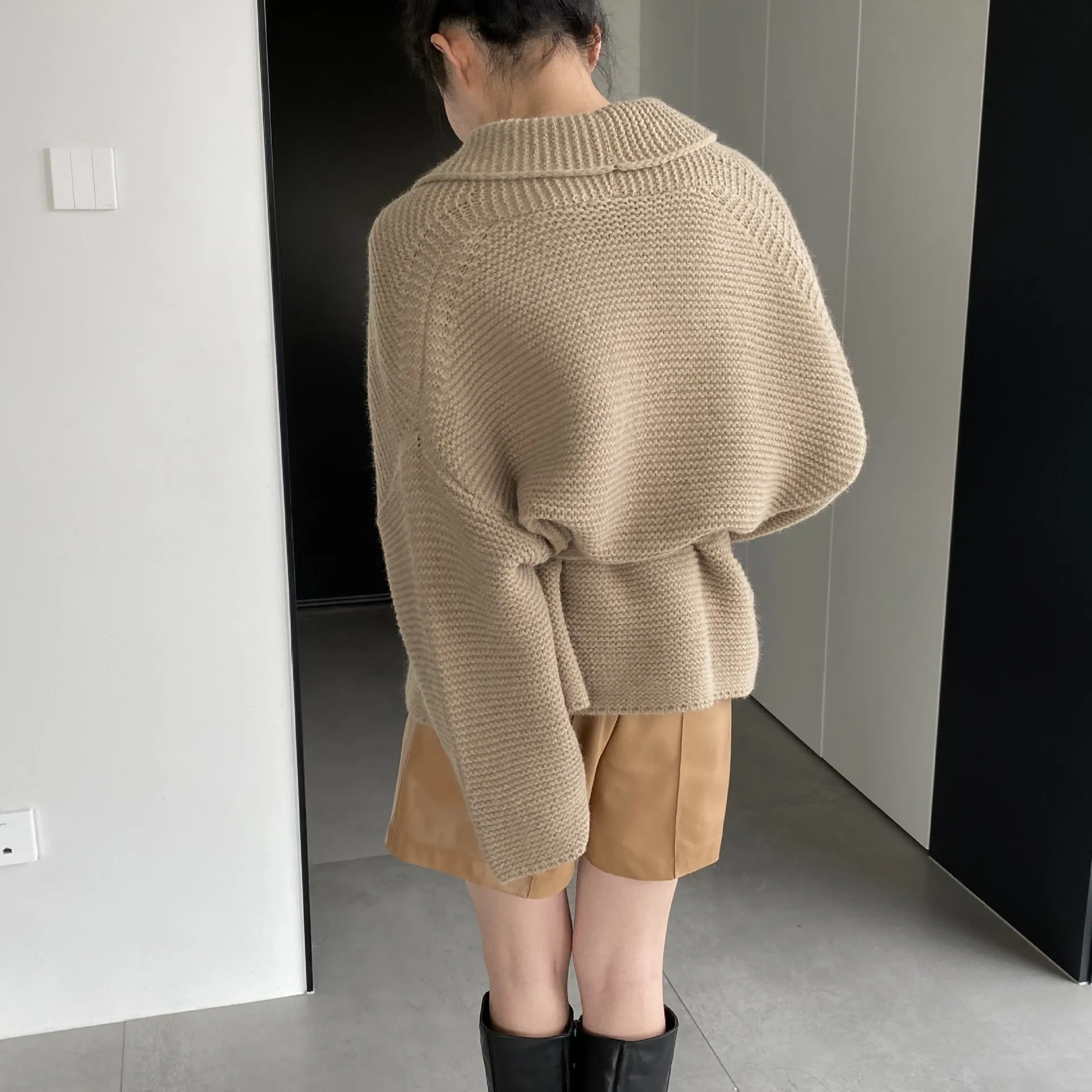 PDEP 2023 new winter and autumn high quality Wool Woven Cardigan sweater Coat Solid Color Loose knit Sweater Women