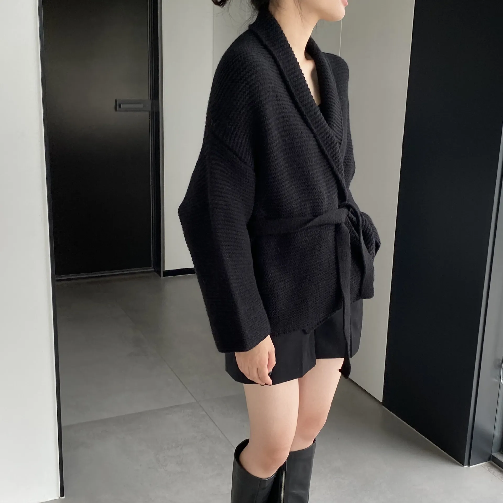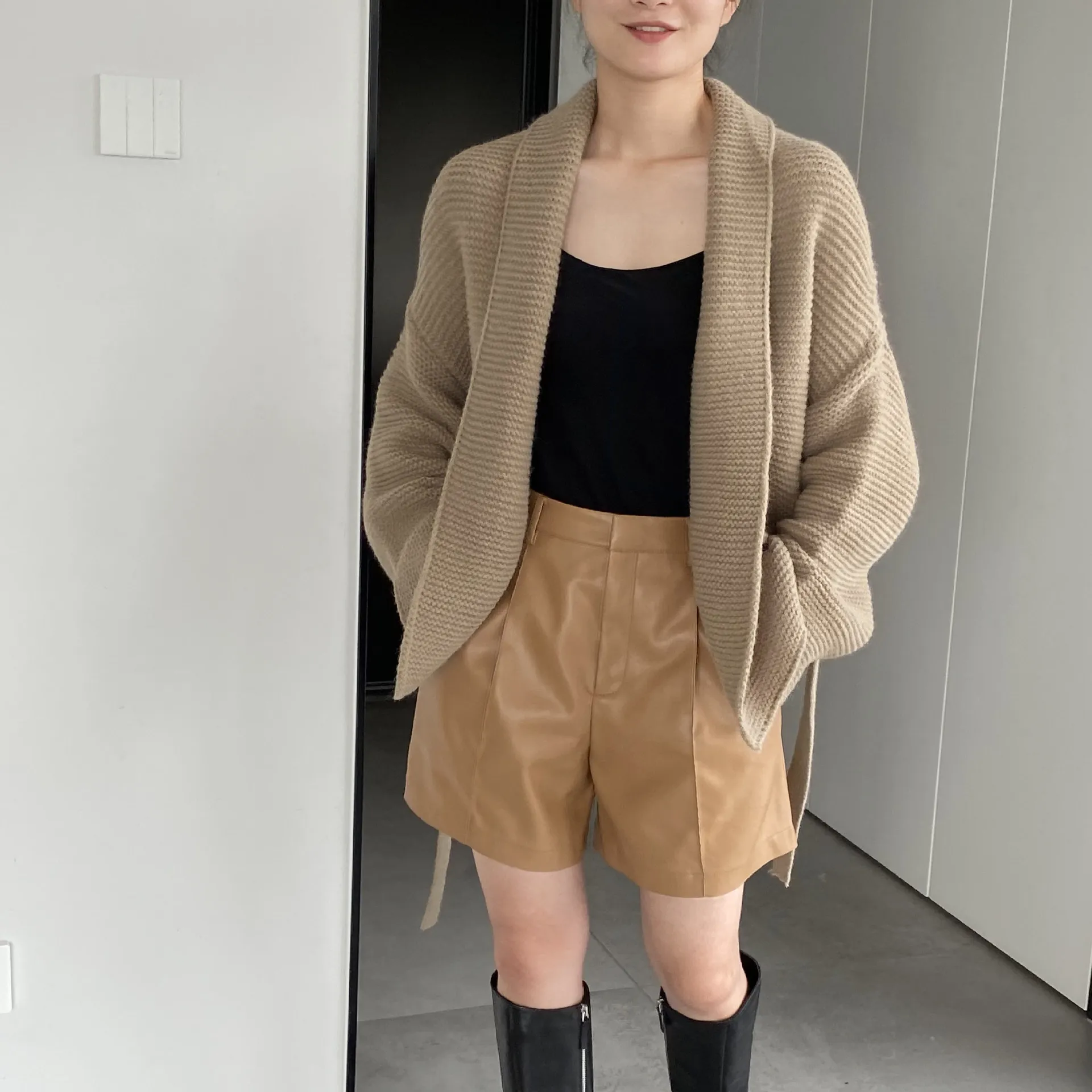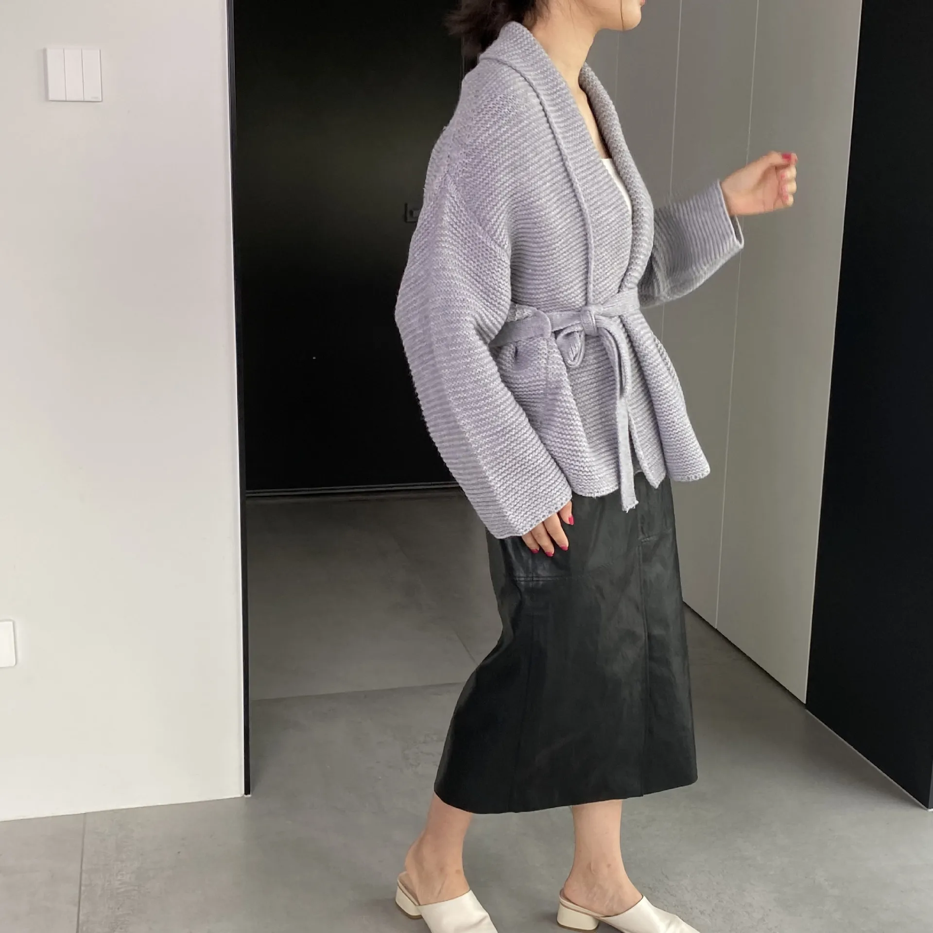 PDEP 2023 new winter and autumn high quality Wool Woven Cardigan sweater Coat Solid Color Loose knit Sweater Women
