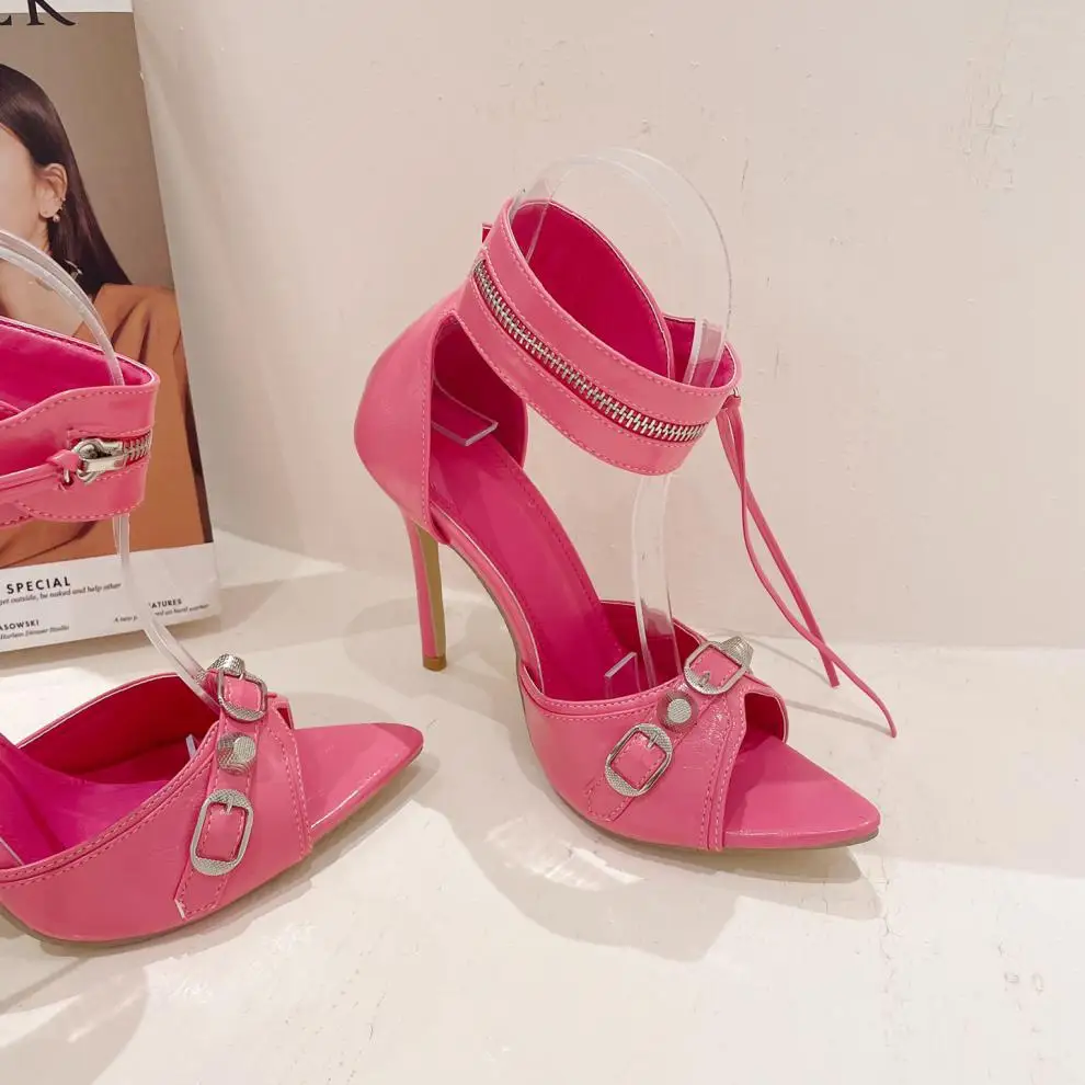 PDEP 2023 Rivet Slim stiletto Heeled sandals Point toe ladies High Heels Large Size ankle strap lace up Women high heel shoes