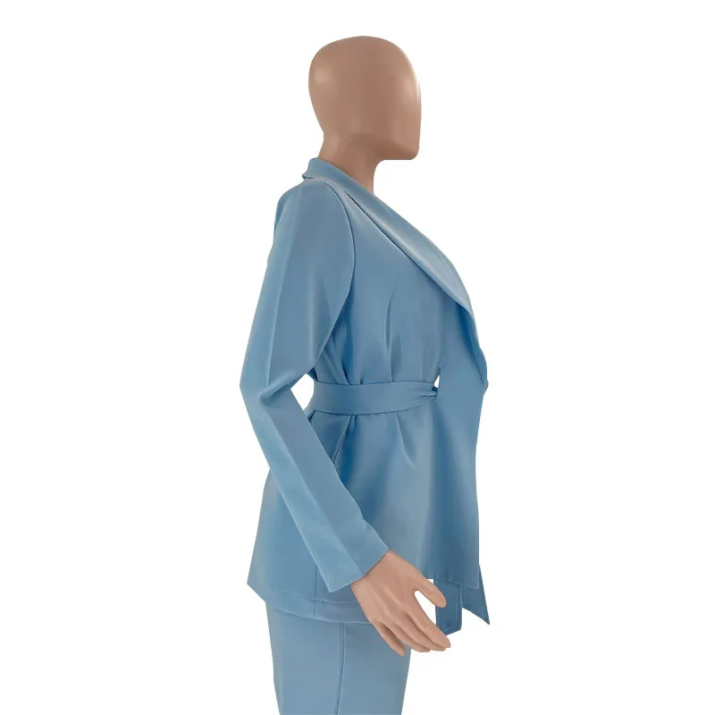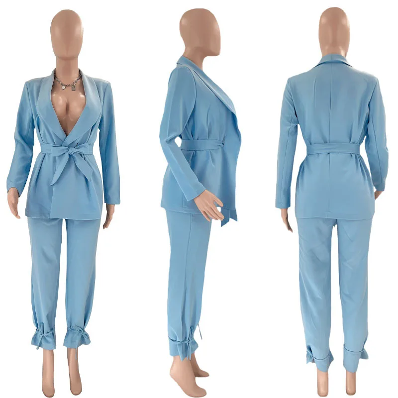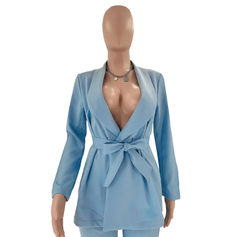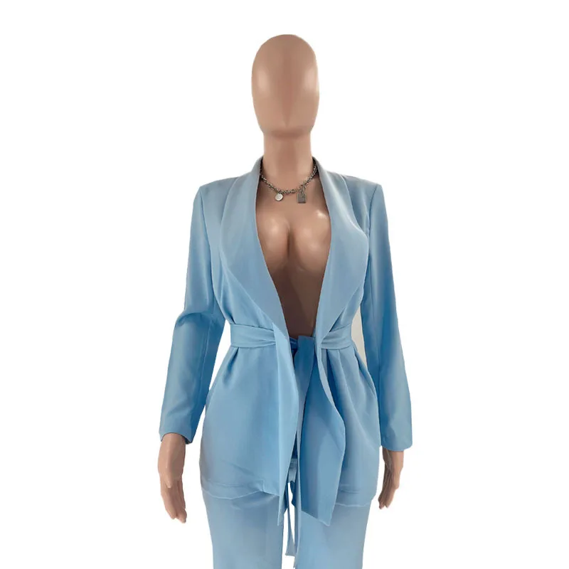 PDEP 2023 Spring and Autumn New ladies Solid Color Strap Long Sleeve Fashion women blazer femme and Pant Suit two piece set
