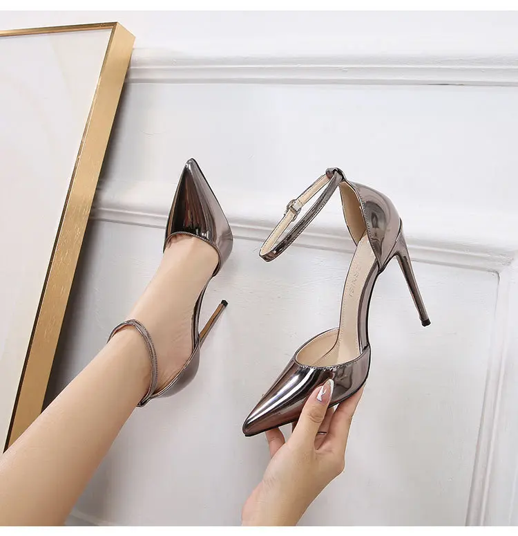PDEP big size 46 women high heels shoes with a straight ankle buckle point toe ladies stiletto thin heels for women